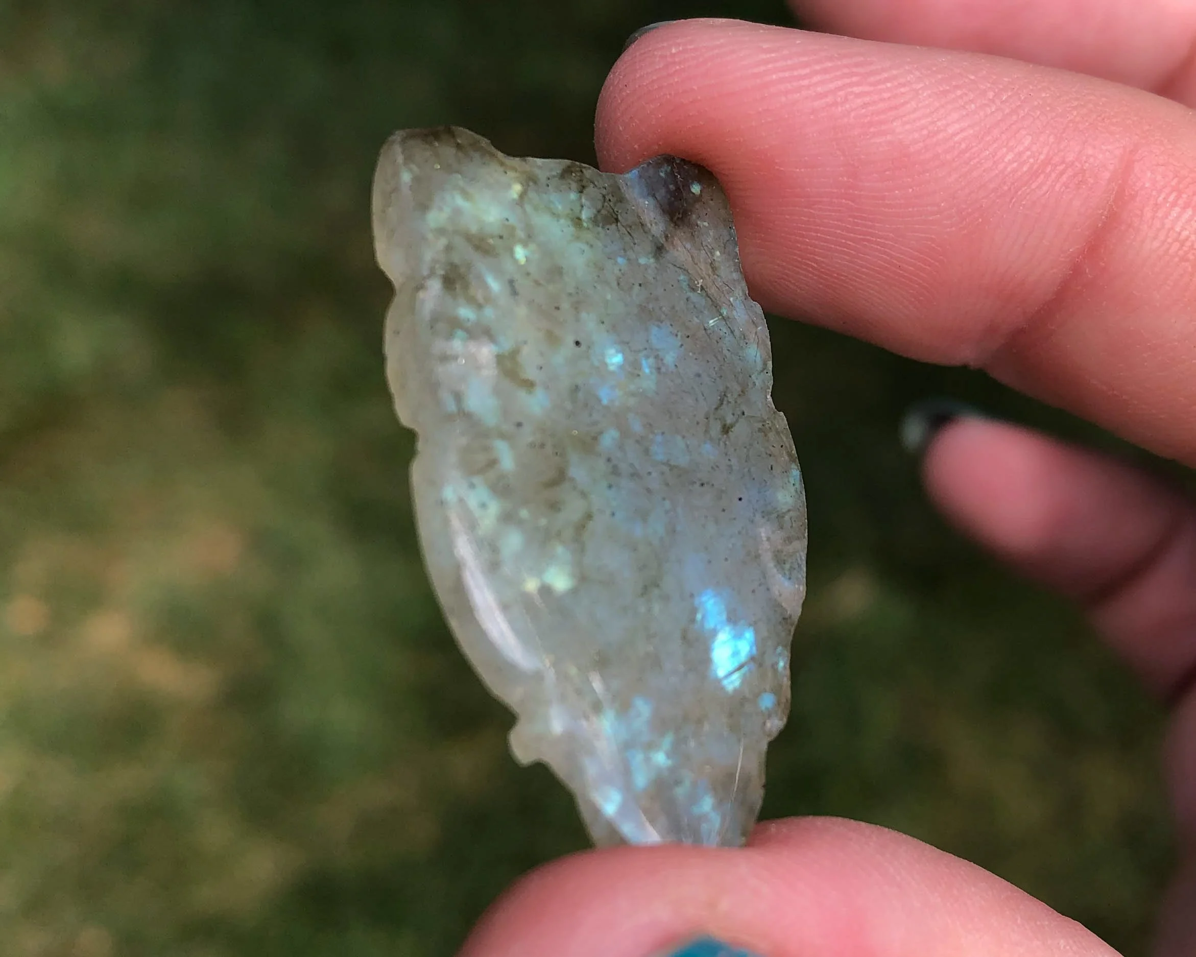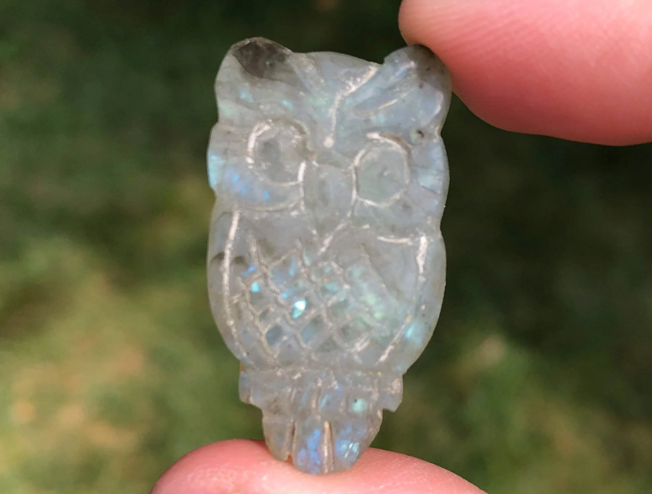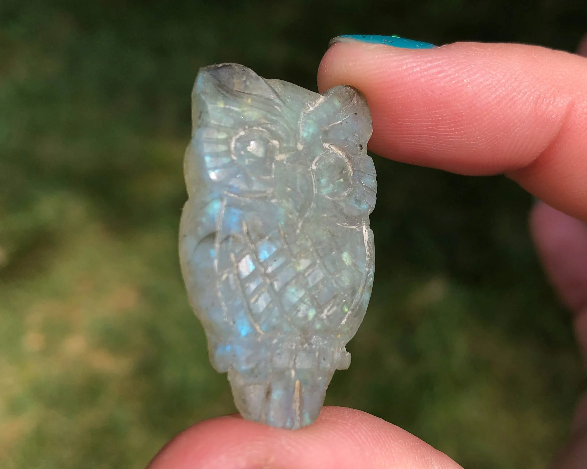 Image 1 of 10 Image 2 of 10 Image 3 of 10 Image 4 of 10 Image 5 of 10 Image 6 of 10 Image 7 of 10 Image 8 of 10 Image 9 of 10 Image 10 of 10 1.3" Labradorite Owl Cabochon Owl Carving Flashy Gemstone Crystal Cab #4 $28.00 You will receive the exact Owl pictured. :) This is an owl carved out of flashy Labradorite. It is a cabochon, with a flat back. It has nice details and color. He is quite cute too! <3 Measures 1.3 x .7 x .2 inches Thanks for looking! :) Kouva Dream Catchers <3 Add To Cart Added! You will receive the exact Owl pictured. :) This is an owl carved out of flashy Labradorite. It is a cabochon, with a flat back. It has nice details and color. He is quite cute too! <3 Measures 1.3 x .7 x .2 inches Thanks for looking! :) Kouva Dream Catchers <3 Reviews Reviewer Name Review Date Star Rating Description Posted on Etsy Product Show More