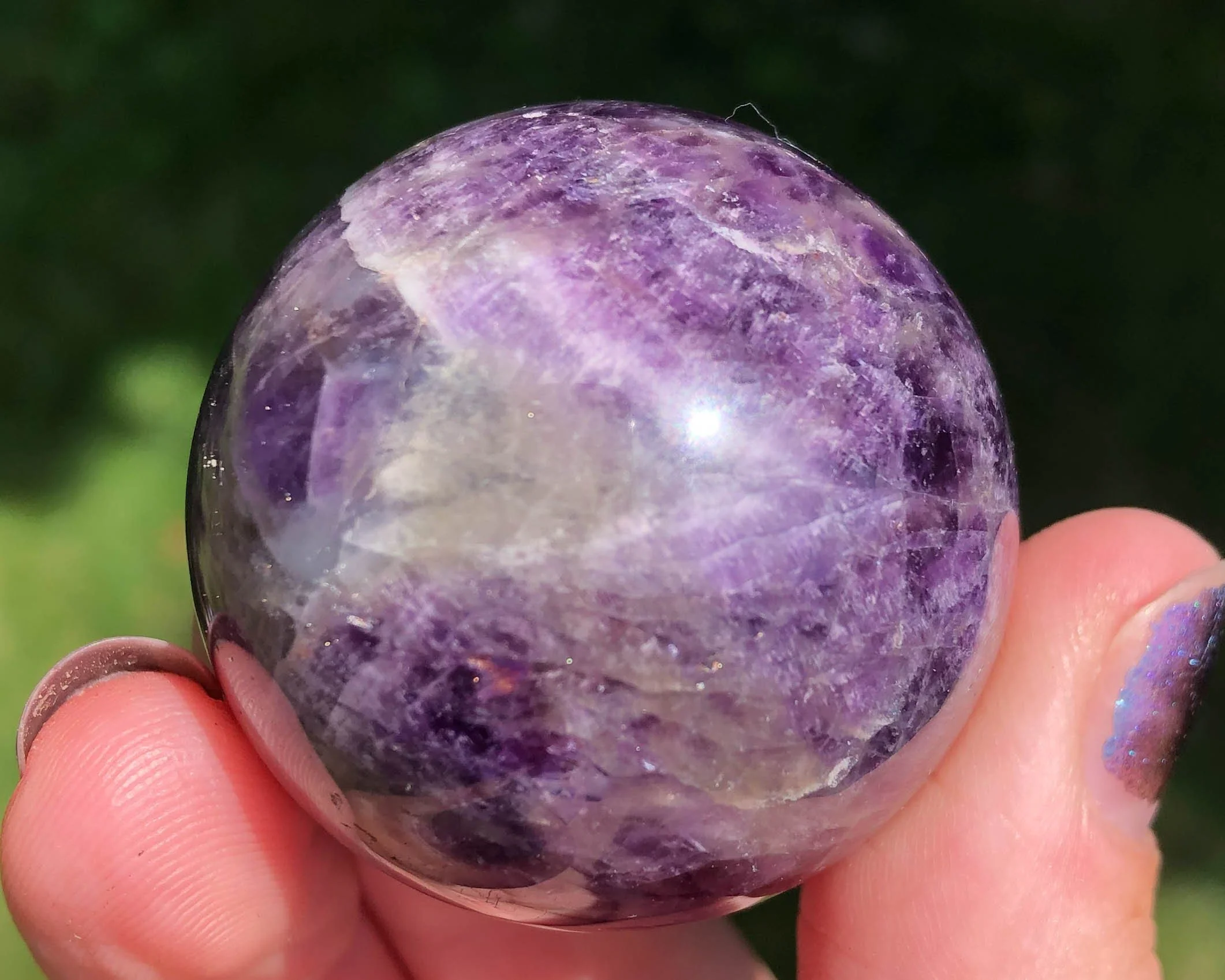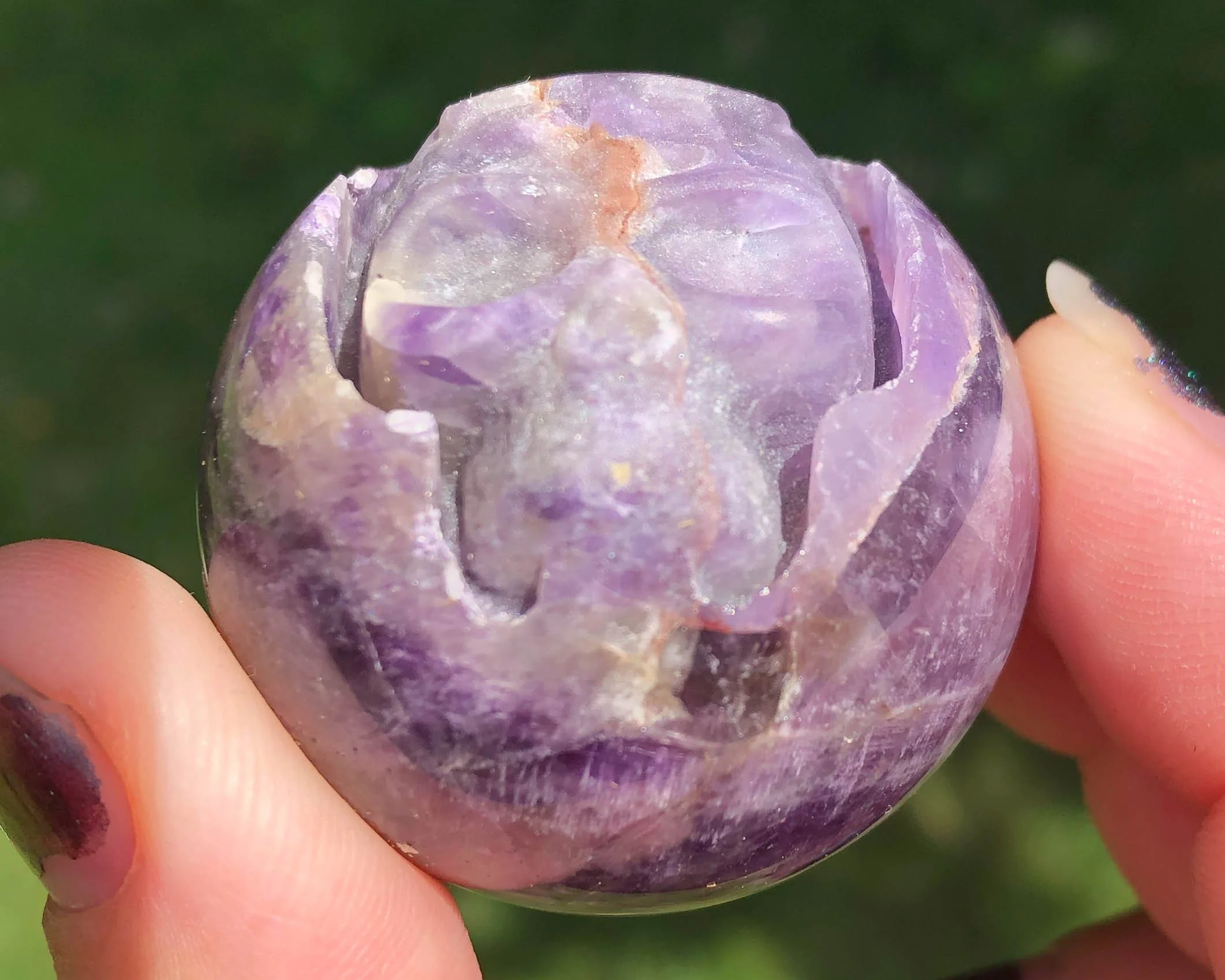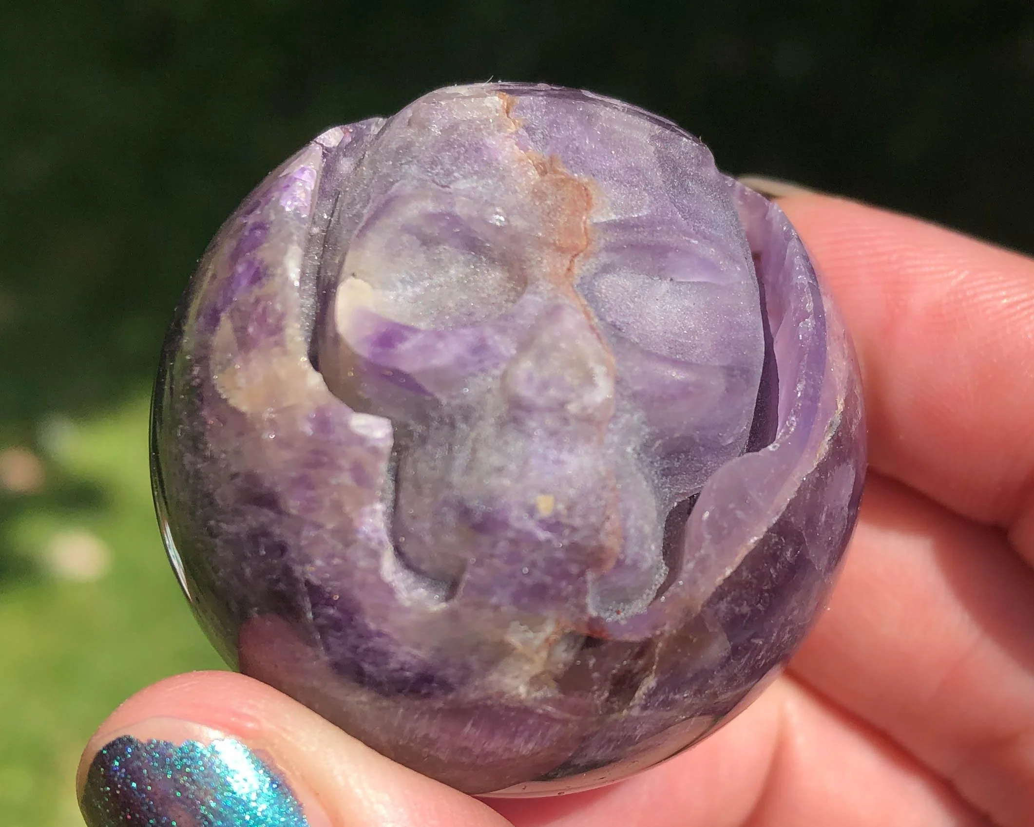 1.5" Skull Carving Chevron Amethyst Sphere with Dark Purple Crystal Ball #2