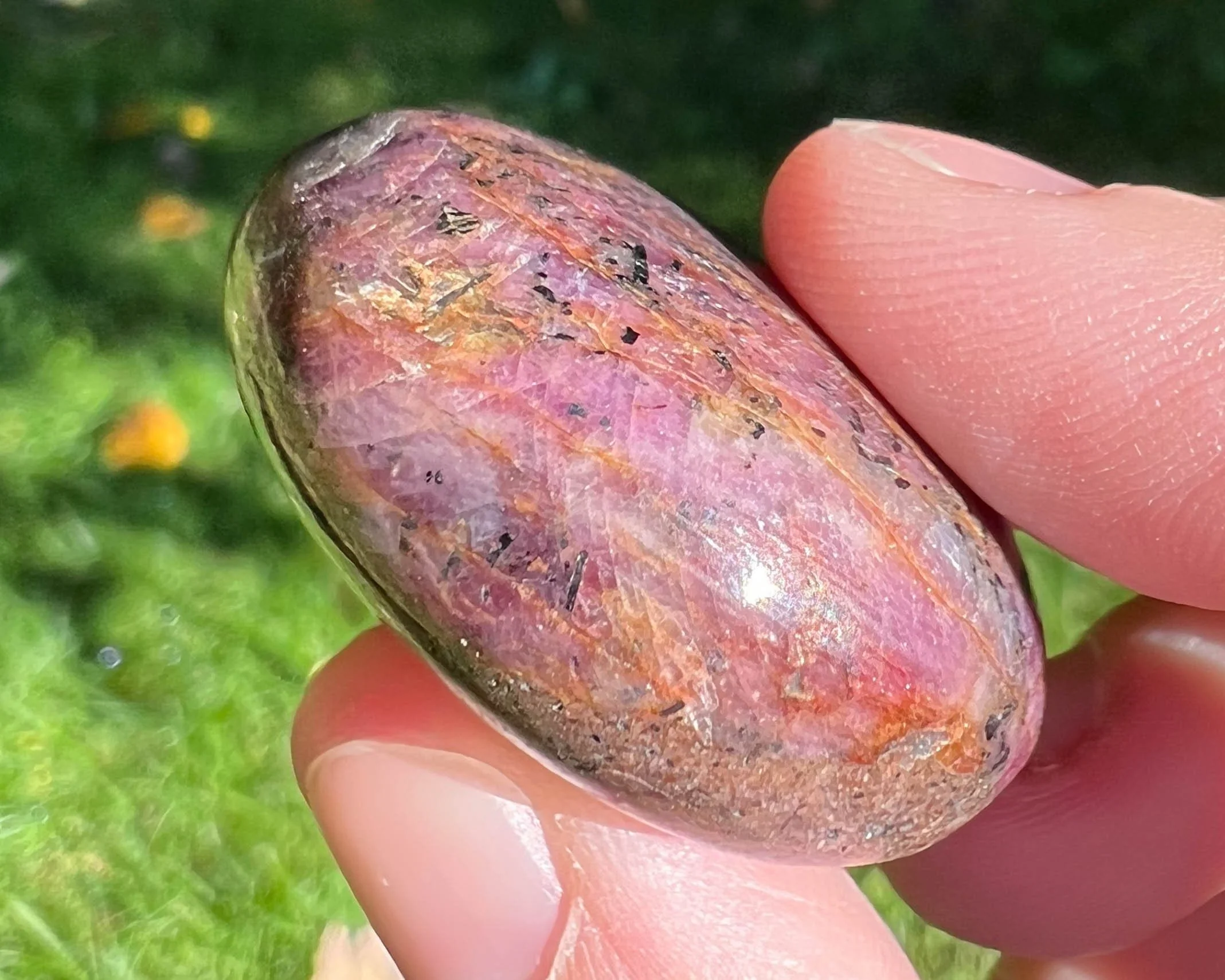 1.5" Star Ruby Palm Stone #2 Small Polished Gemstone, Pink Red Corundum, Hexagonal, July Birthstone Gift for Cancer, for Leo, Witchy Decor