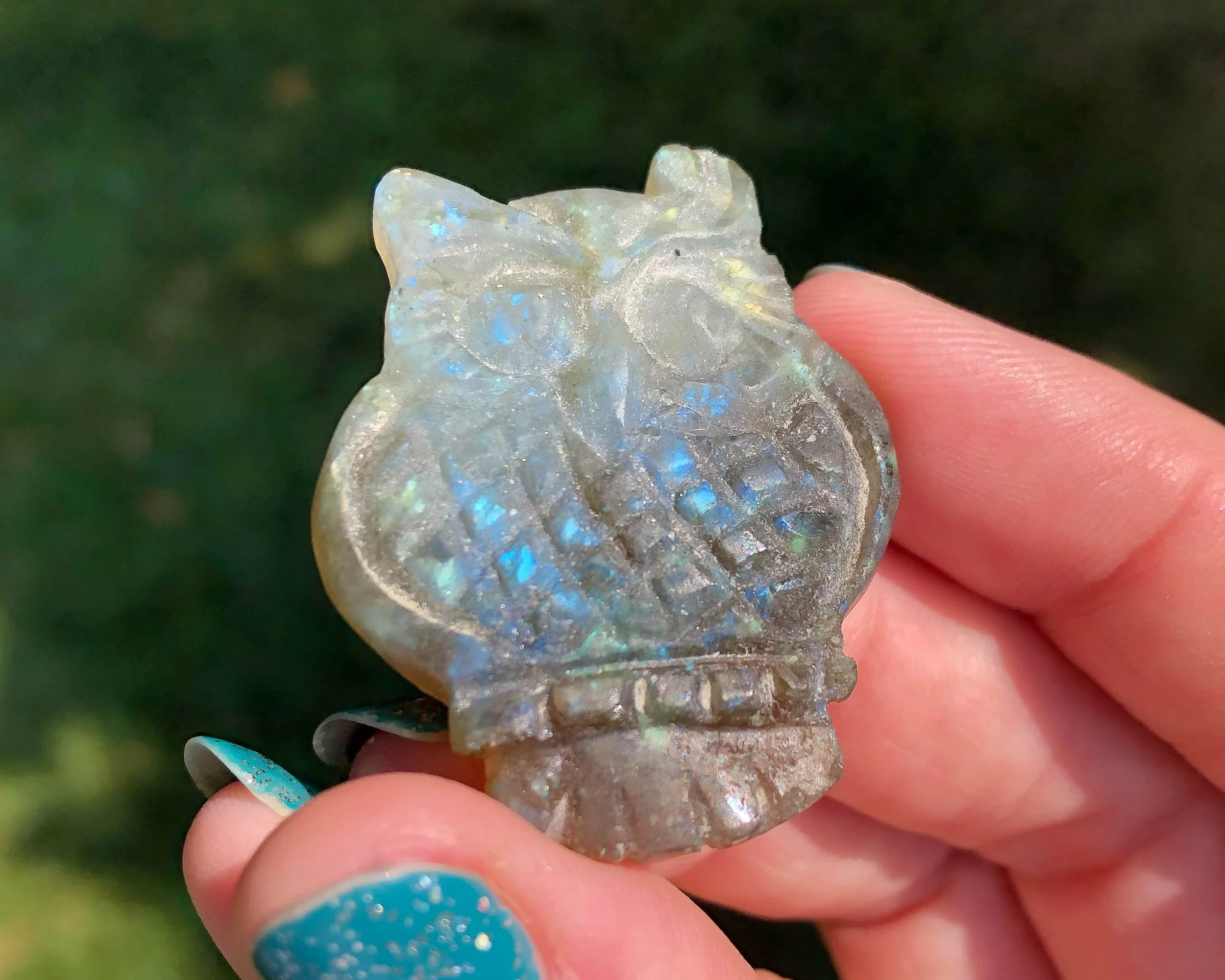 1.6" Labradorite Owl Cabochon Owl Carving Flashy Gemstone Crystal Cab #1