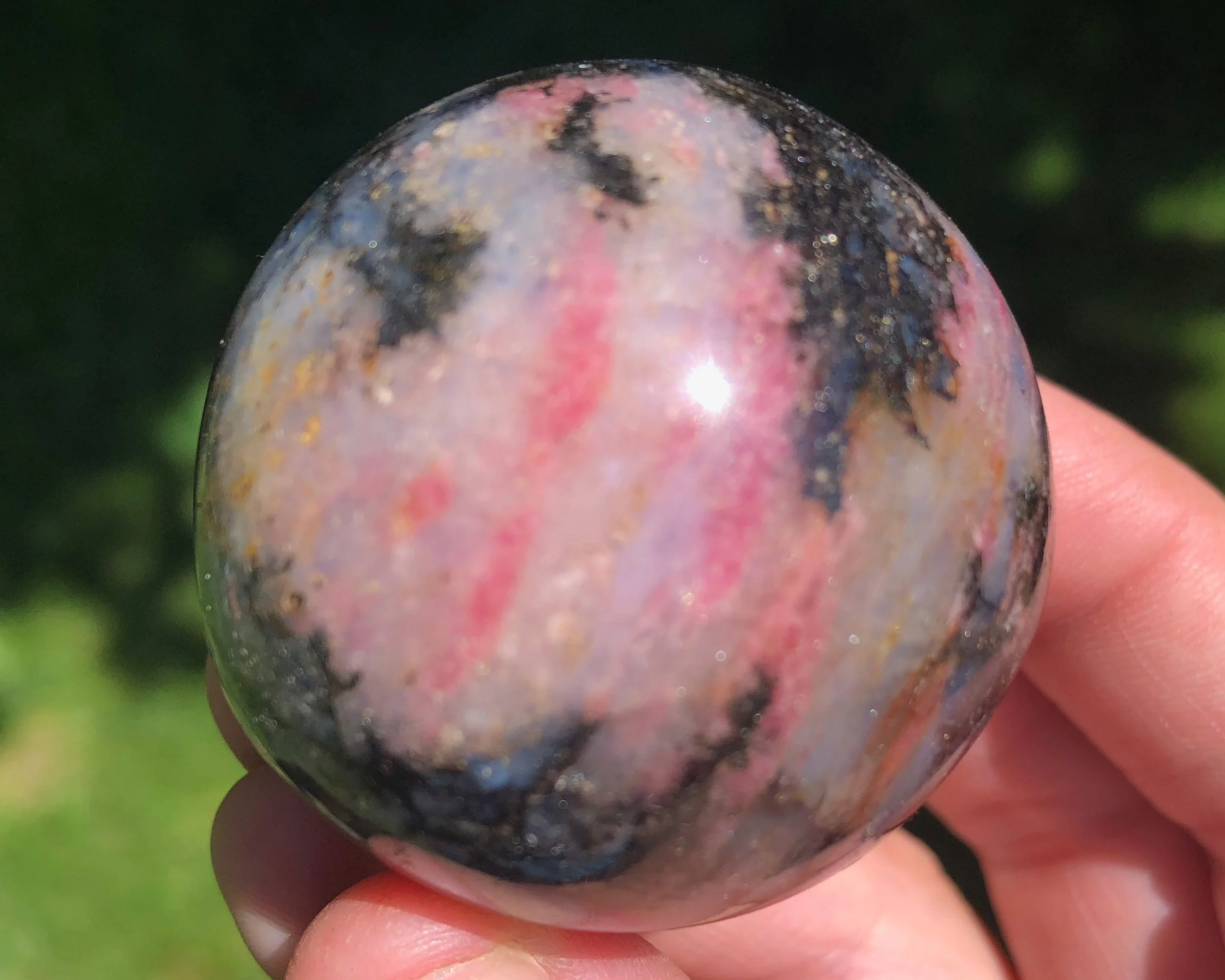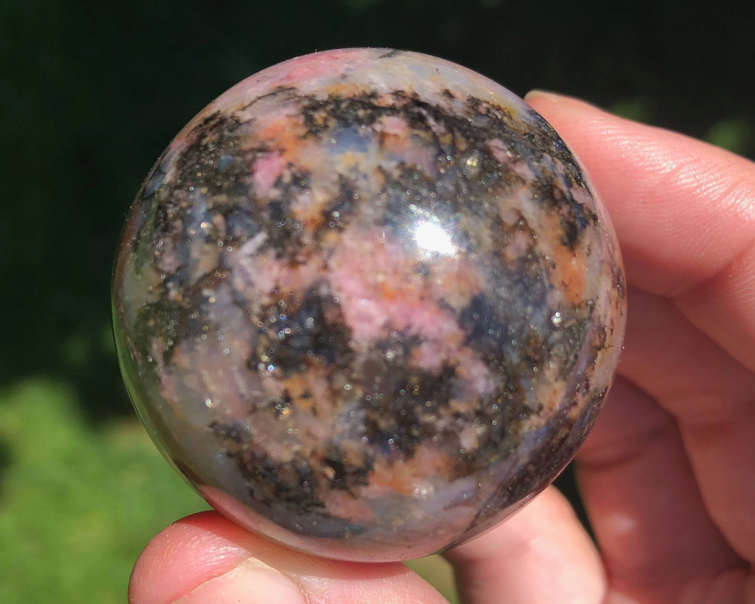 1.7" Gemmy Cherry Blossom Rhodonite Sphere with Blue Flash Crystal Ball #3
