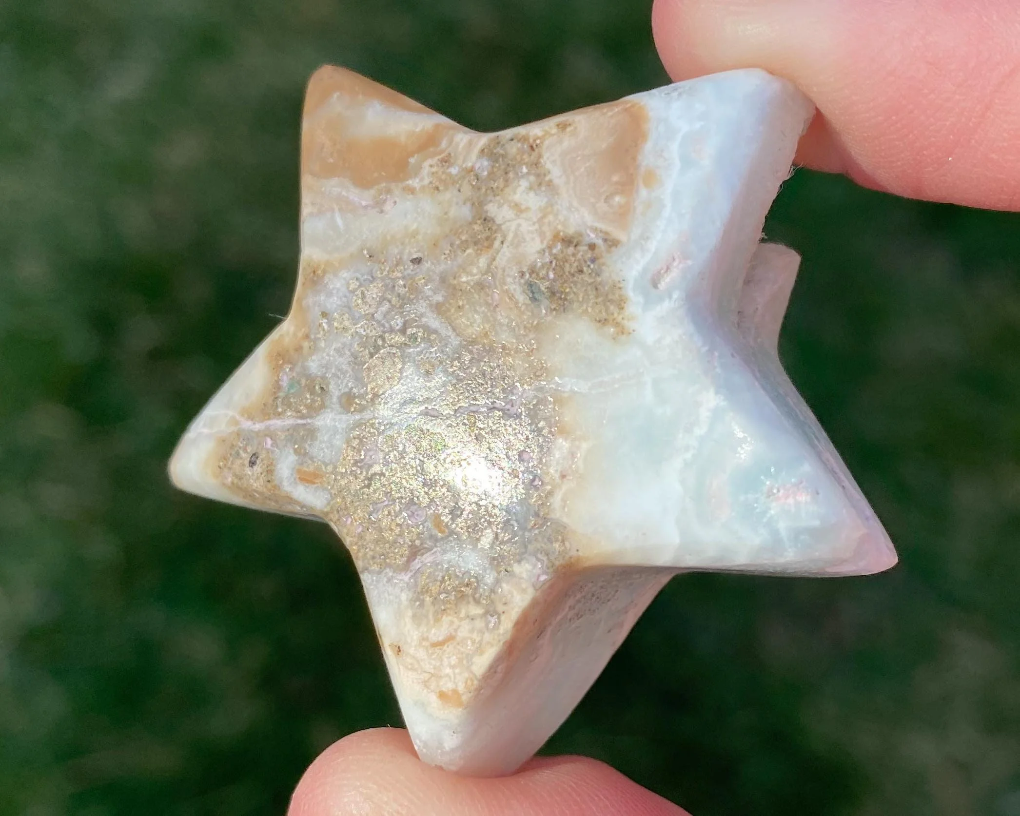 1.8" Caribbean Calcite Star #10 Small Aqua Blue Aragonite, Crystal Gemstone Star Carving, Cute Birthday Gift for Friend, Astronomy Astrology