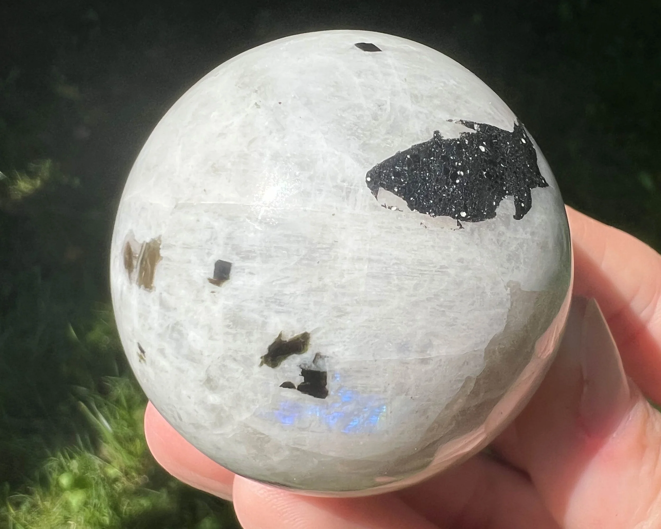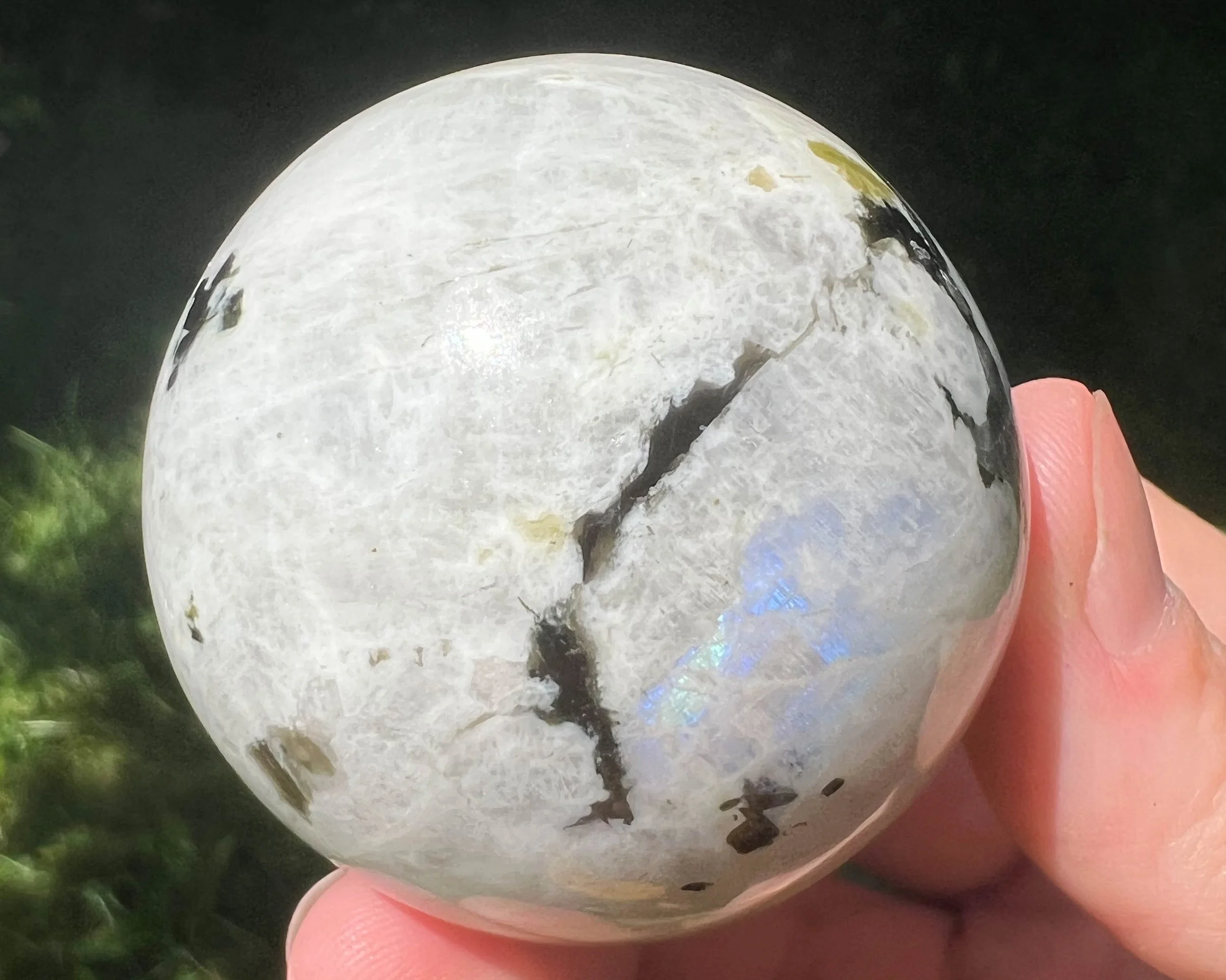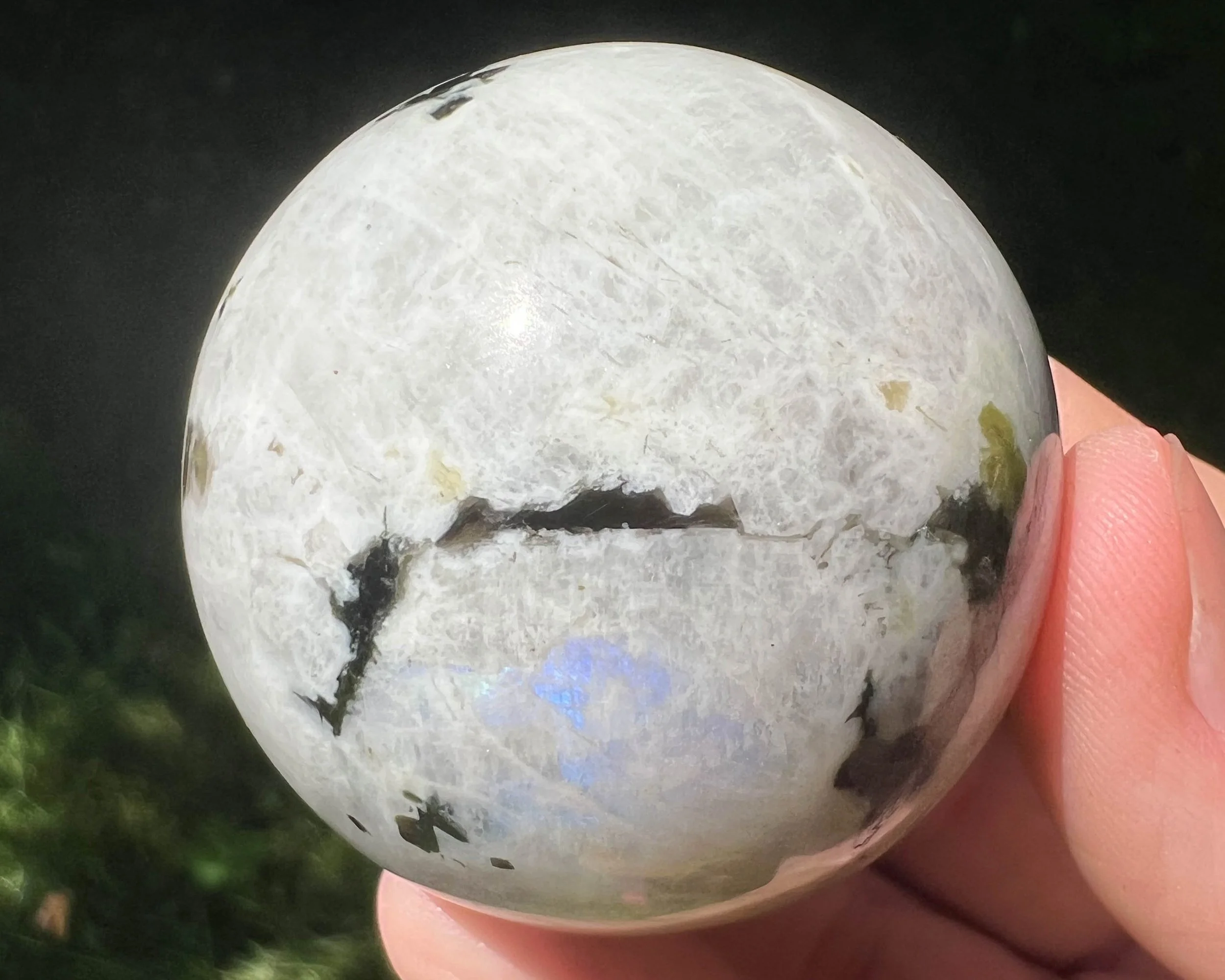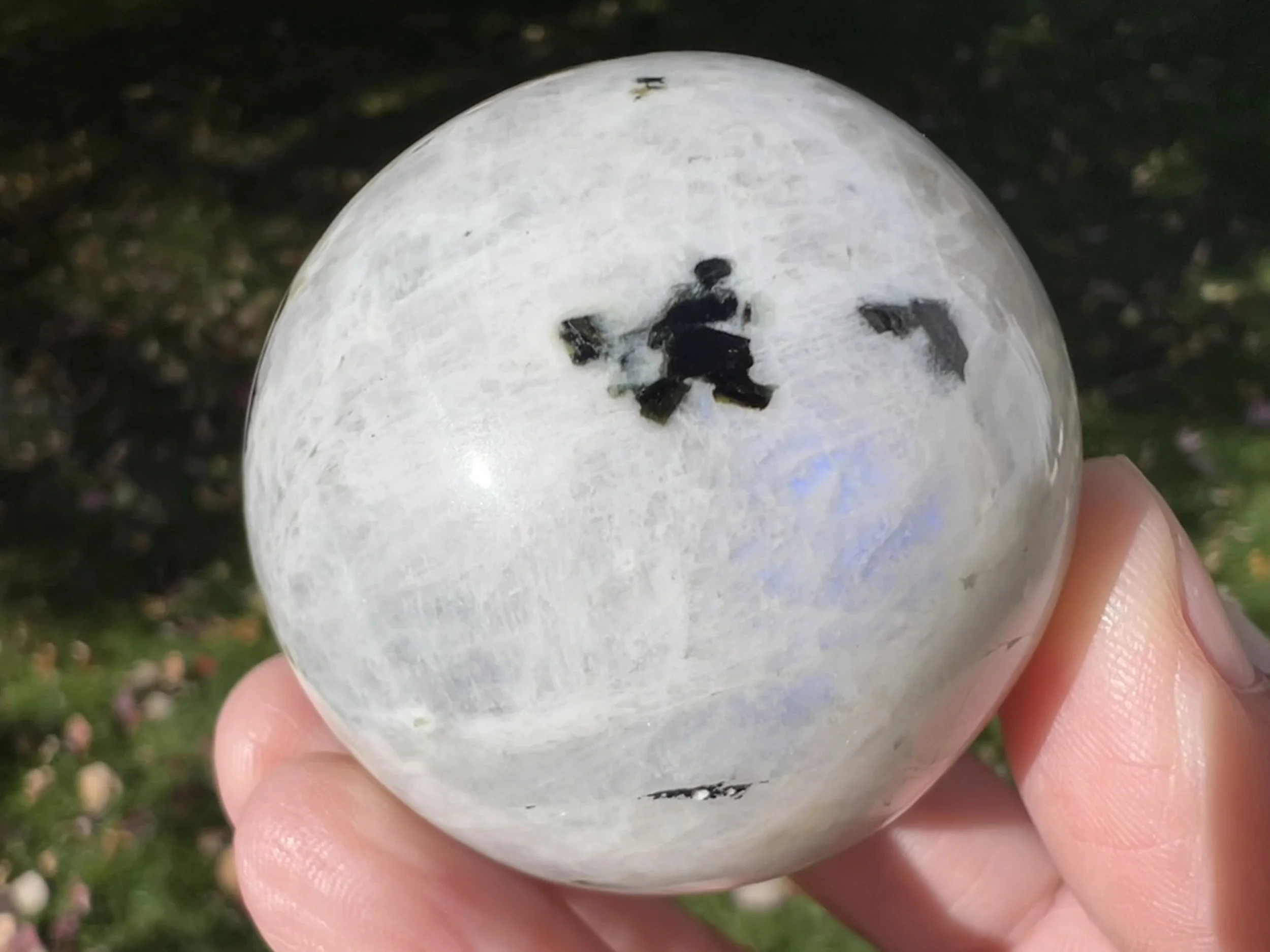 1.8" Rainbow Moonstone Sphere #3 Blue Flash, White and Black Crystal Ball, Witchy Gift, Home Decor, Crystal for Stress, Moon Energy, Gemini