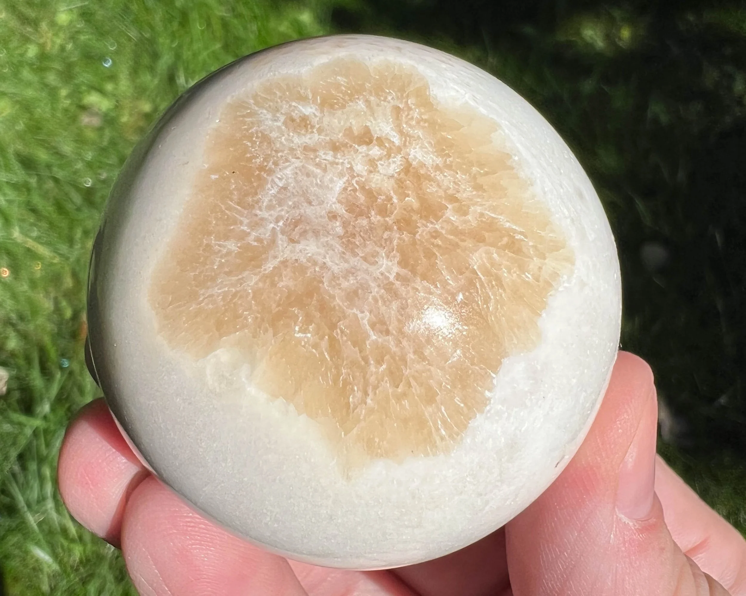 1.8" Scolecite Sphere with Peach Stilbite, Pink Stilbite, Polished Crystal Ball, Chatoyant Stilbite, White Crystal, Home Decor, Gift Her #5