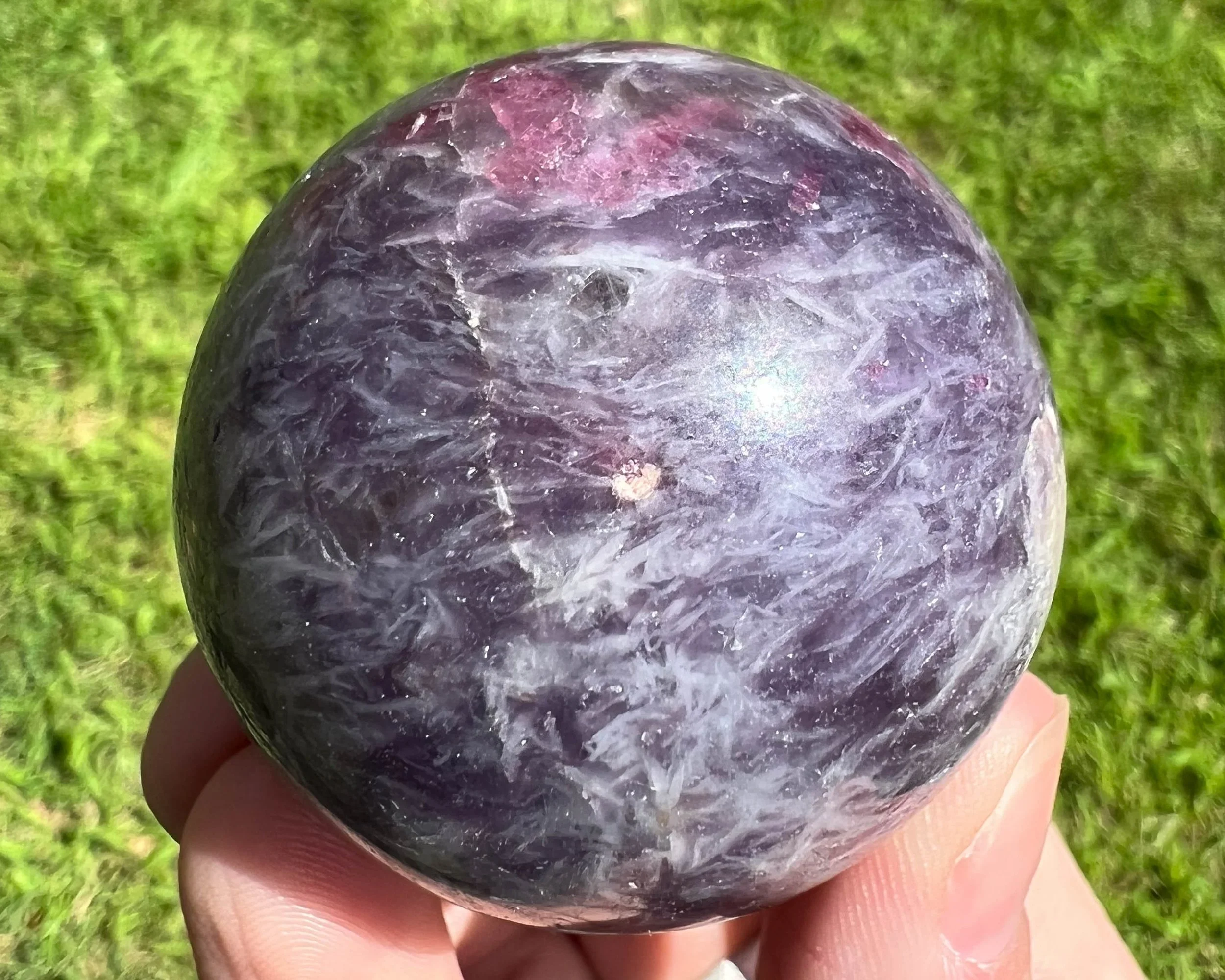 1.8" Unicorn Stone Sphere, Crystal Ball, Pink Tourmaline, Lepidolite, Smoky Quartz & Cleavelandite, Rubellite, Home Decor, Witchy Gift #3