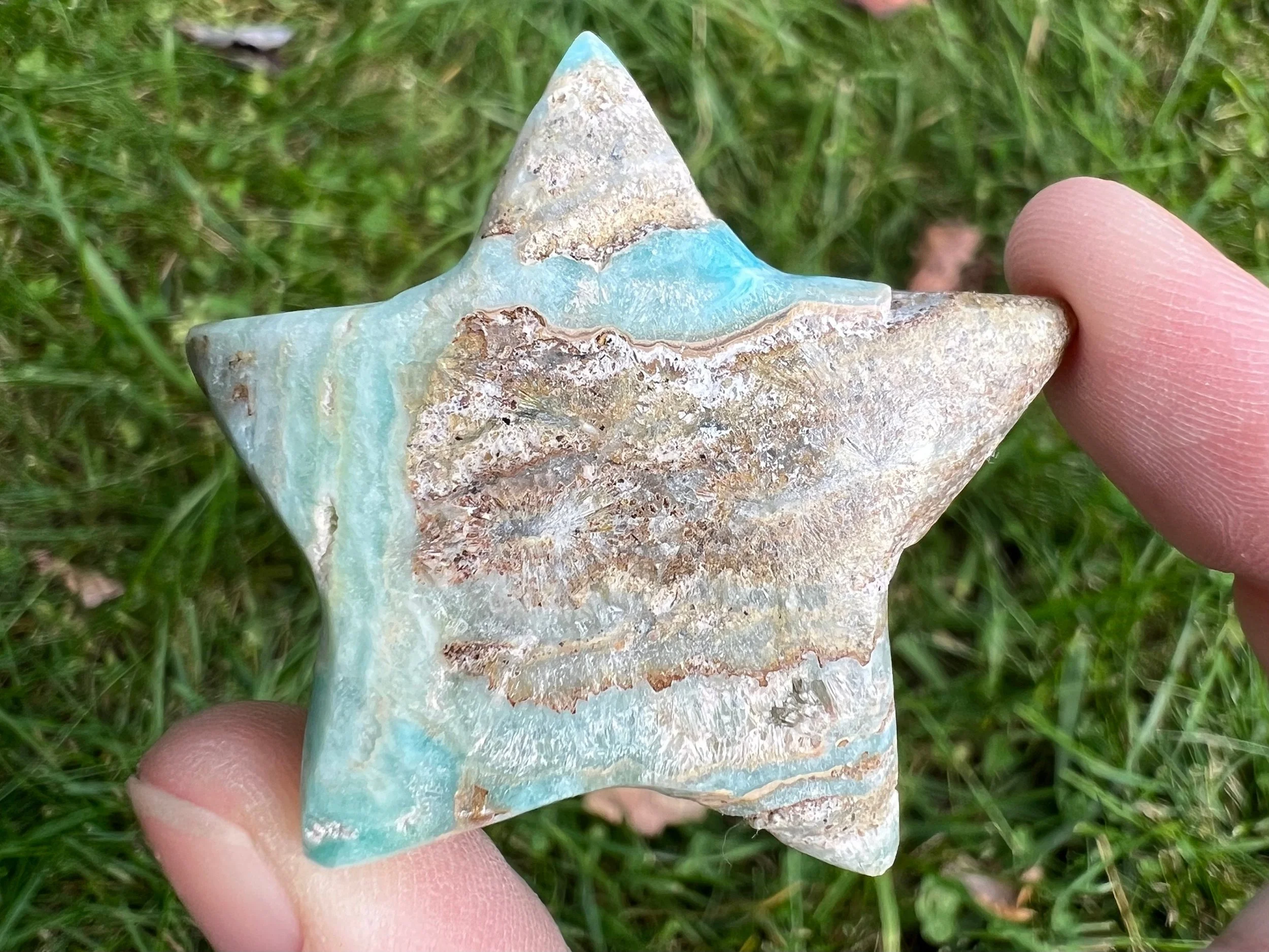1.9" Blue Aragonite Star #8 Small Aqua Blue Crystal Carving, Banded Caribbean Calcite, Astrology Decor, Astronomy Lover Gift for Her, Him