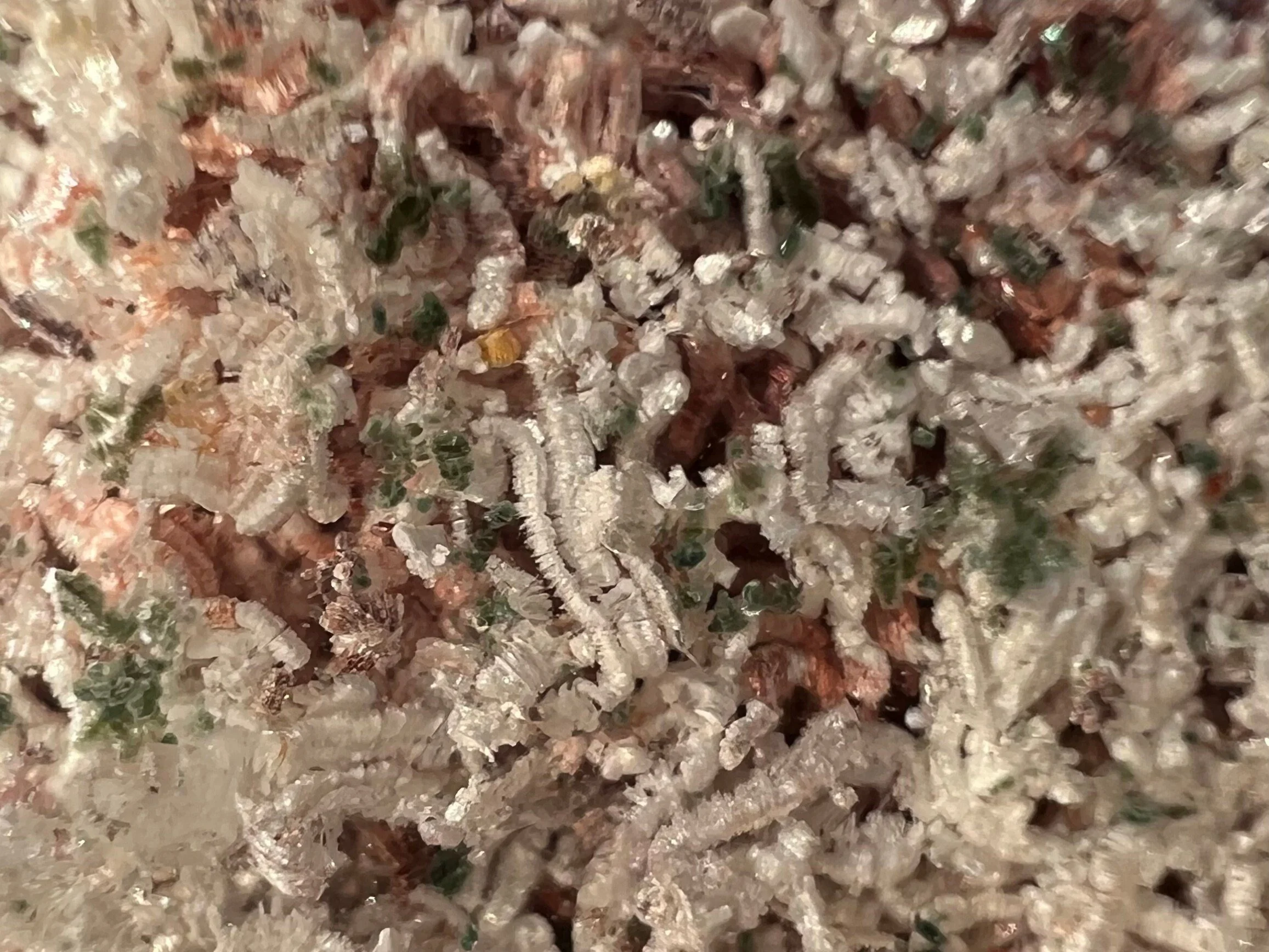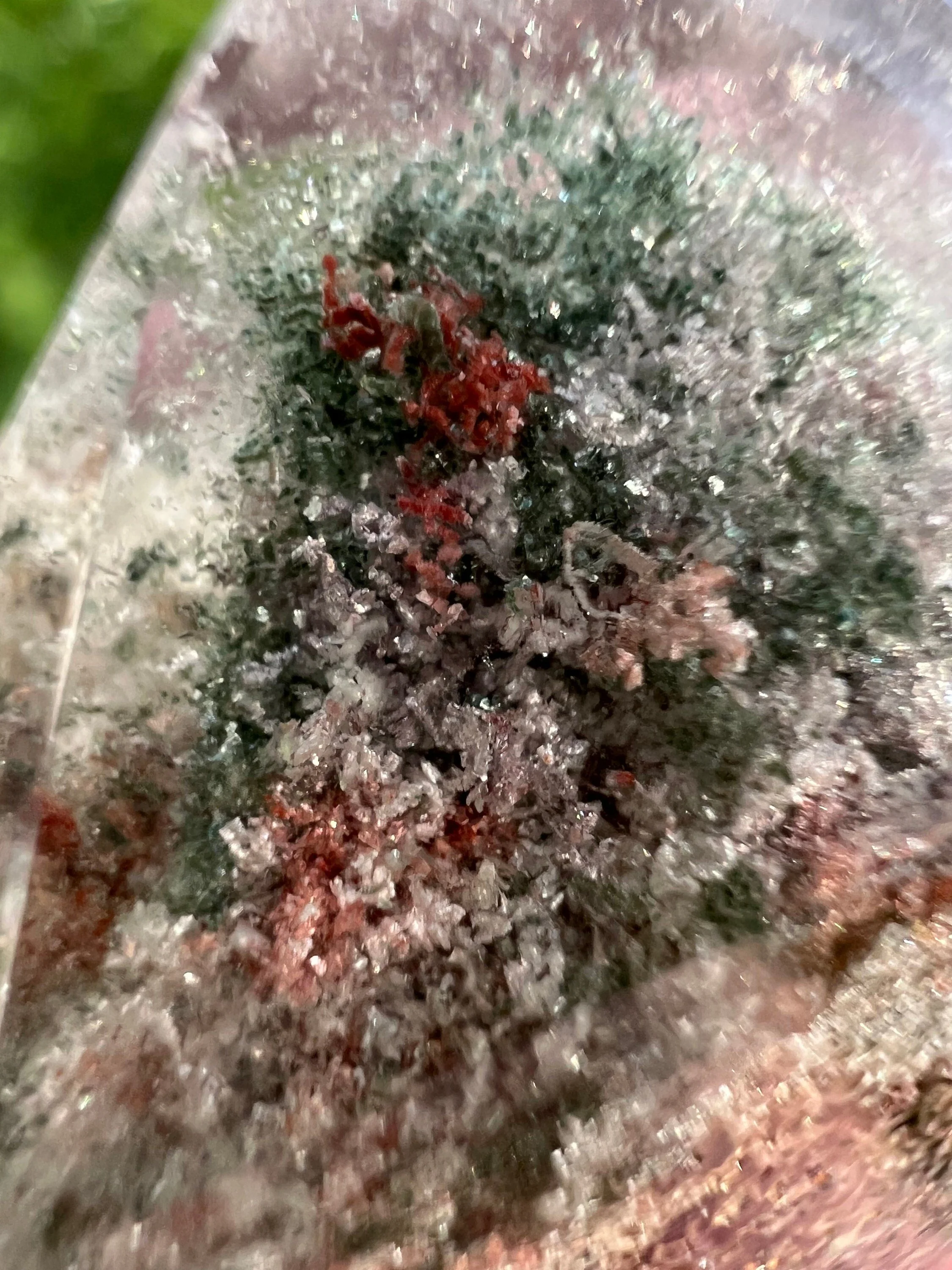 This is a beautiful polished Quartz that is also Lodolite, aka scenic inclusion Quartz from Brazil. It is full of pink, green and white inclusions that look like fuzzy colorful moss frozen in glass. It's so much better in person because a camera can't quite catch all the details. So pretty! :D