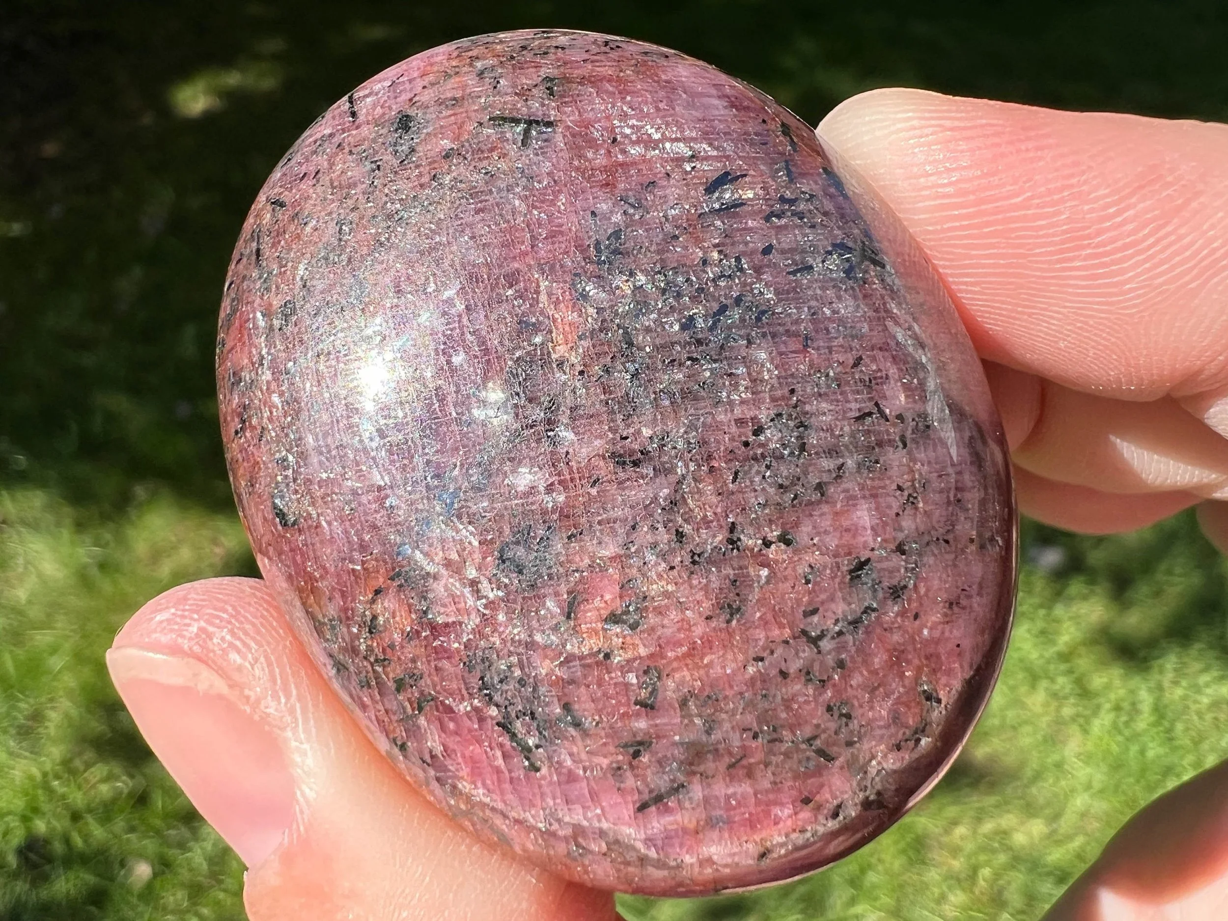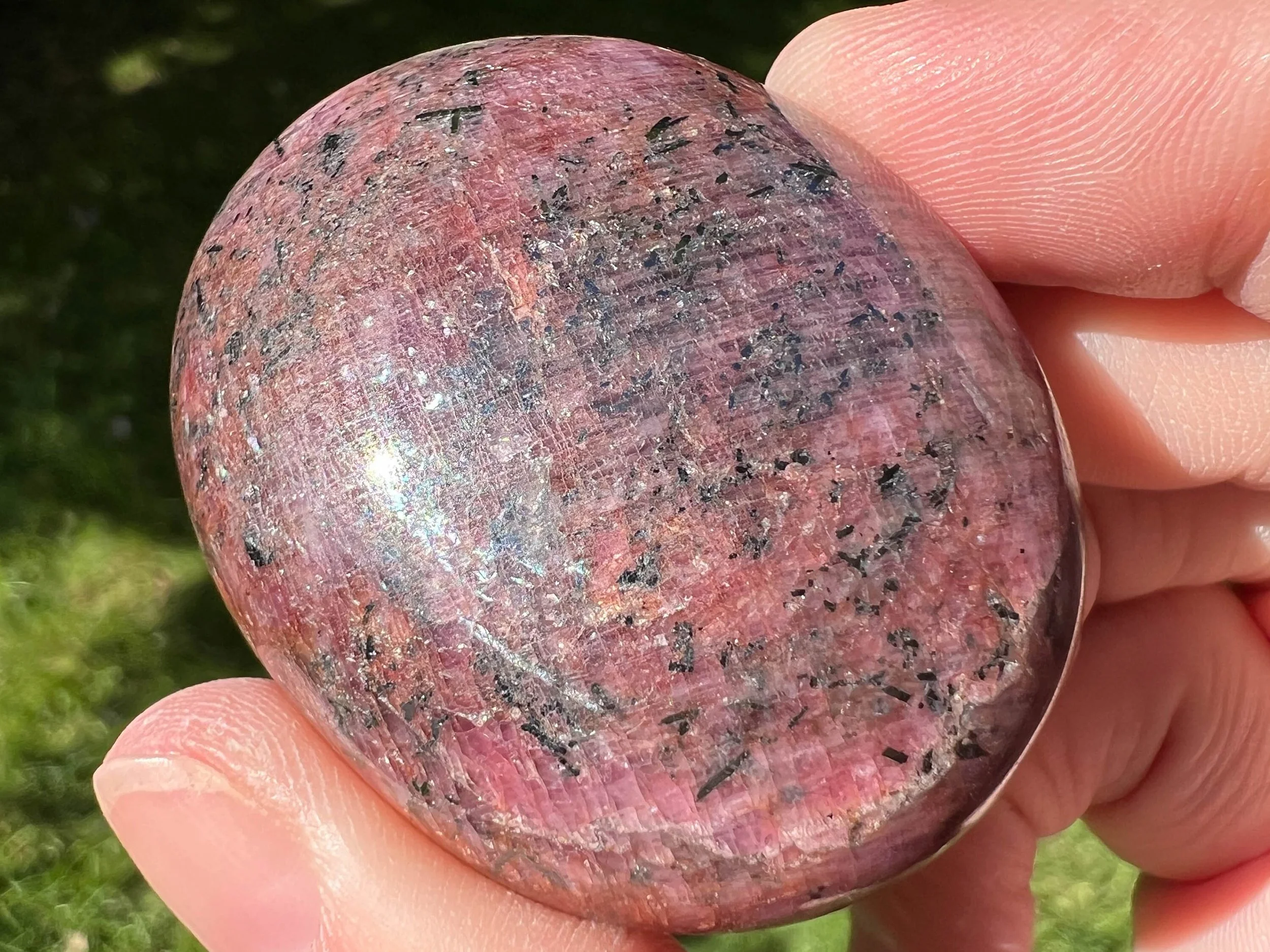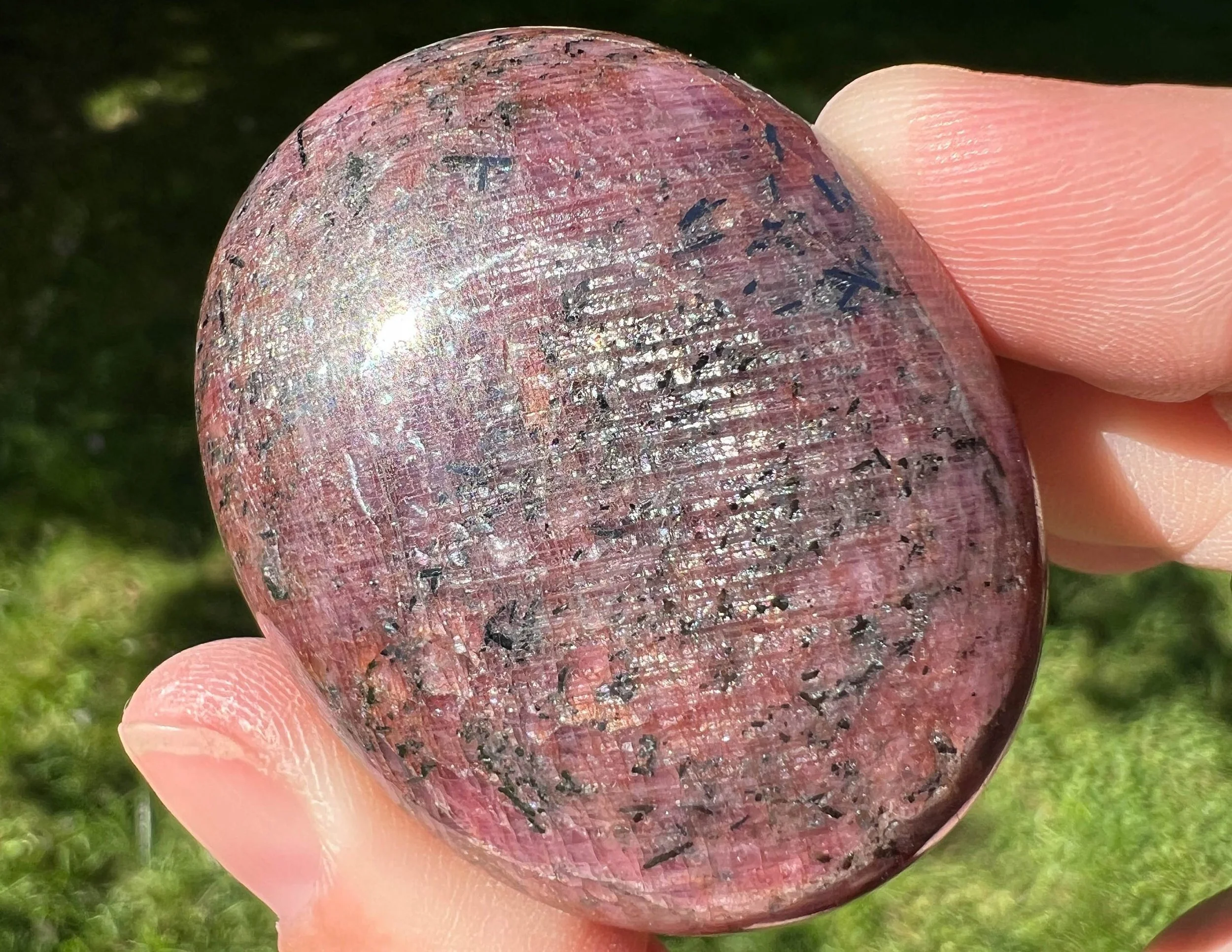 1.9" Star Ruby Palm Stone #6 Polished Crystal, Chatoyant Pink, July Birthstone Gift for Leo, Crystal for Cancer, UV Reactive, Smooth Fidget
