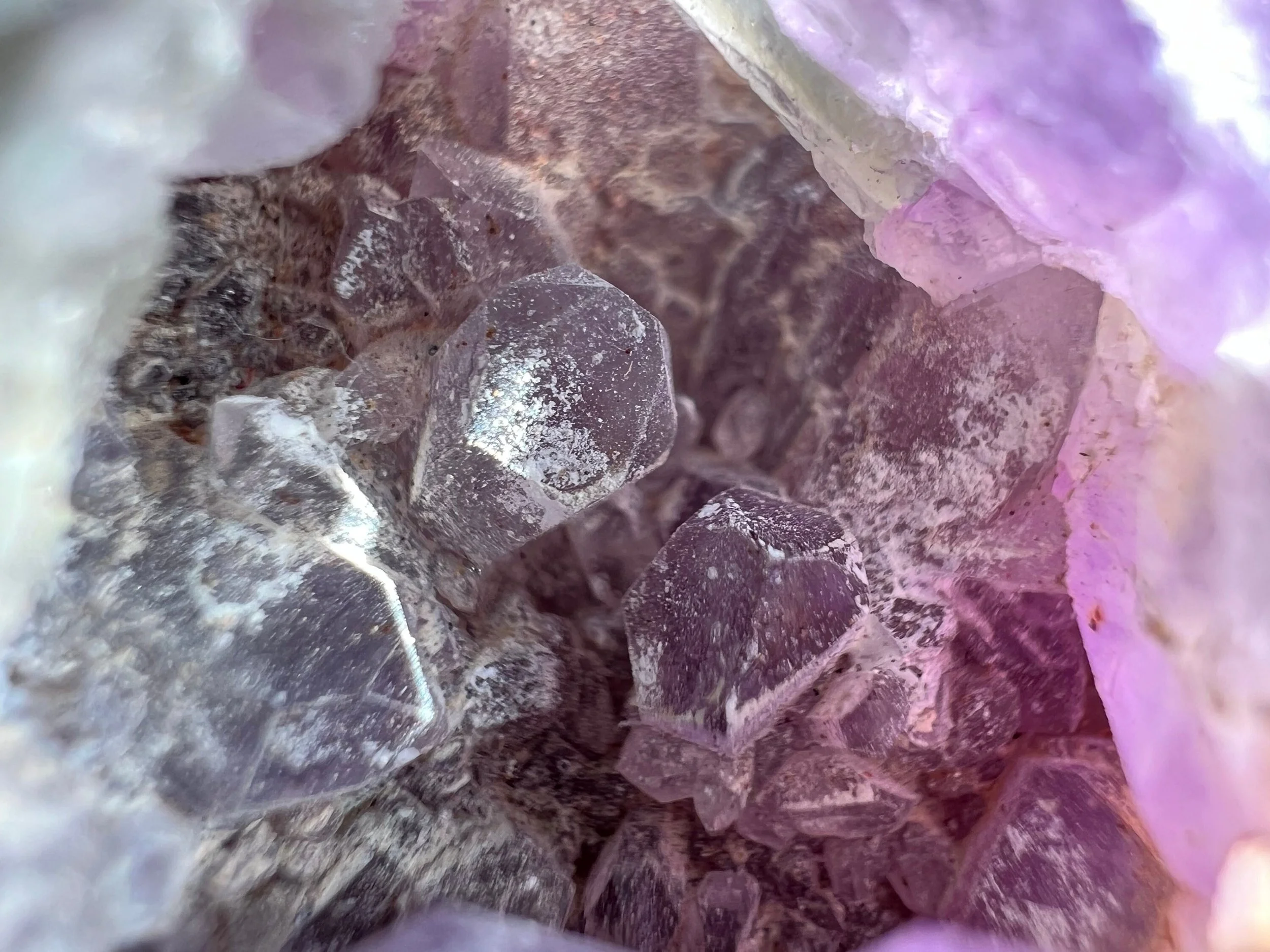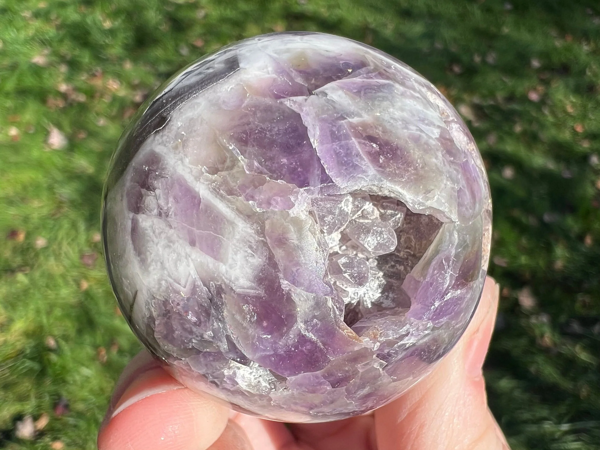 2" Chevron Amethyst Sphere with Crystal Pockets #4 Dream Amethyst Crystal Ball, Banded Purple White Smoky, February Birthstone Gift for Her