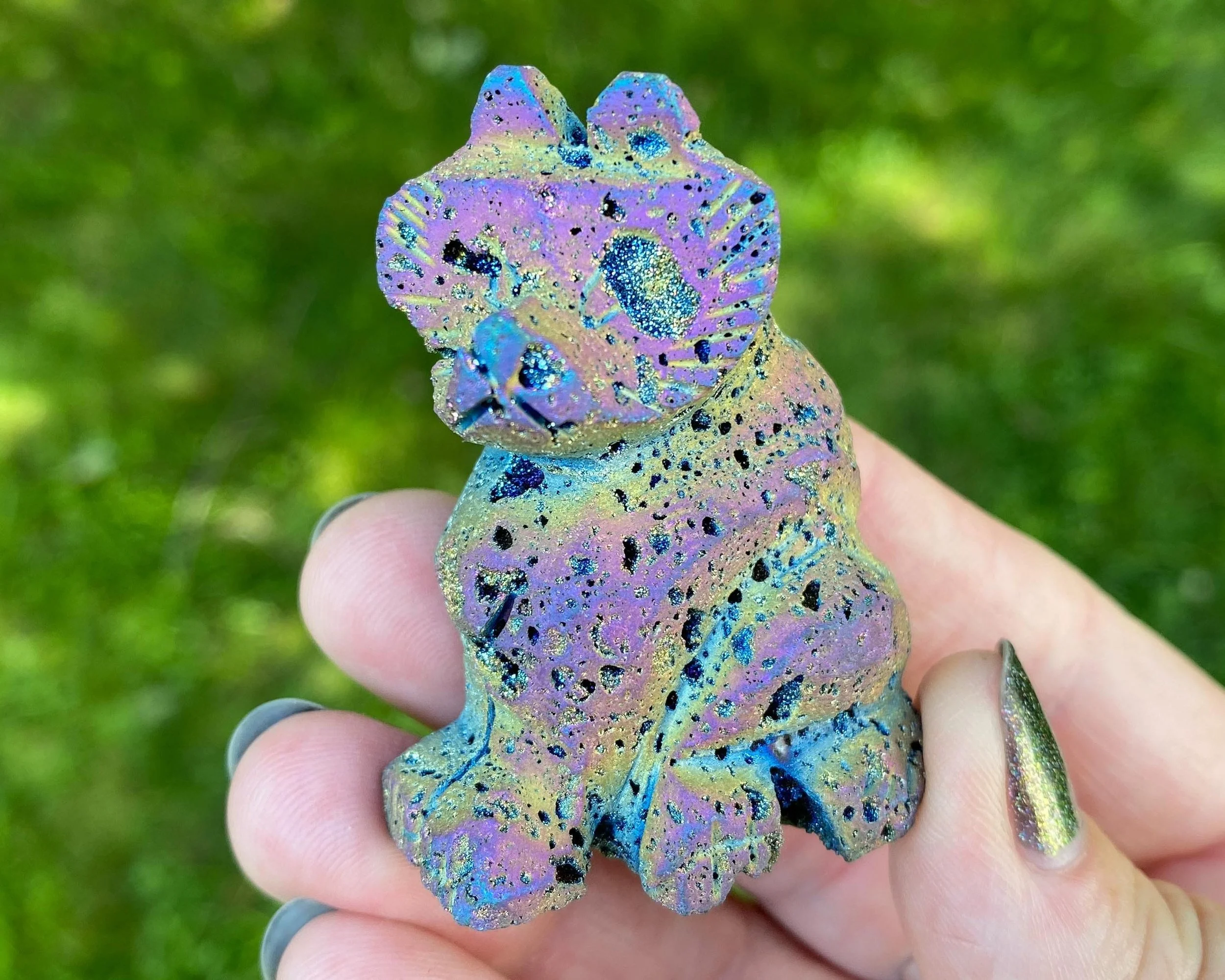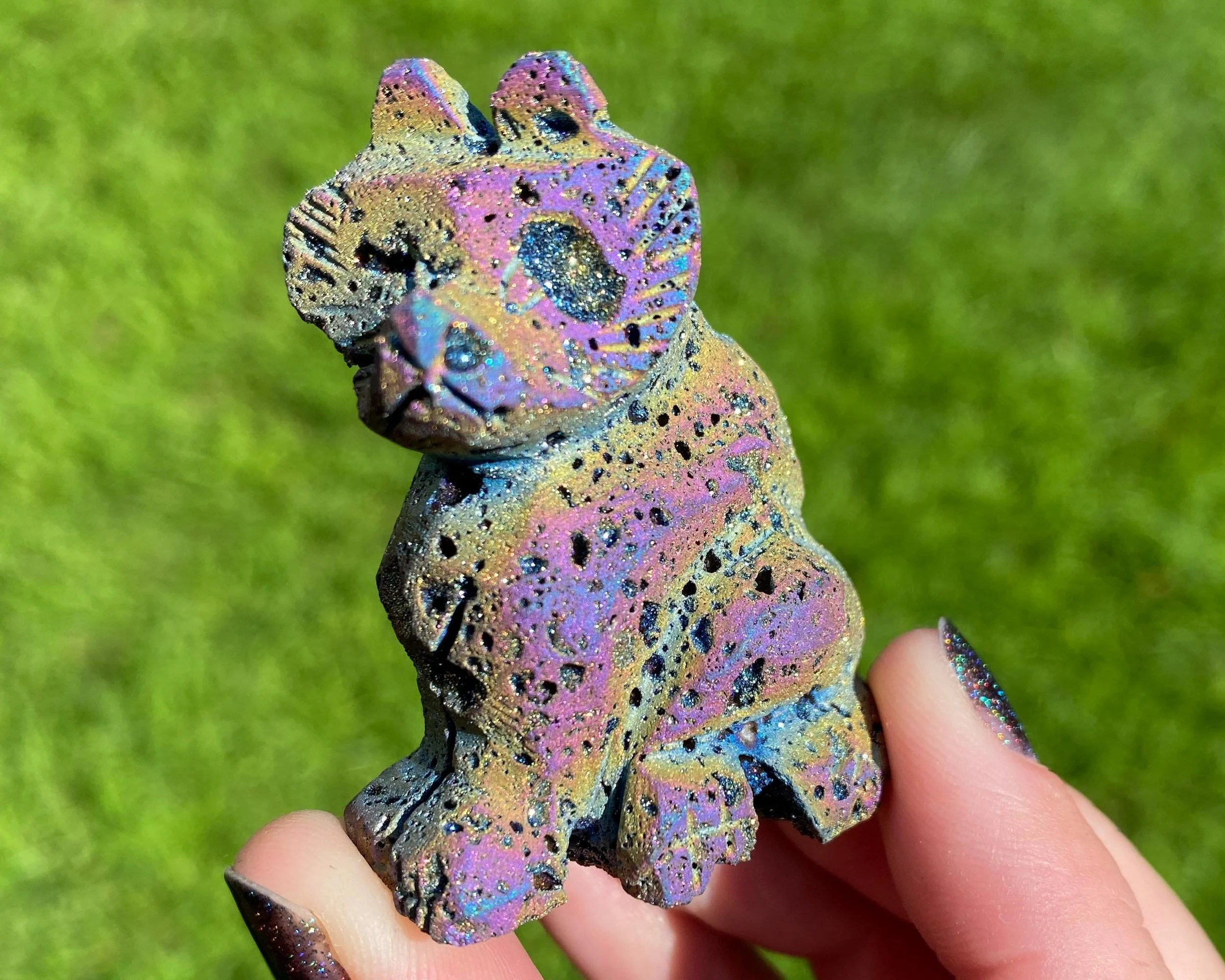 2" Rainbow Quartz Druzy Fox with Druzy Pockets, Rainbow Aura, Titanium Crystal Carving, Small Fox Figurine, Gemstone Totem #2