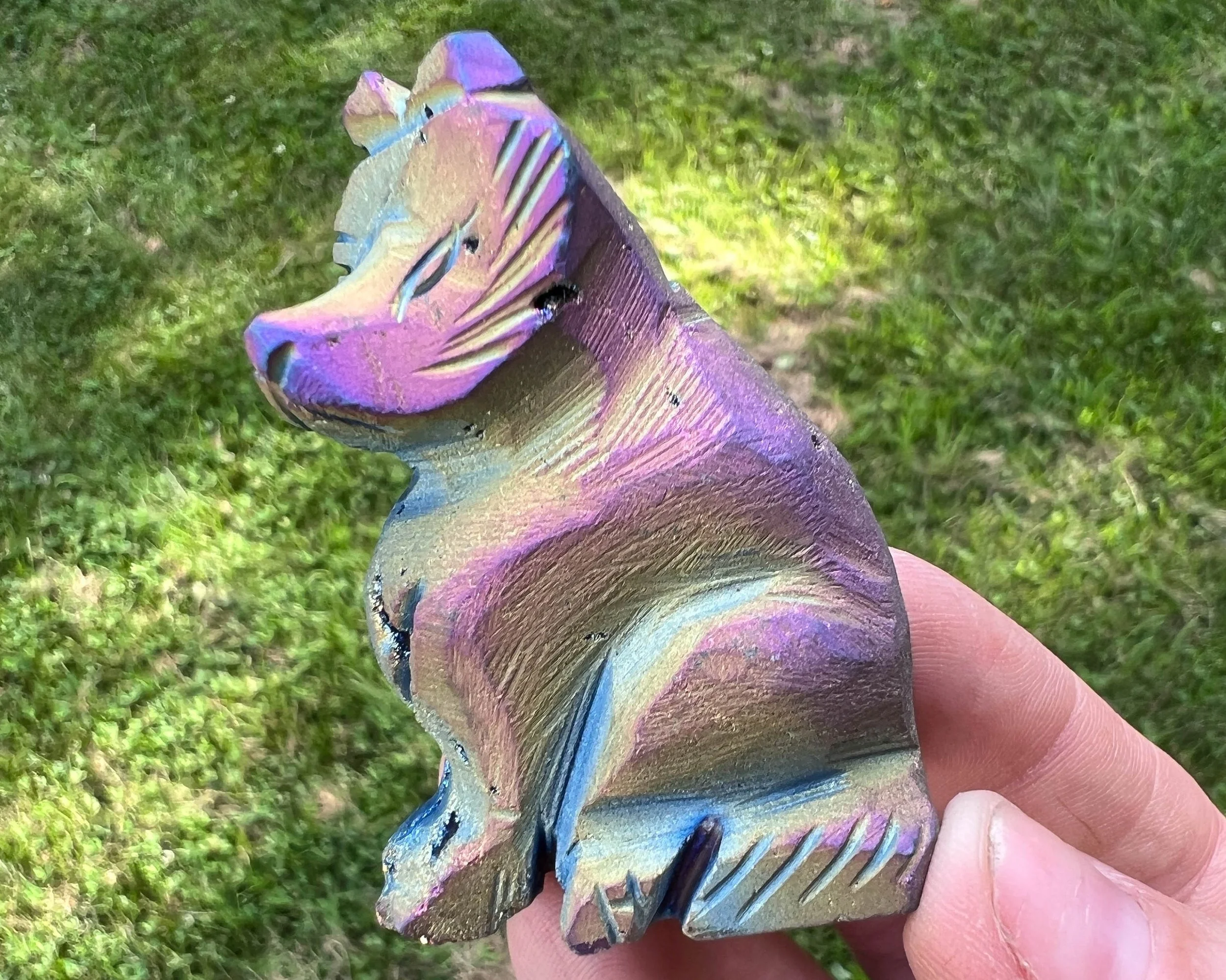 2" Rainbow Quartz Druzy Fox with Druzy Pockets, Rainbow Aura, Titanium Crystal Carving, Small Fox Figurine, Gemstone Totem #3