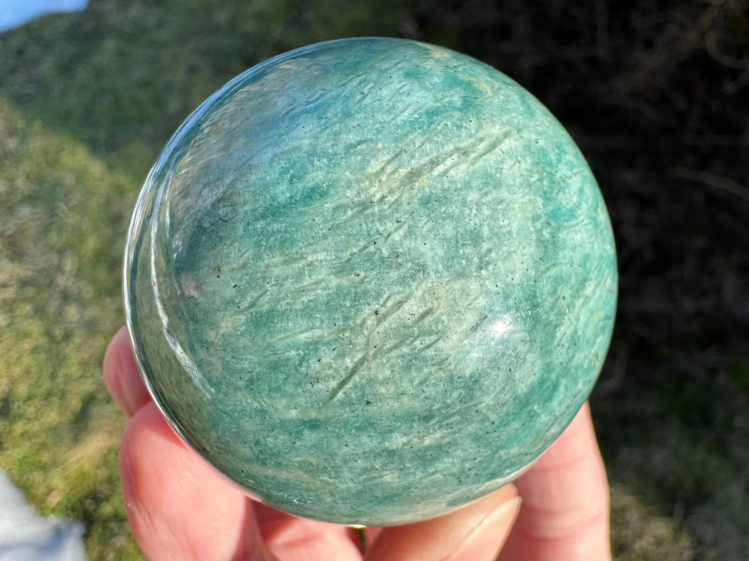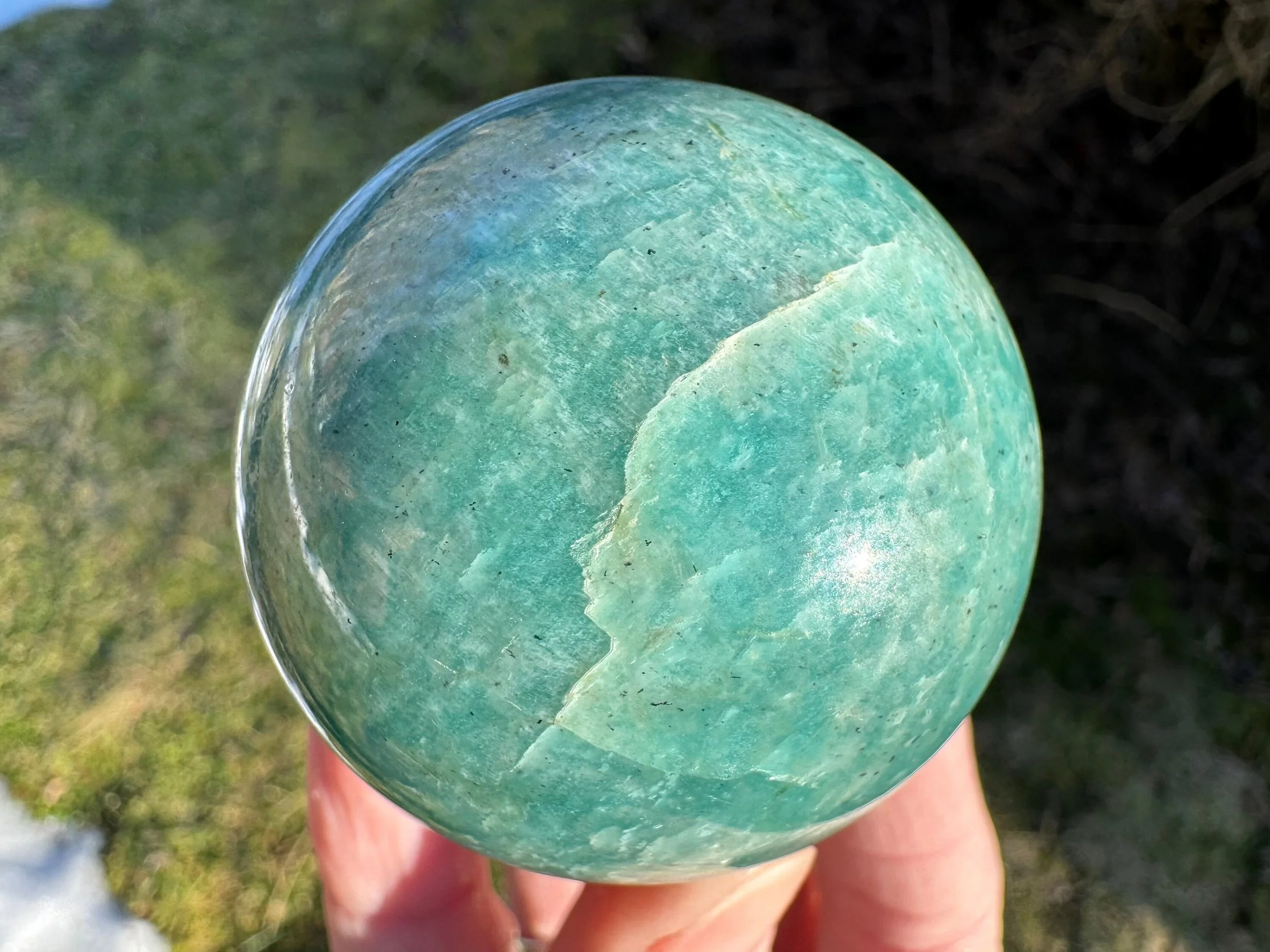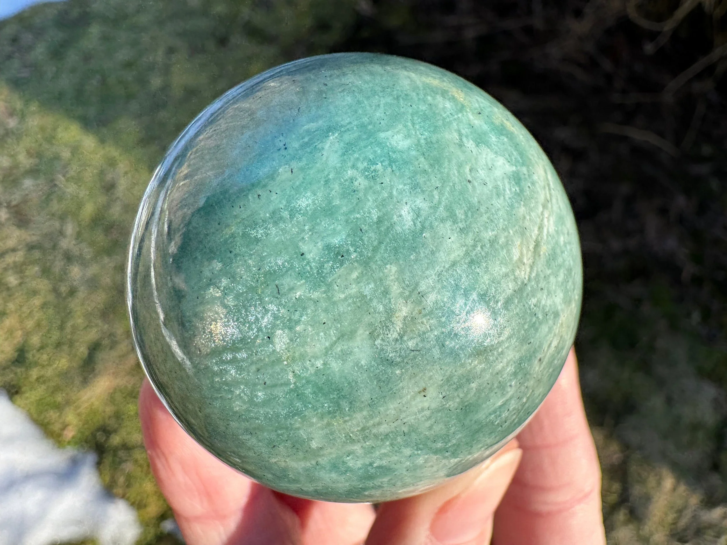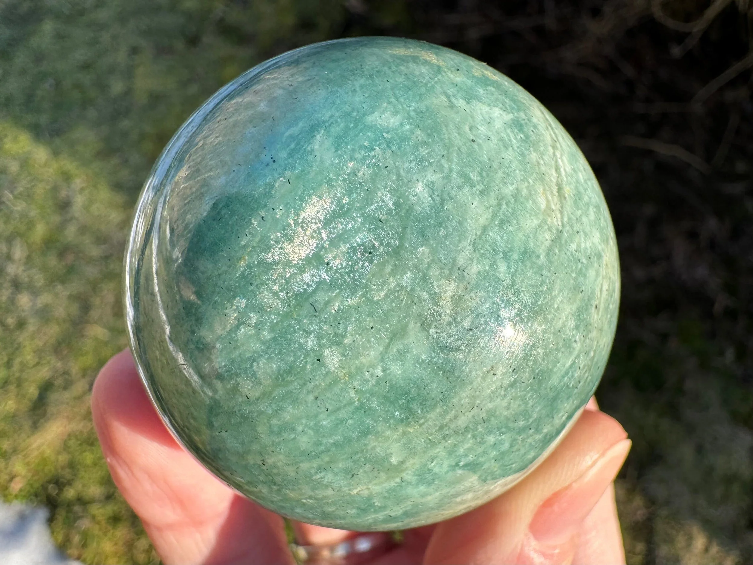 2" Shimmery & Bright Amazonite Sphere, Aqua Blue Feldspar Crystal Ball, Gemstone Sphere, Natural Vibrant Color, Witchy Gift for Her, for Him