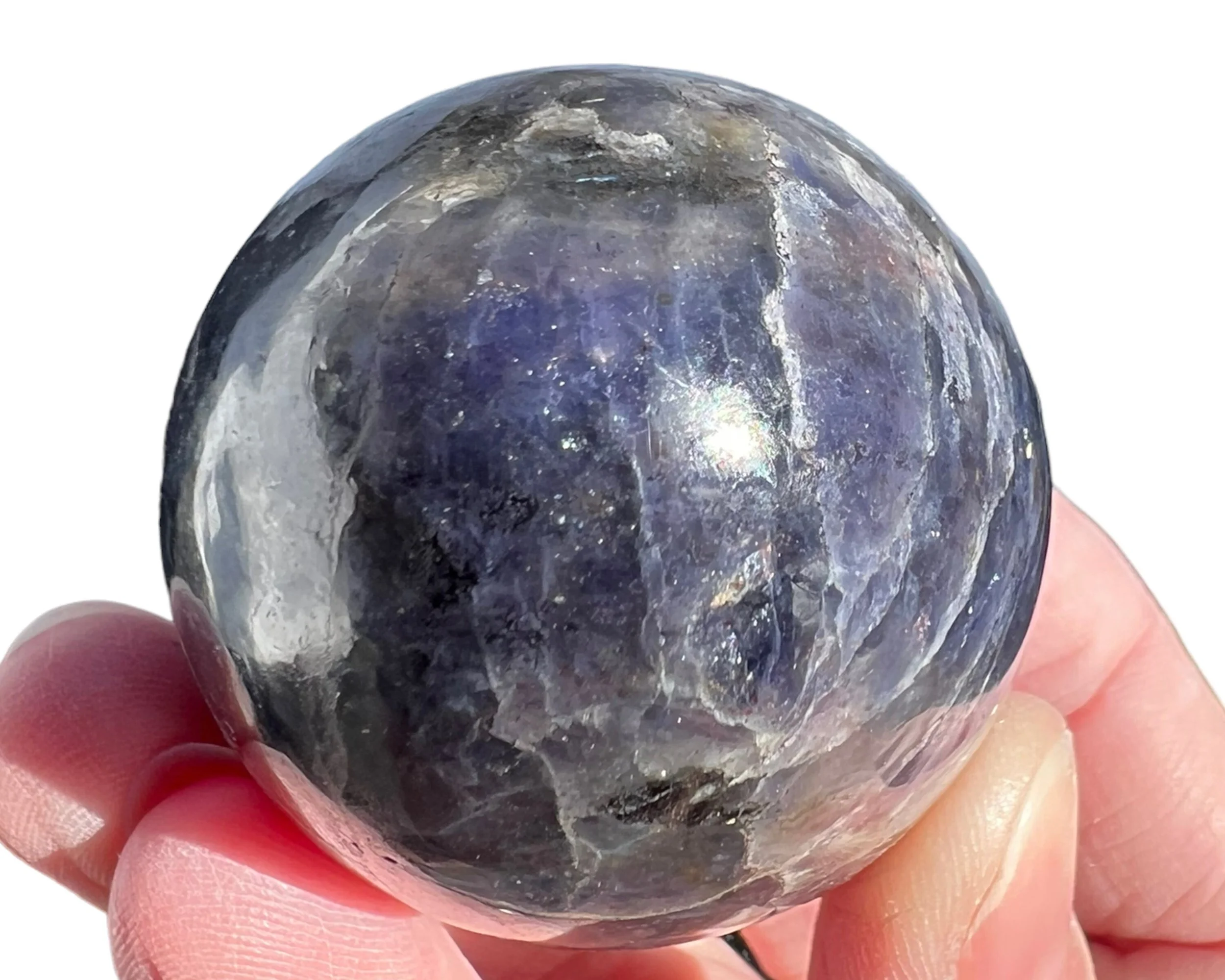 Iolite is a stone of vision. It is used to enhance spiritual visions, to see clearly - especially see within ones’ self, and to strengthen intuition. Iolite is used to activate the Third Eye Chakra and is associated with the zodiac signs Libra, Sagittarius and Taurus. It is believed that Iolite is the “sunstone” that vikings used to navigate when it was difficult to see the sun’s position on cloudy days. This was previously thought to be optical calcite, but more recent discoveries have shown that it was most likely to be slices of Iolite.