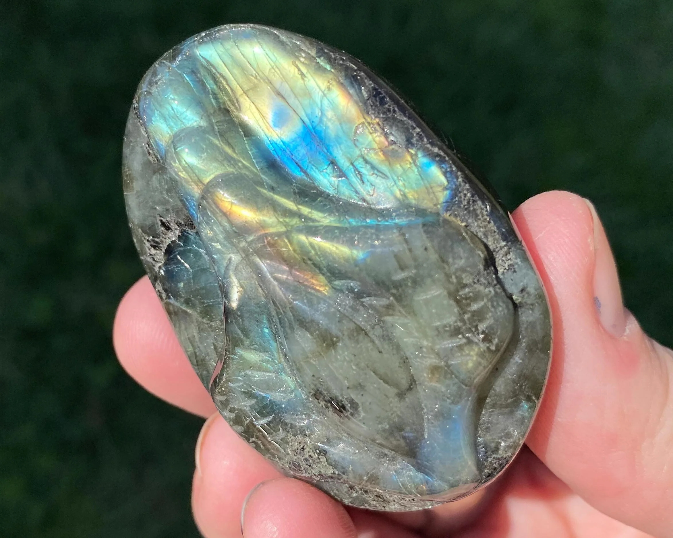This is a lovely yoni figurine carved from beautiful flashy labradorite. It has lovely color. A very feminine piece that makes a beautiful tribute to fertility, sex, motherhood and/or the female figure.