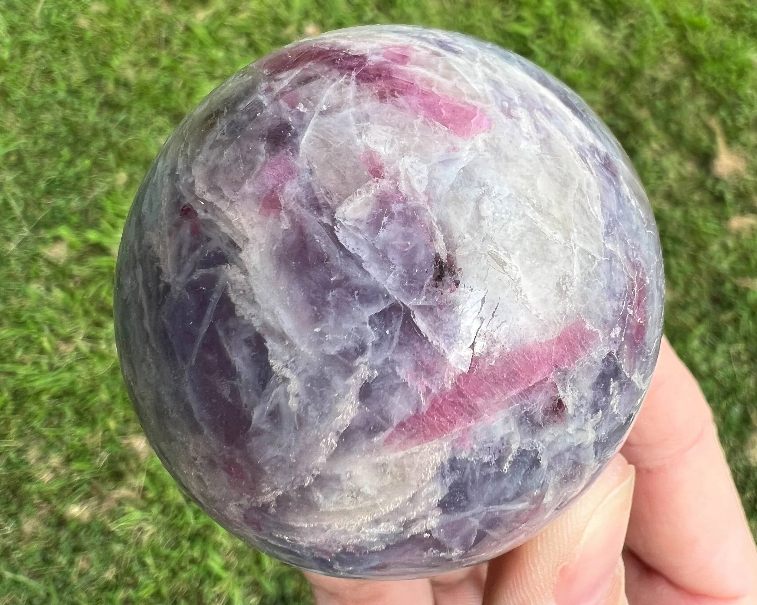 2.1" Unicorn Stone Sphere, Crystal Ball, Pink Tourmaline, Lepidolite, Smoky Quartz & Cleavelandite, Rubellite, Home Decor, Witchy Gift #6