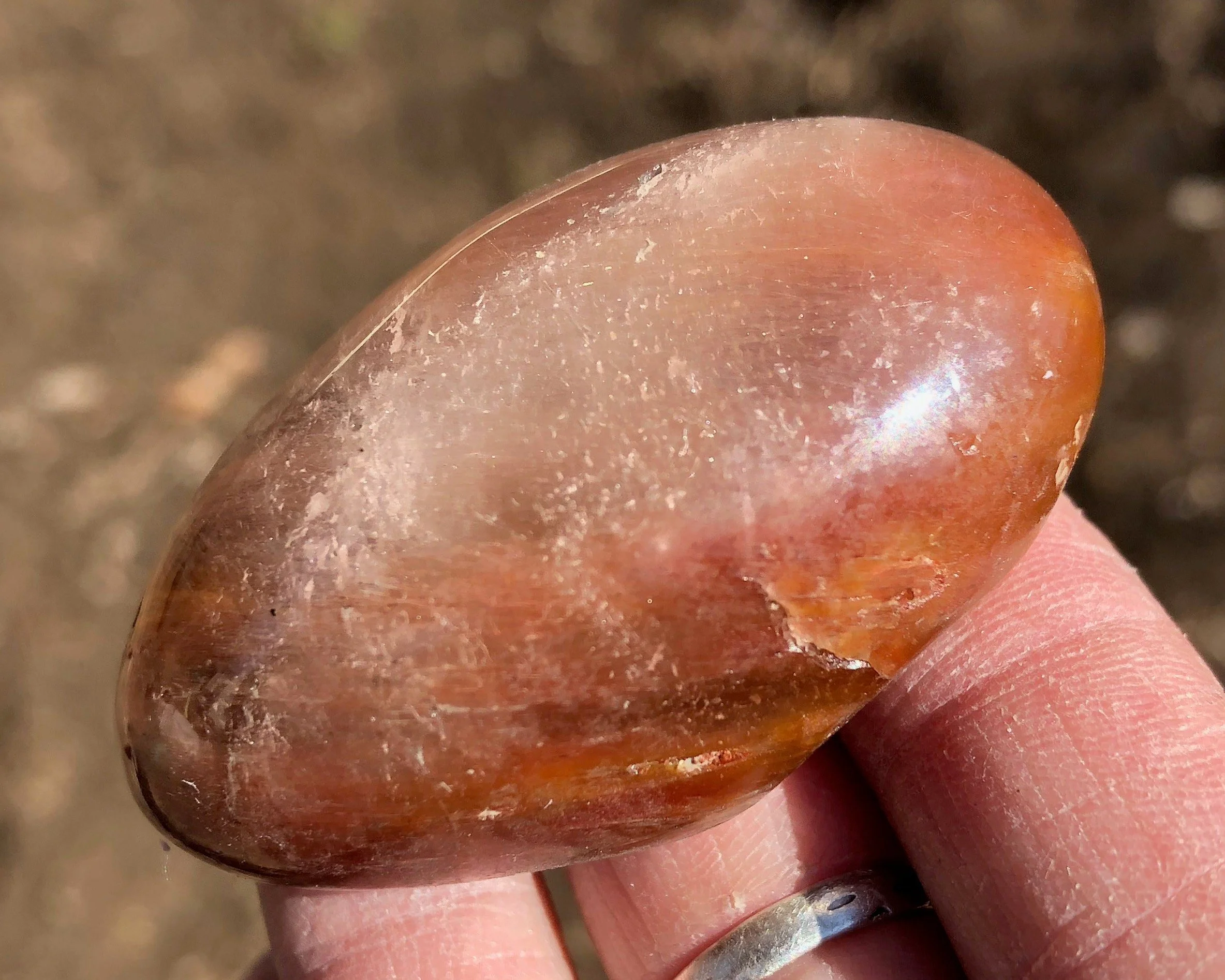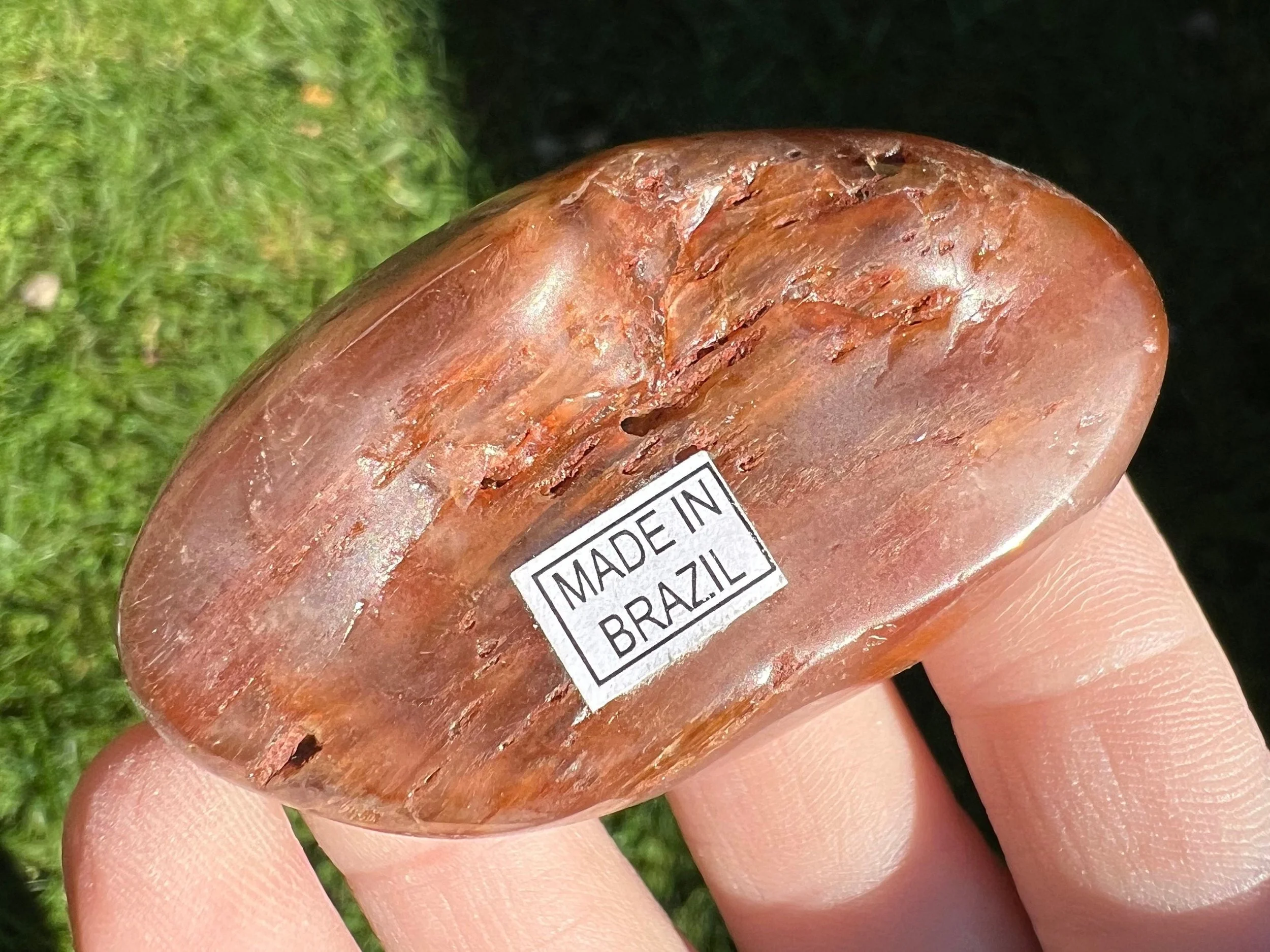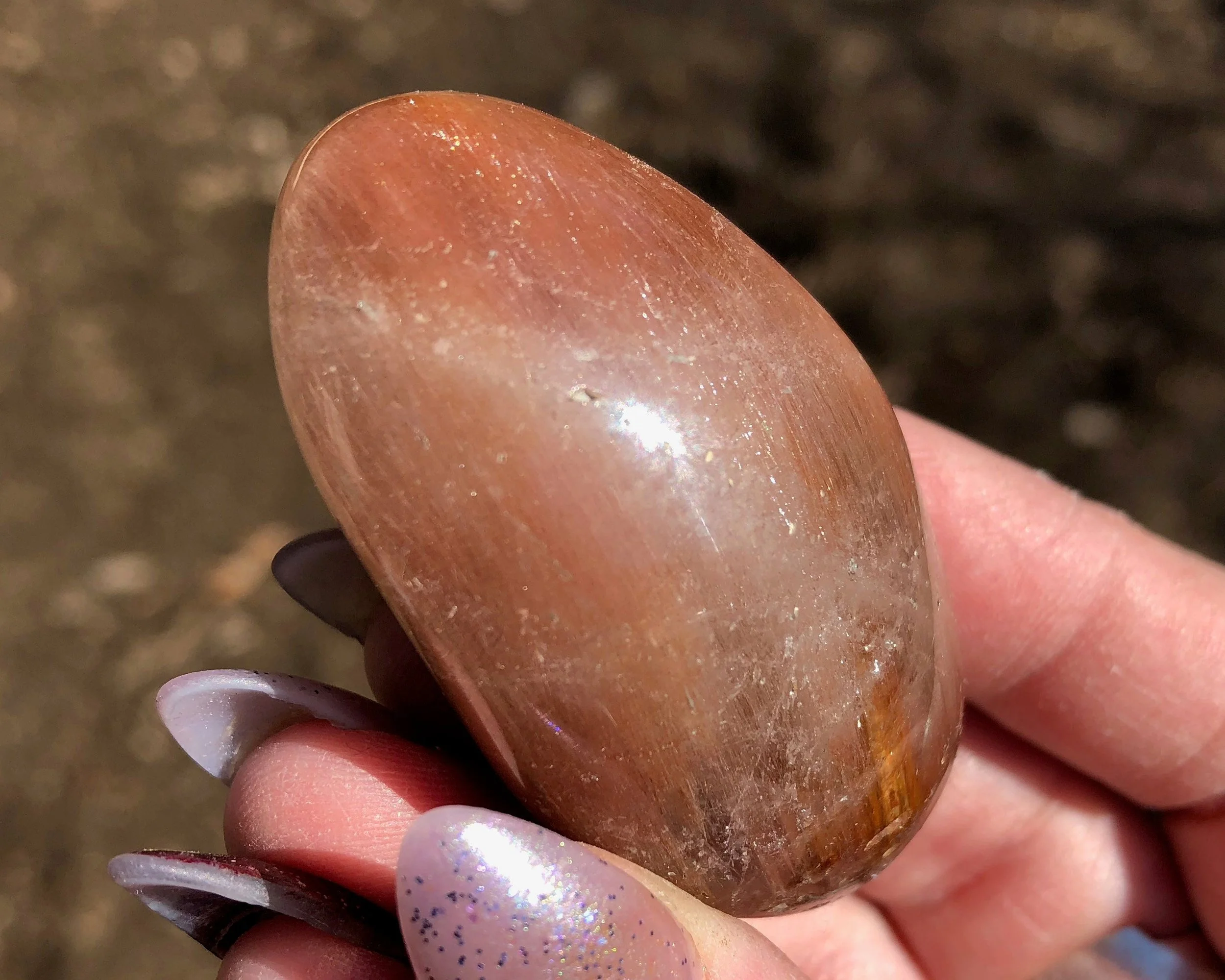 This is a beautiful polished round Amphibole Quartz lens from Brazil. It is full of thin, silky pink and red fibrous strands of amphibole minerals in polished clear Quartz crystal. It's so much better in person because a camera can't quite catch all the details. So pretty! :D