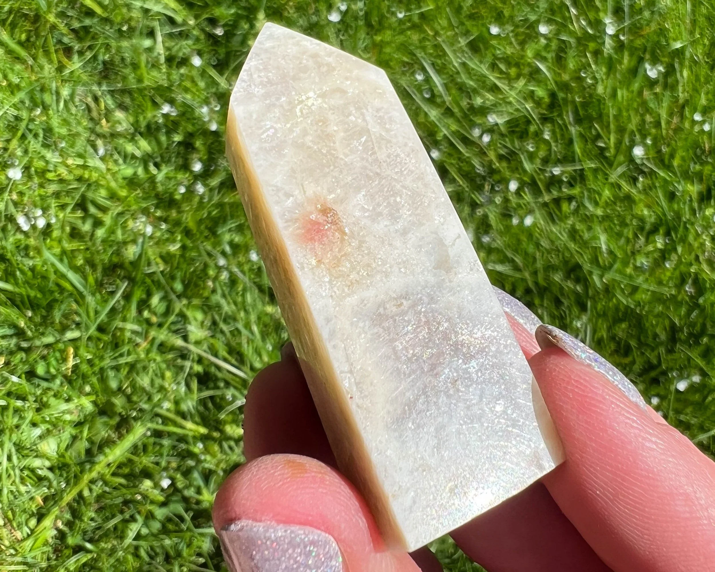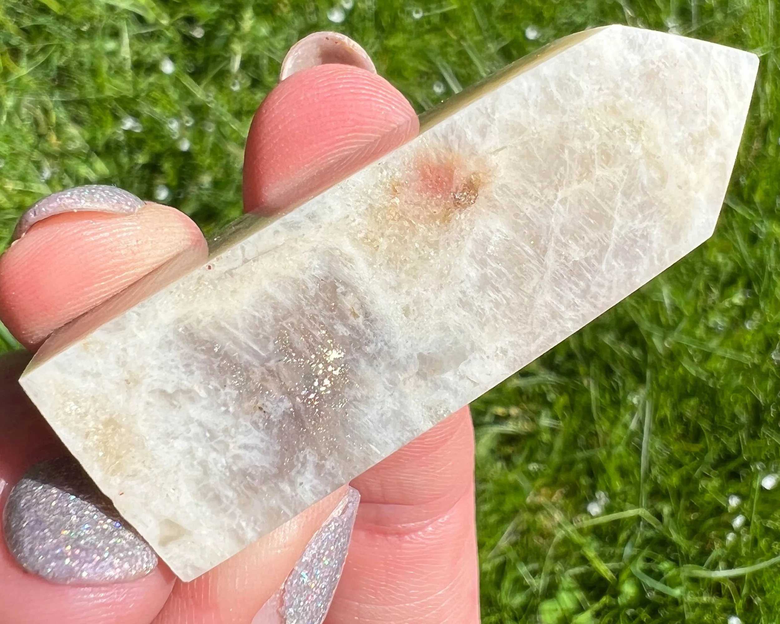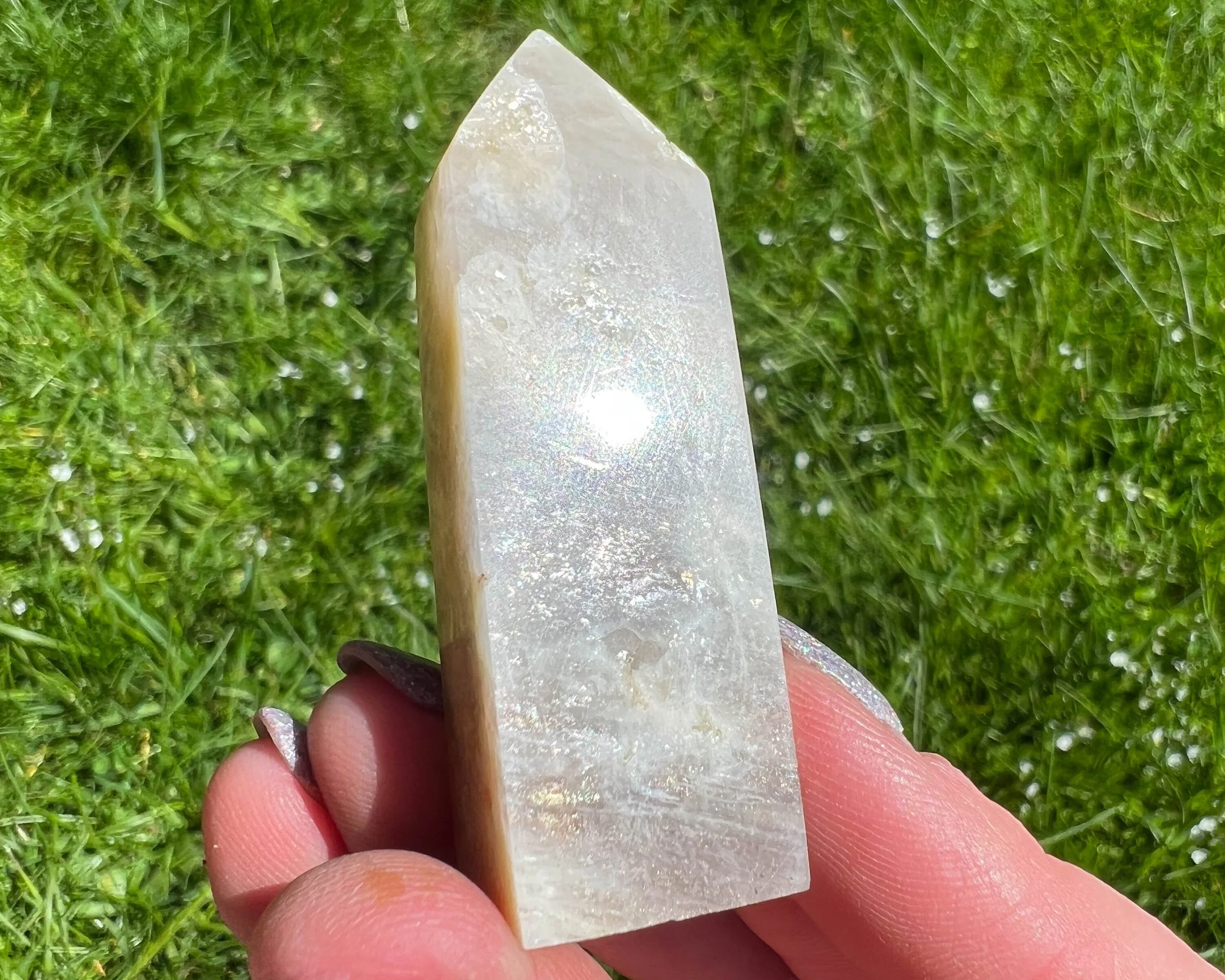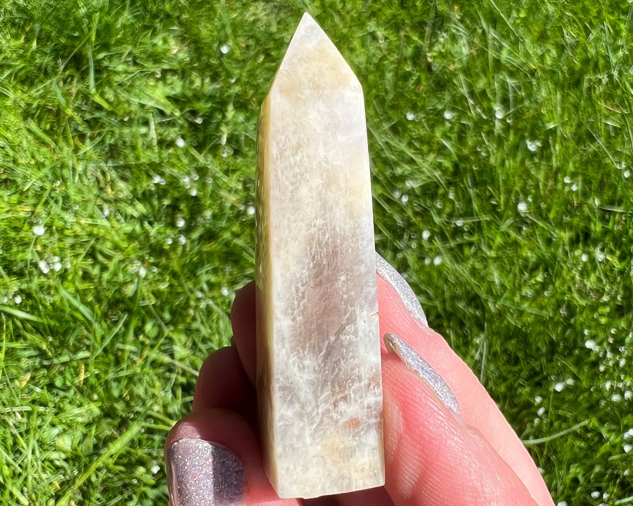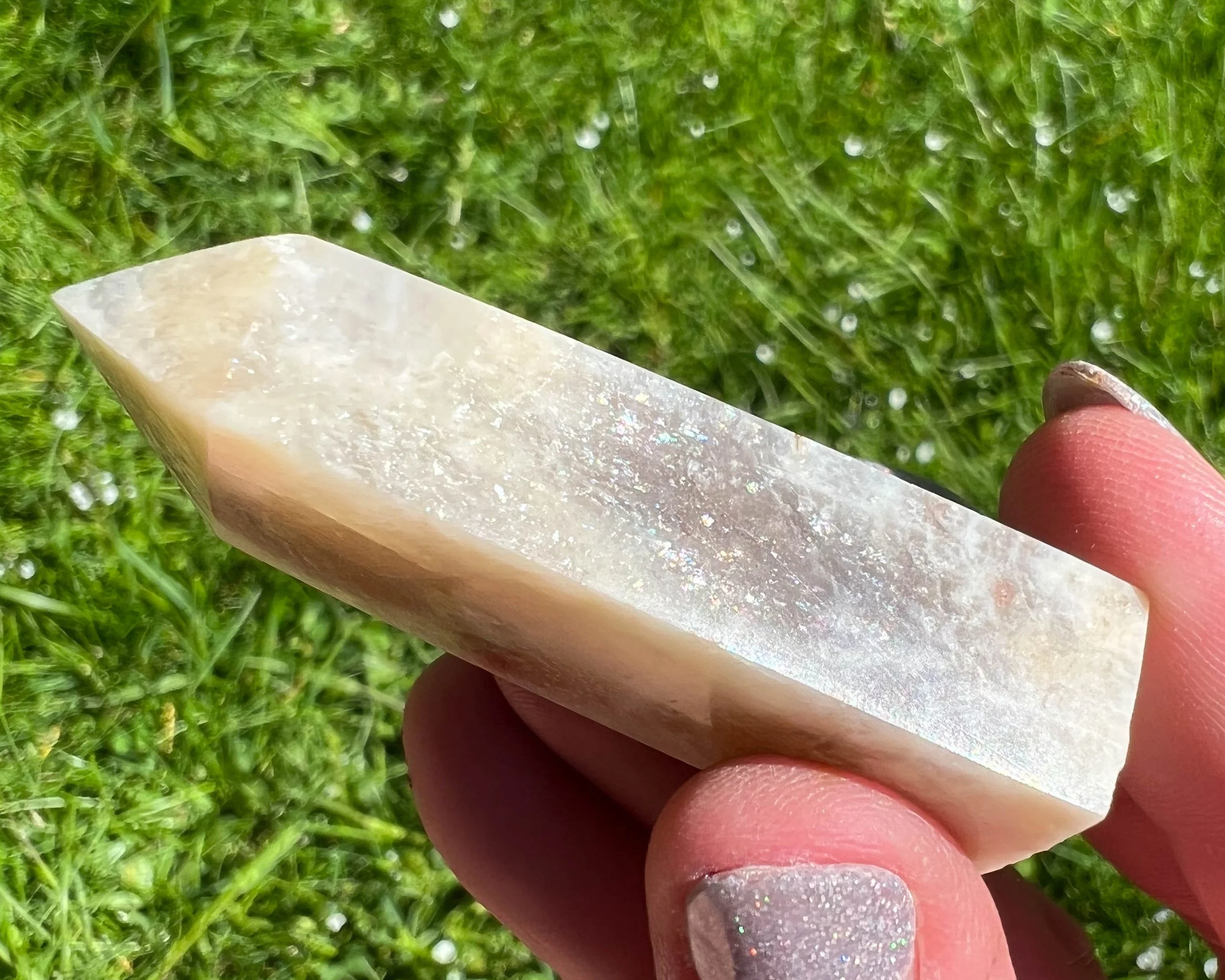 2.2" Belomorite Moonstone Sunstone Tower, Flashy Moonstone and Sunstone, Small Crystal Points, Blue Flash Confetti Sunstone, #2