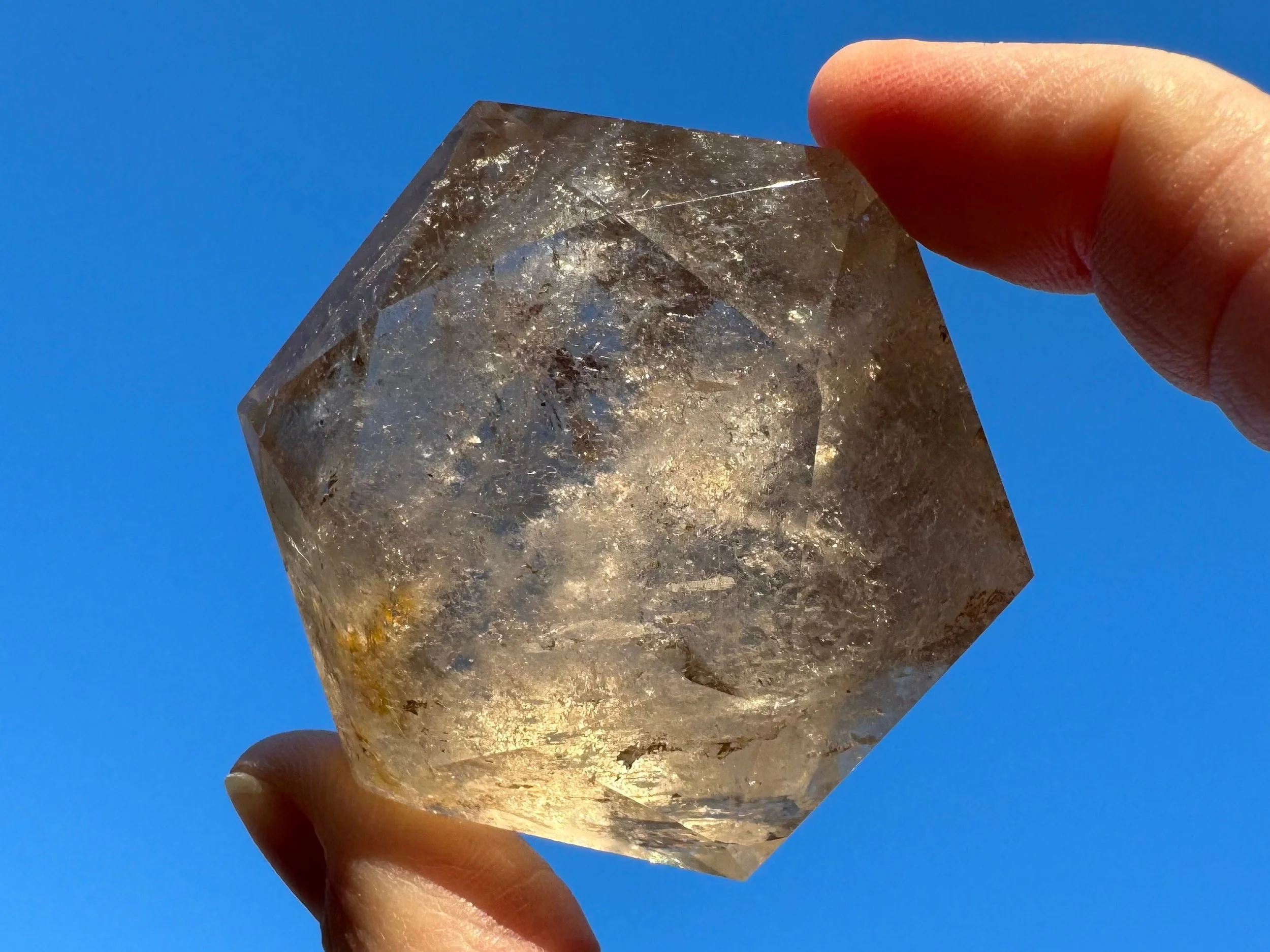 2.2" Smoky Quartz Diamond w Rainbows #2 Brilliant Cut Crystal Jewel Carving, Witchy Home Decor, Gift for Her, Gift for Mom, Grounding Stone
