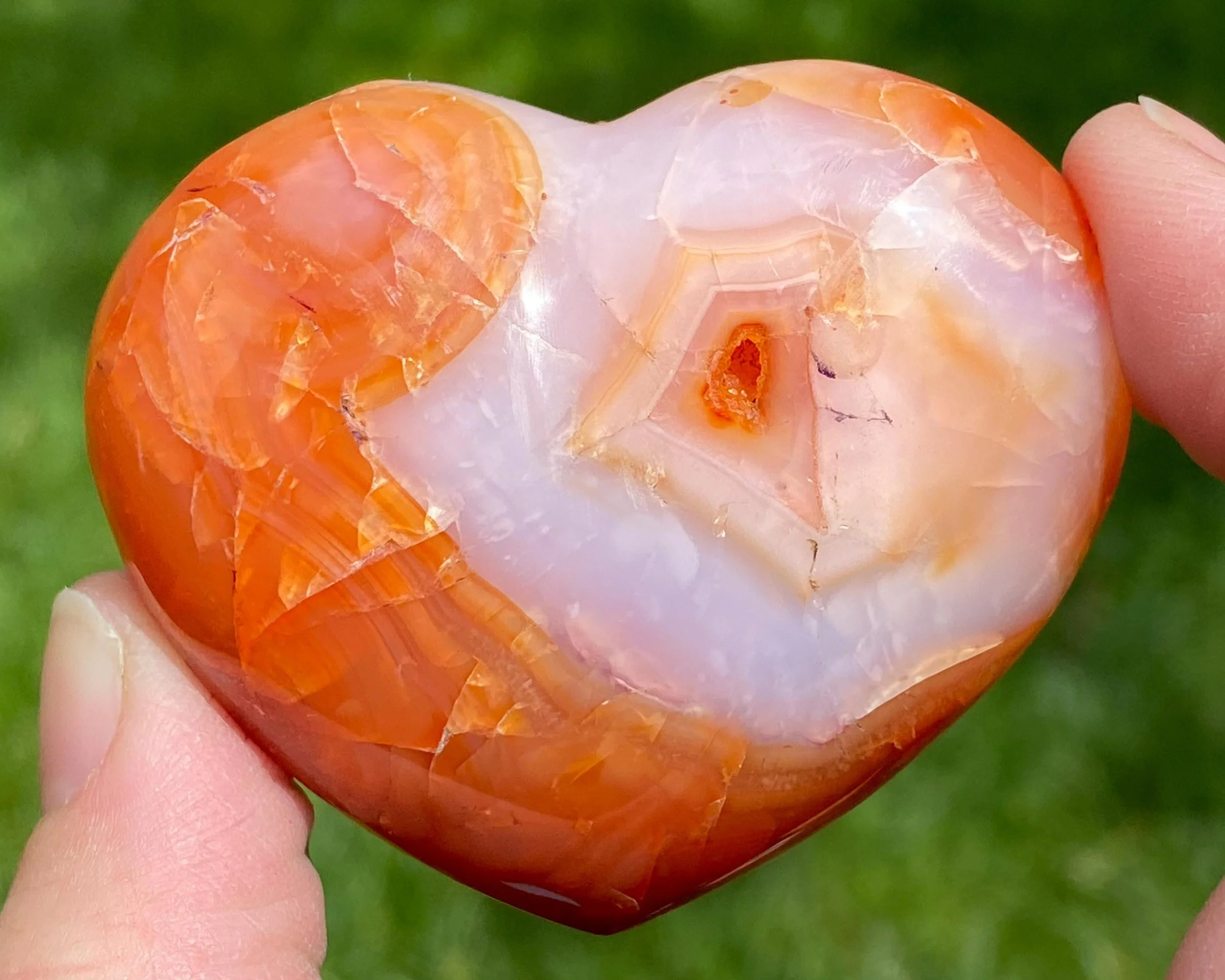 Image 1 of 9 Image 2 of 9 Image 3 of 9 Image 4 of 9 Image 5 of 9 Image 6 of 9 Image 7 of 9 Image 8 of 9 Image 9 of 9 2.3" Carnelian Agate Heart with Druzy Pocket, Crystal Gemstone Heart, Red Orange White Banded Agate Heart #2 $24.00 You will receive the exact piece pictured. A lovely Carnelian Agate Heart with deep red and bright oranges with contrast whites. Has a sweet little pocket of druzy quartz! Measures 2.3 x 1.9 x 1 inches Weighs 92 grams / 3.3 ounces Thanks for looking! Kouva Dream Catchers Add To Cart Added! You will receive the exact piece pictured. A lovely Carnelian Agate Heart with deep red and bright oranges with contrast whites. Has a sweet little pocket of druzy quartz! Measures 2.3 x 1.9 x 1 inches Weighs 92 grams / 3.3 ounces Thanks for looking! Kouva Dream Catchers Reviews Reviewer Name Review Date Star Rating Description Posted on Etsy Product Show More