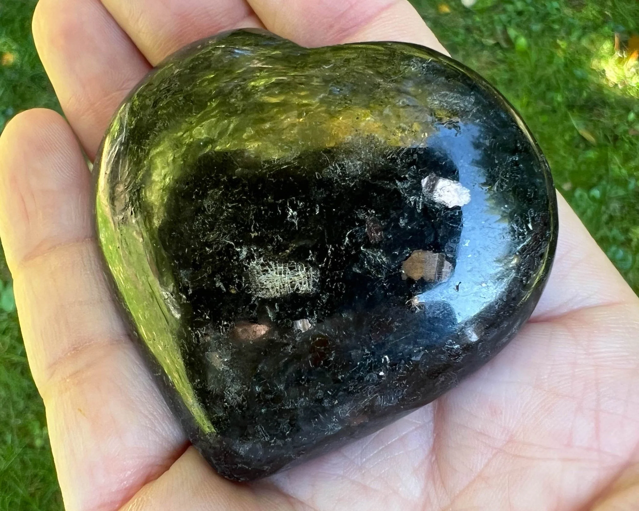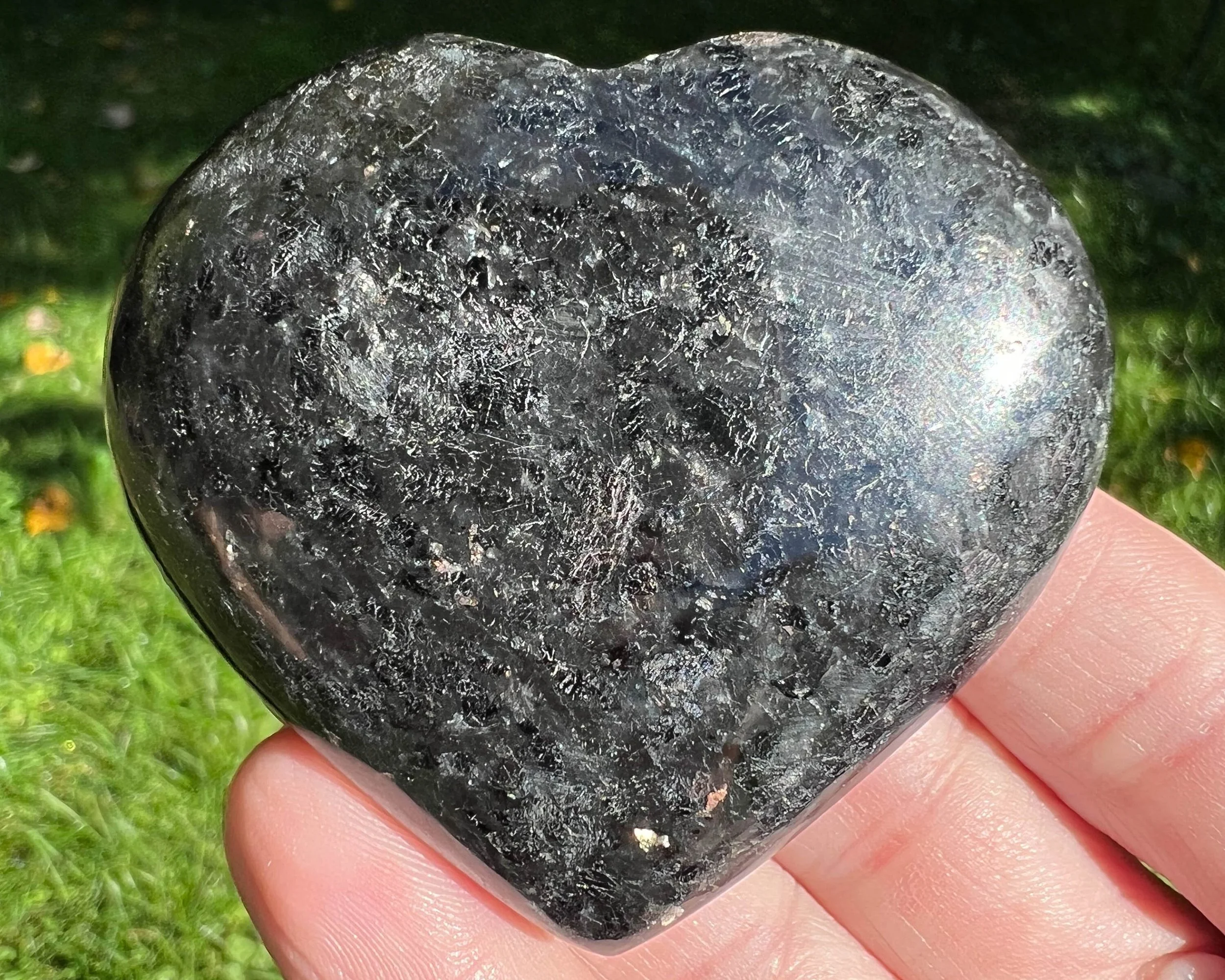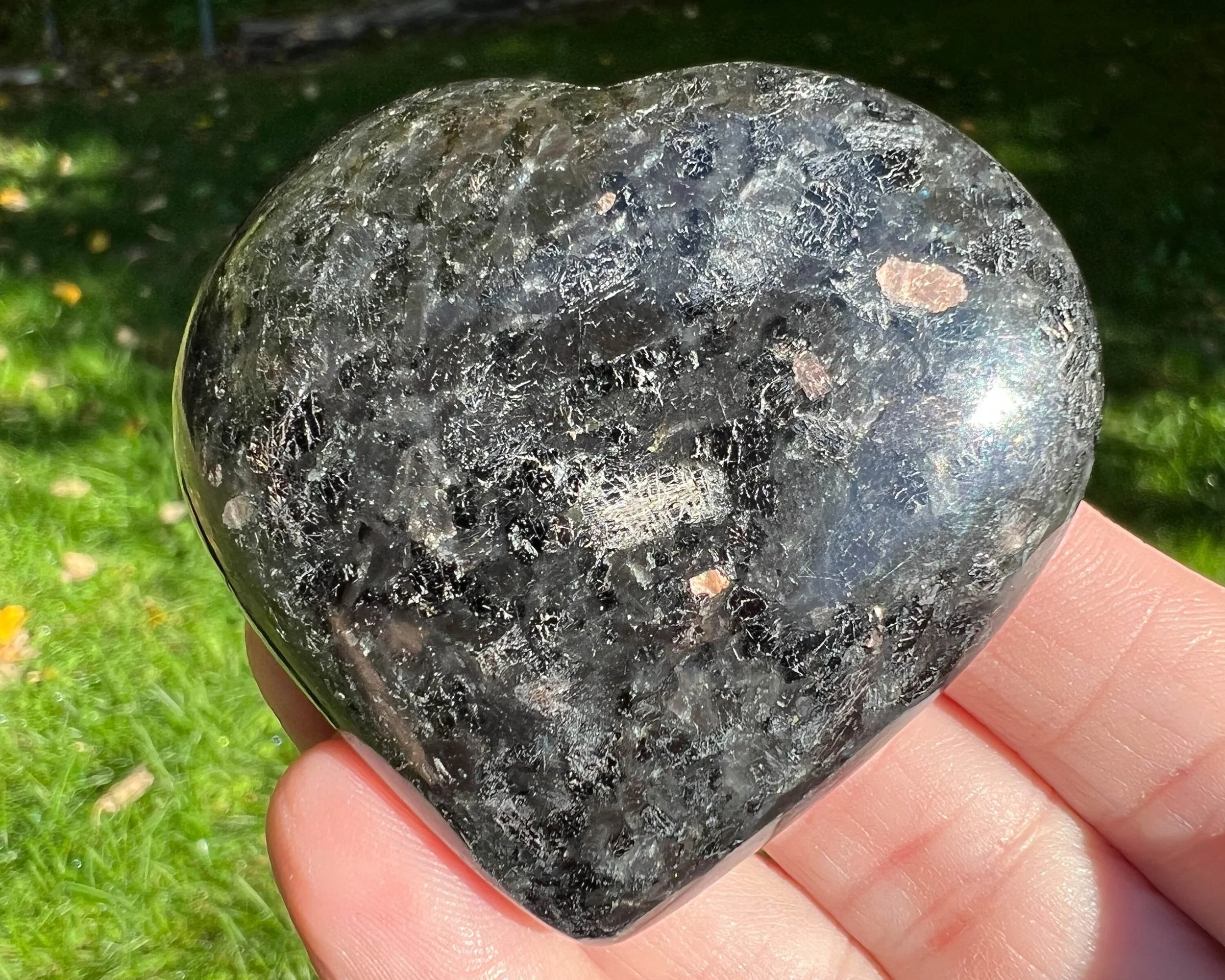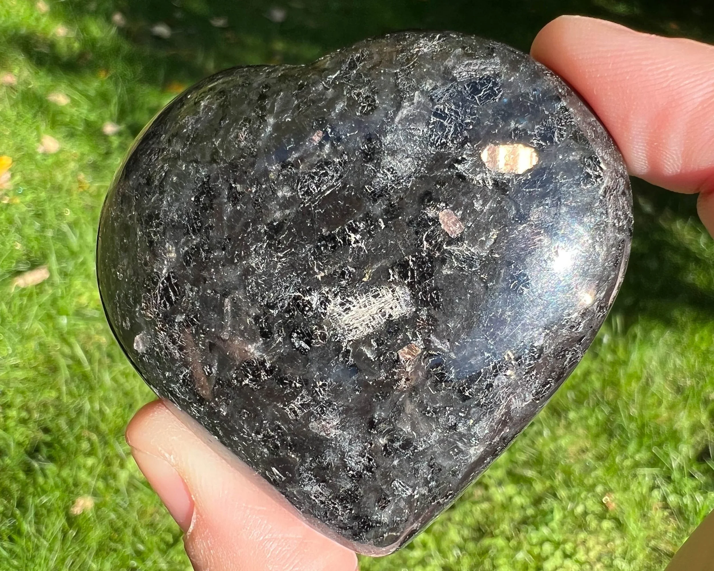 2.3" Nuummite Heart, Bronzite Gabbro Heart, Norite, Coppernite, Galaxy Granite, Nuumite Palm Stone, Crystal for Protection, Gift for Her #1