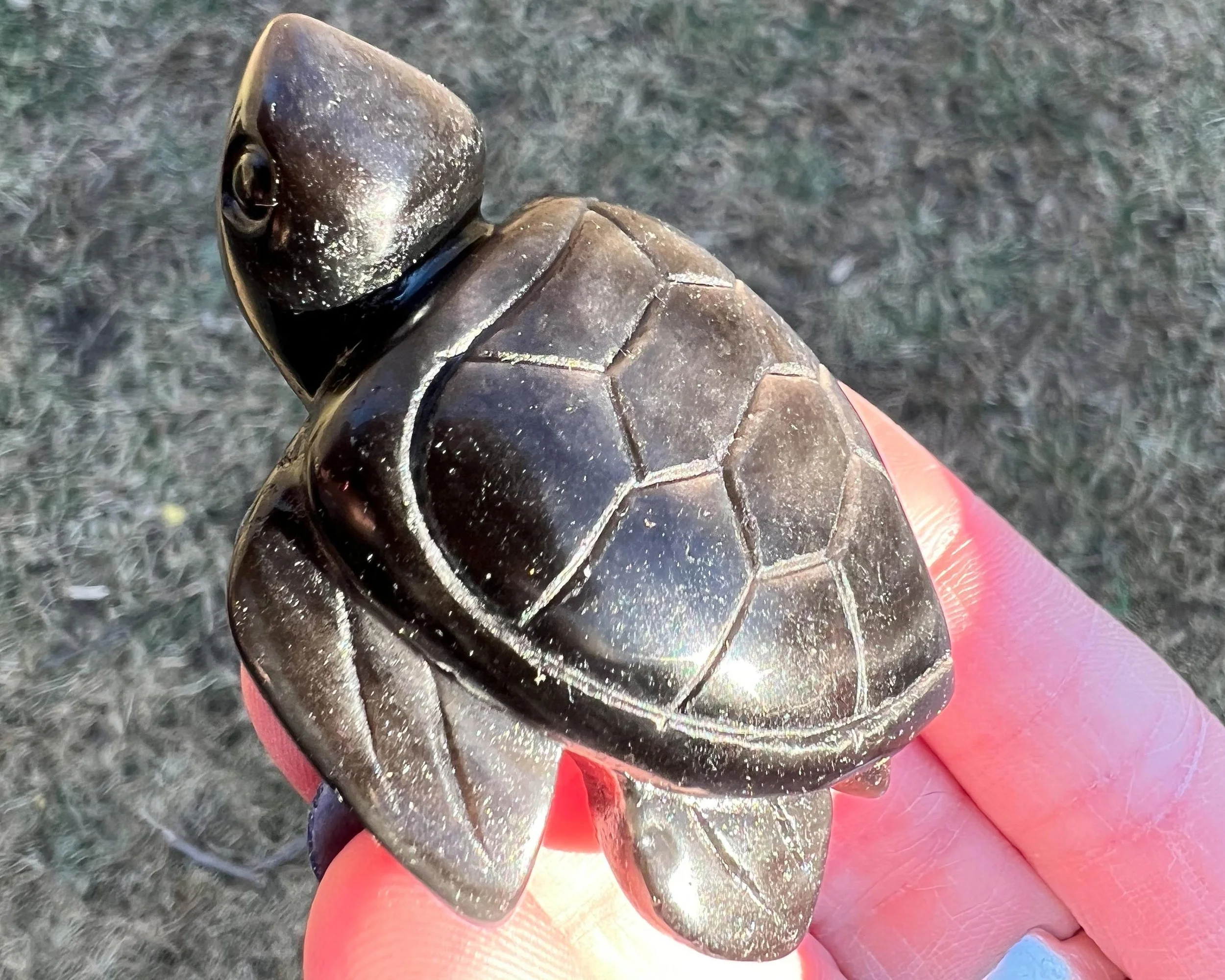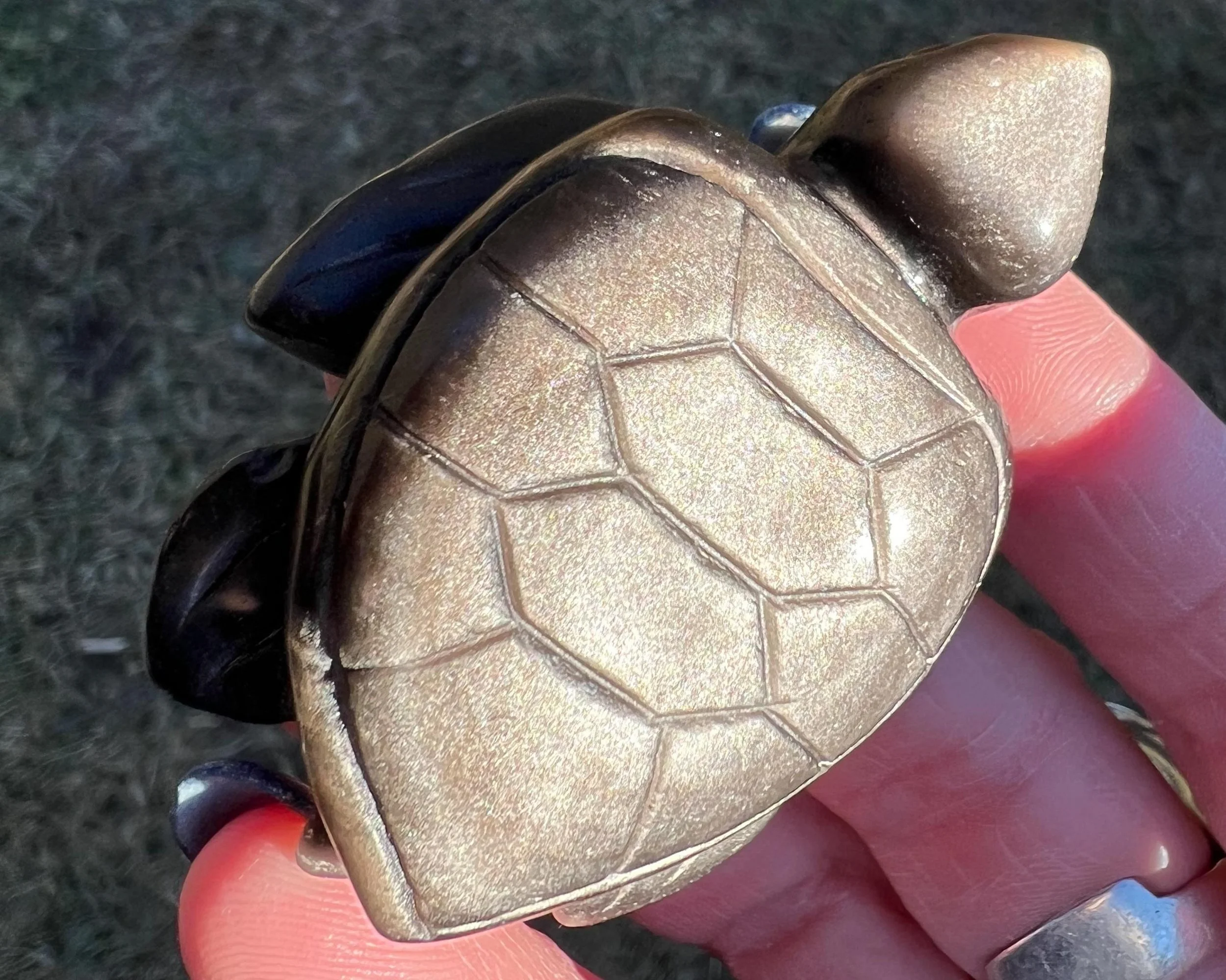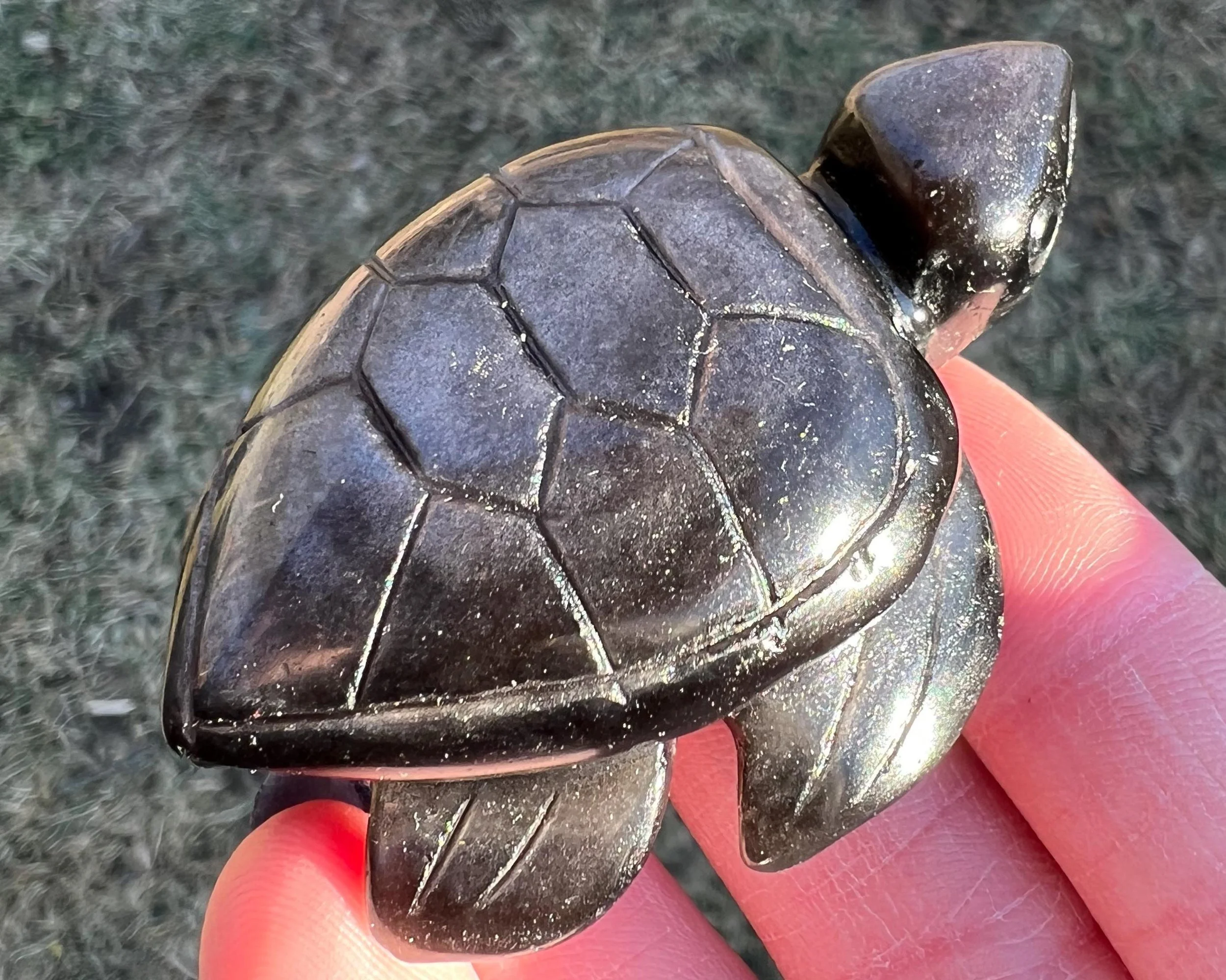 2.3" Silver Sheen Obsidian Sea Turtle Carving from Mexico, Gemstone Figurine, Birthday Gift for Mom, for Wife, for Daughter, Decor #1
