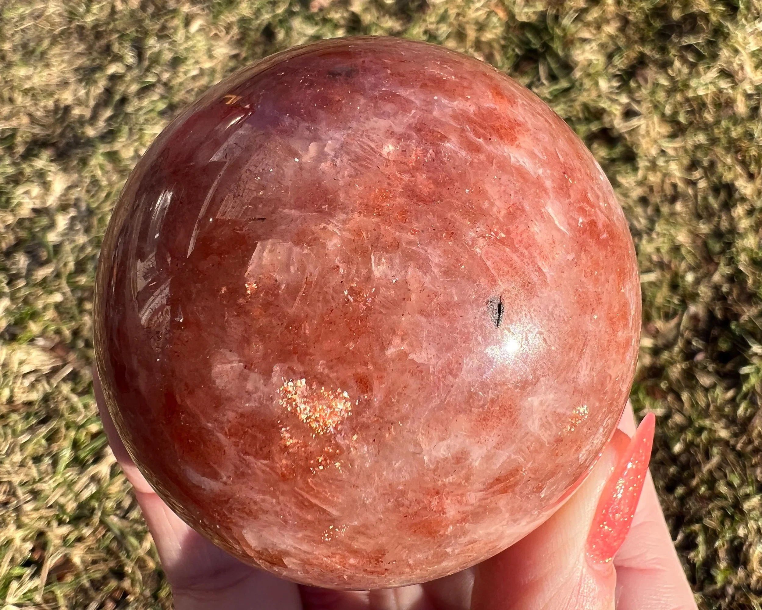 2.4" Confetti Sunstone Sphere with Blue Flash, Chatoyant Gemstone, Sparkly Orange Crystal Ball, Birthday Gift for Her, Stone for Joy #2