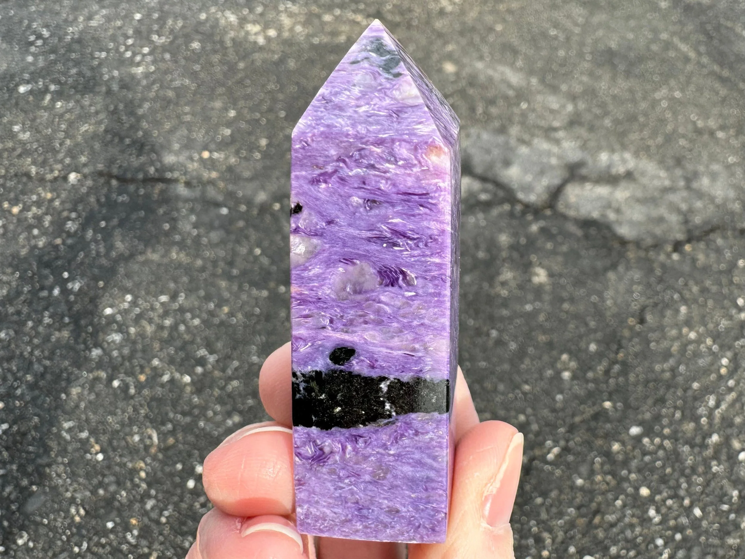 2.5" Charoite Tower #6 Chatoyant Purple Black Gemstone Decor, Healing Crystal Point, Witchy Gift for Her, for Sagittarius, Third Eye Chakra