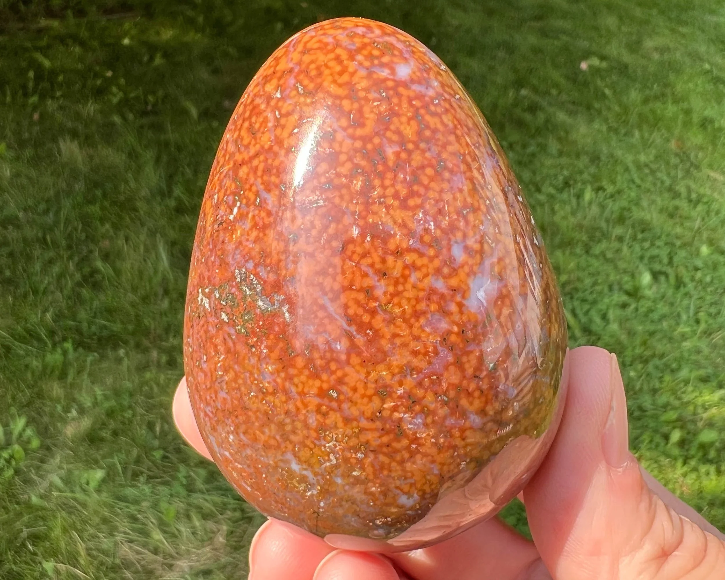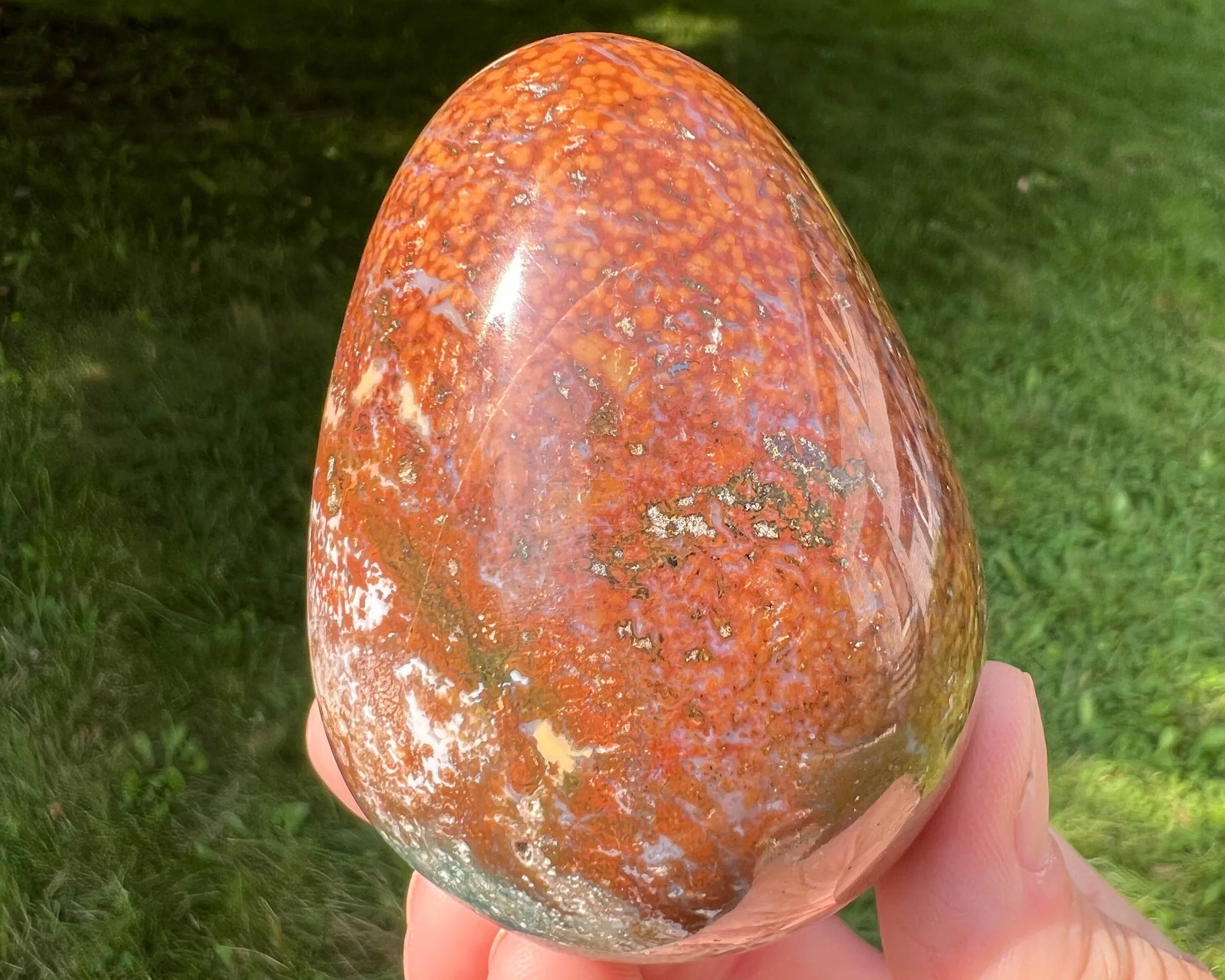 2.6 Inch Ocean Jasper Crystal Egg, Orbicular Sea Stone, Red Orange Green Gemstone