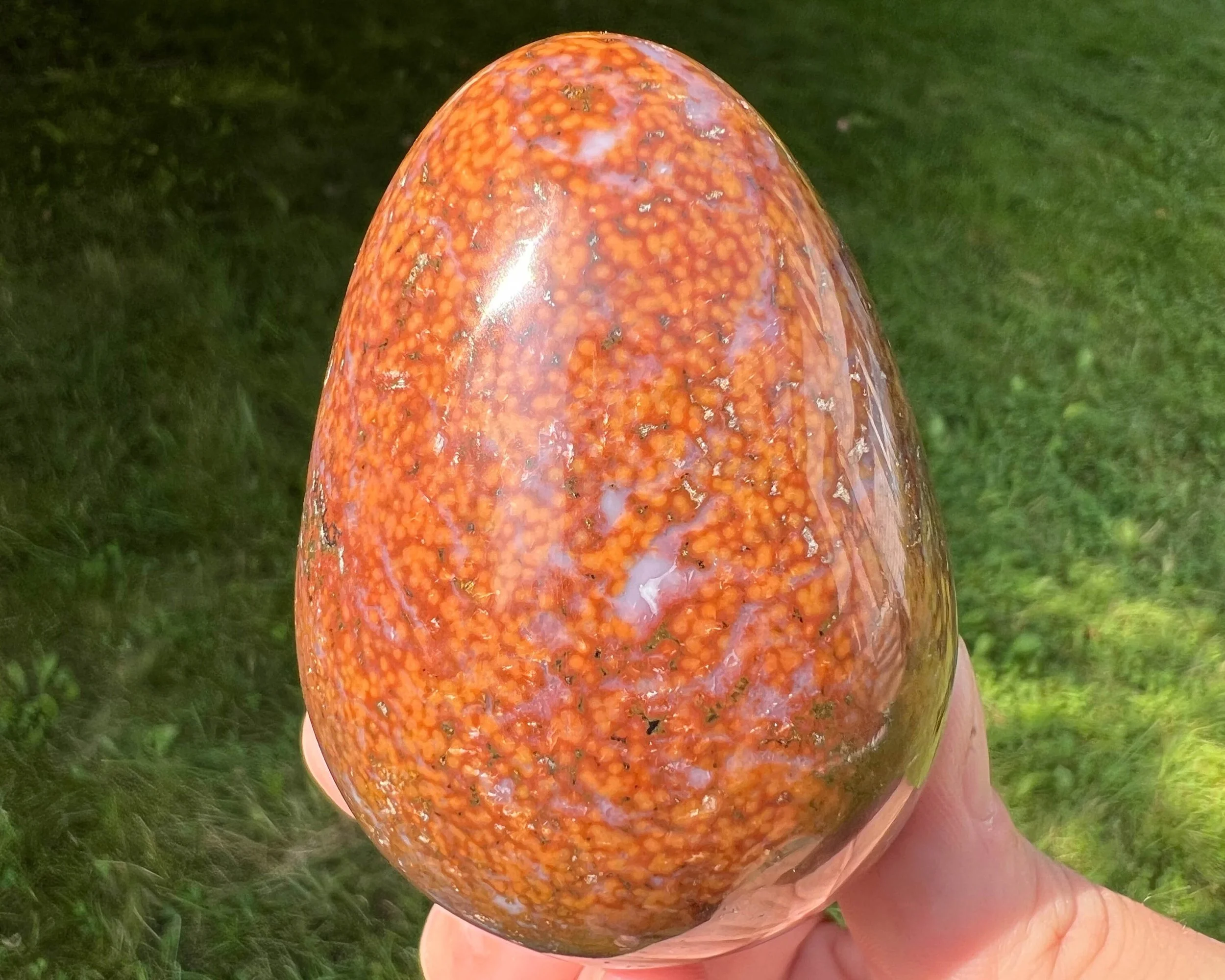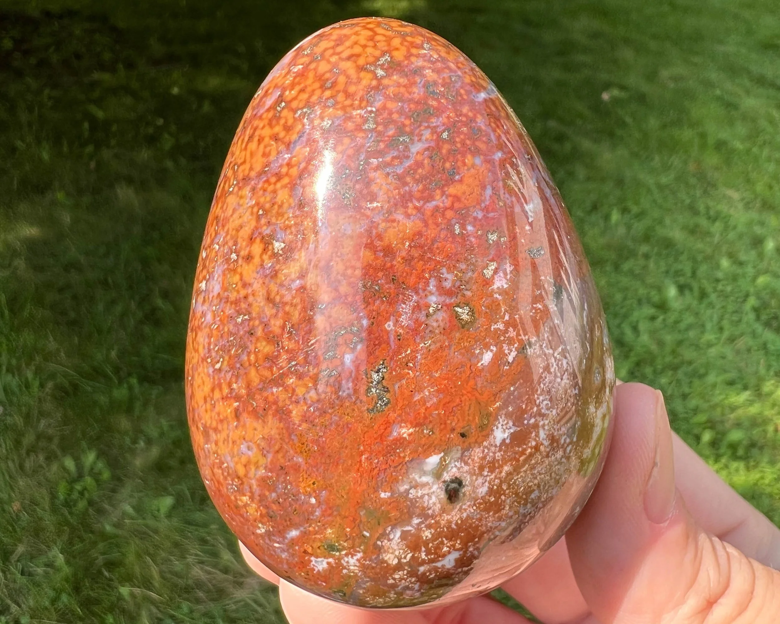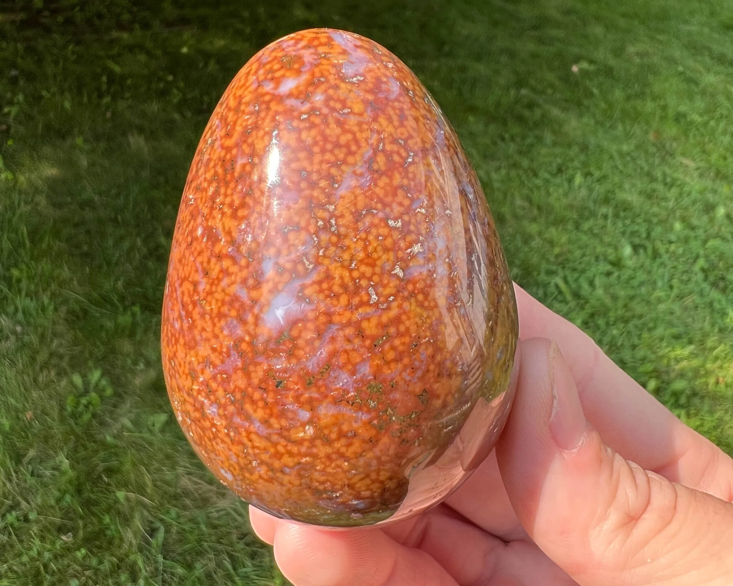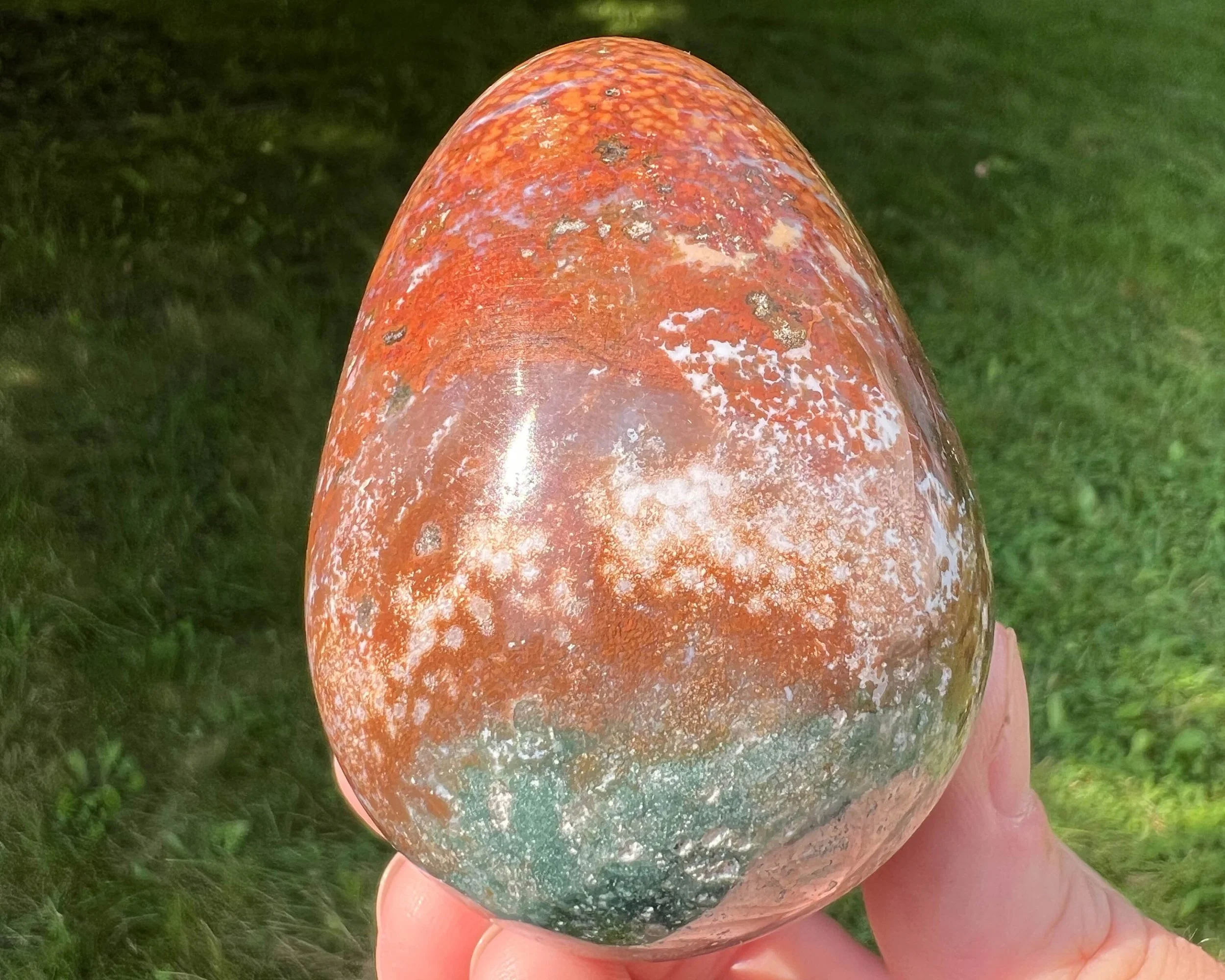2.6" Ocean Jasper Egg, Crystal Egg, Polished Orbicular Sea Stone, Red Orange Green, Gemstone Decor for Home, Gift for Her, for Bird Lover