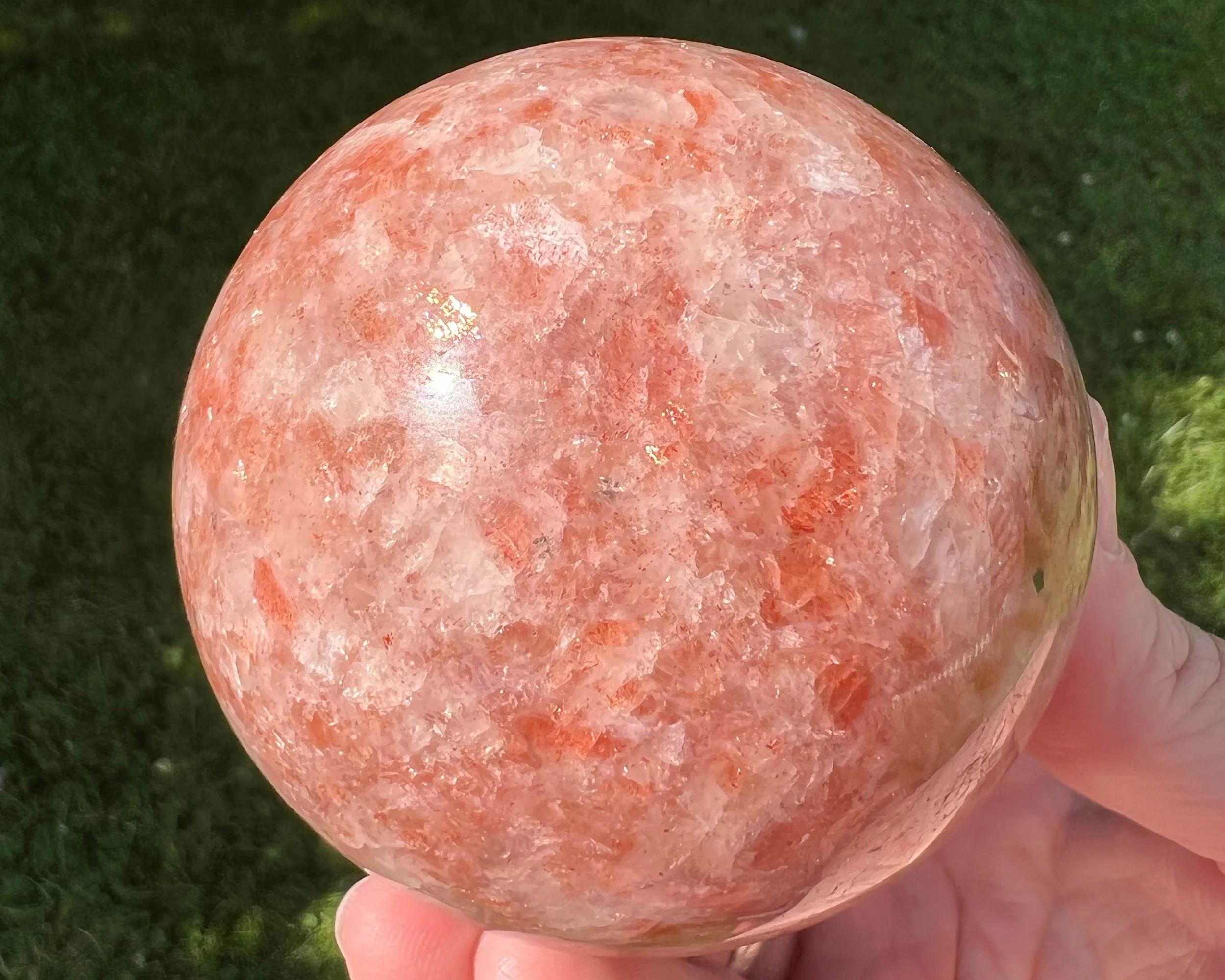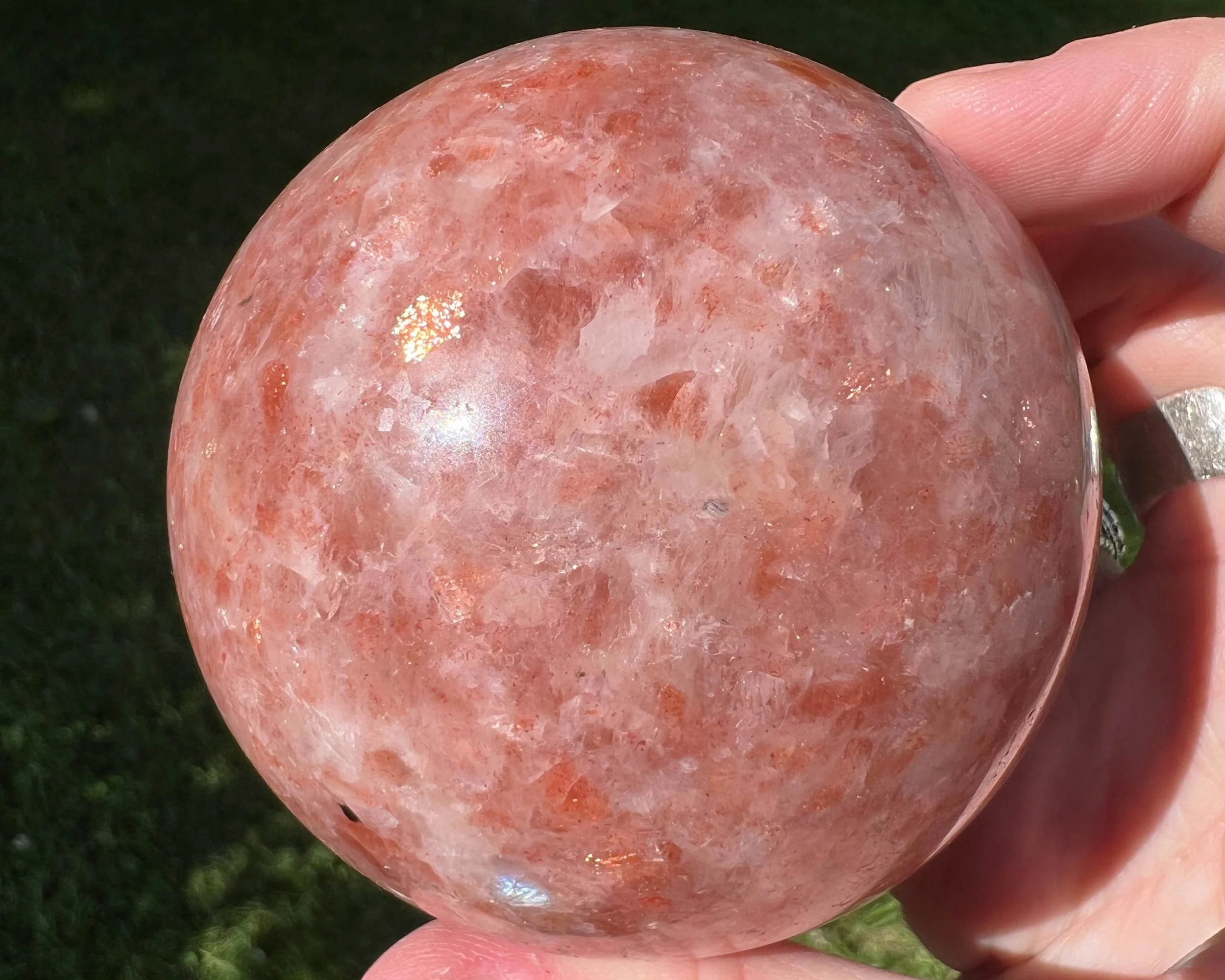 2.8" Confetti Sunstone Sphere with Blue Flash, Sunstone Moonstone, Sparkly Crystal Ball, Home Decor, Adularescence Aventurescent Schiller #3