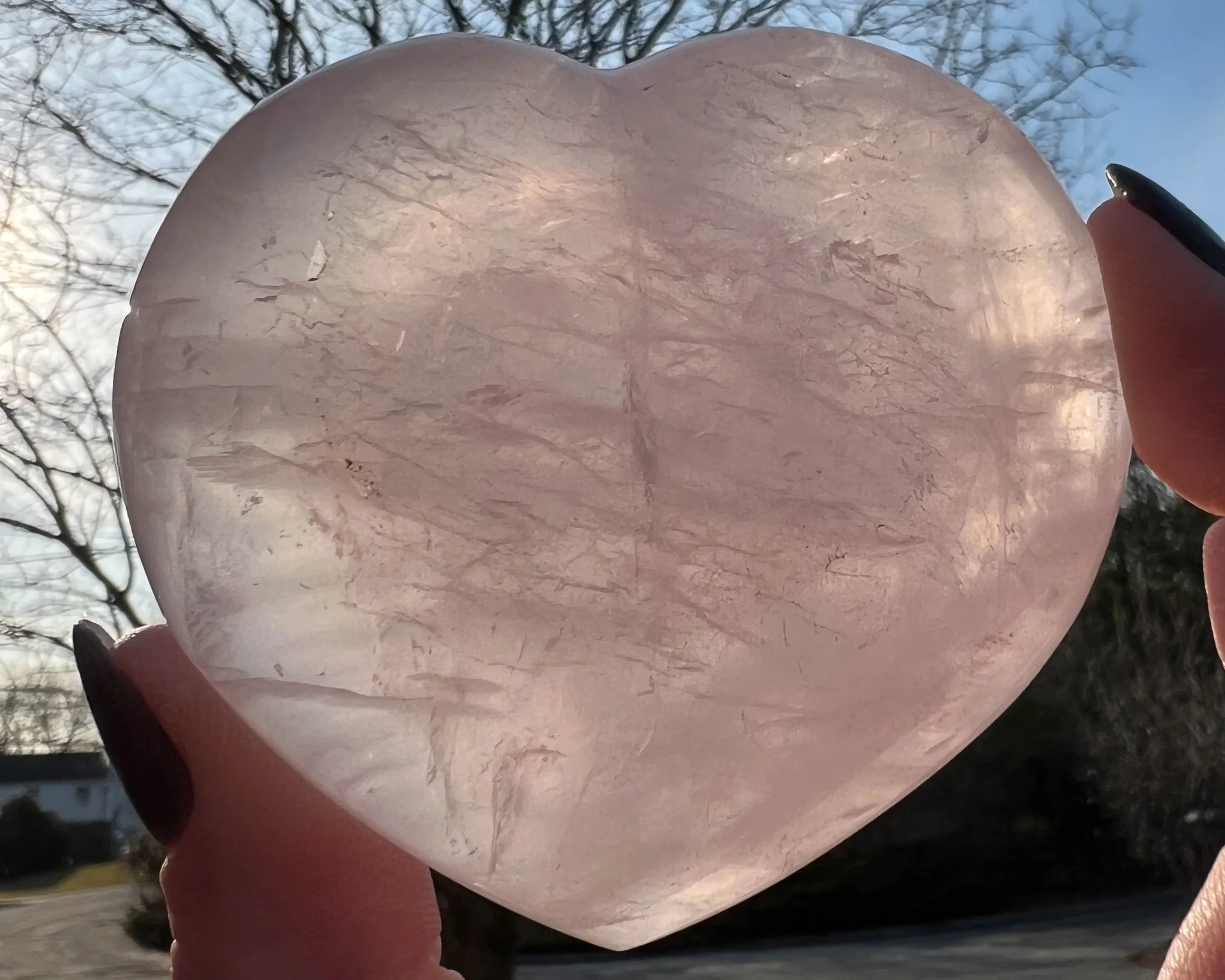 2.8" Star Rose Quartz Heart, Crystal Heart Gemstone Heart with Asterism, Pink Quartz with Star and Rainbows, Girasol Quartz, Gift for Her #3