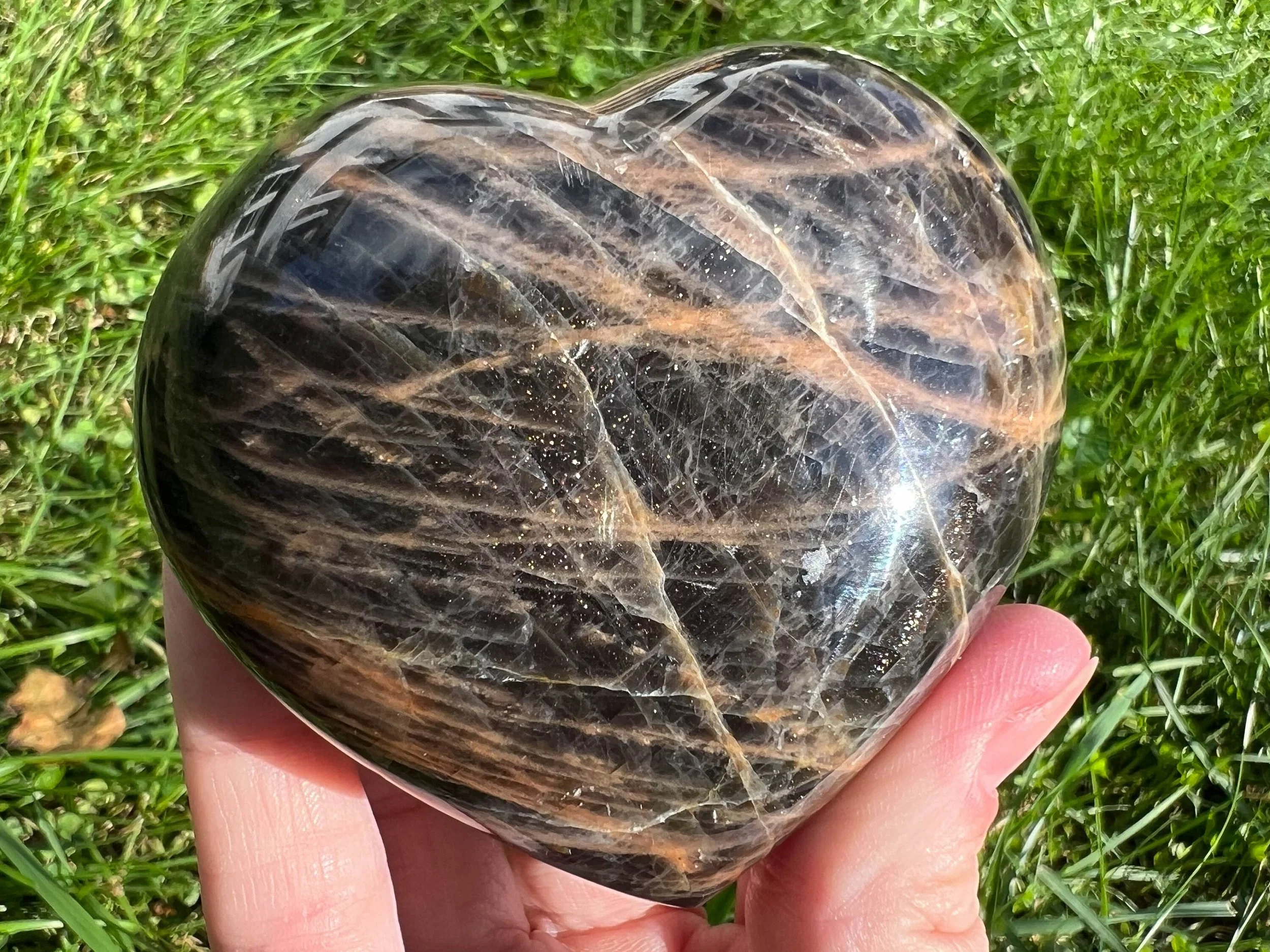 2.9" Black Moonstone Heart #2 Gold Shimmer, Silver Flash, Large Crystal Heart, Gemstone Home Decor Accent, Witchy Gift Idea, Gift for Friend