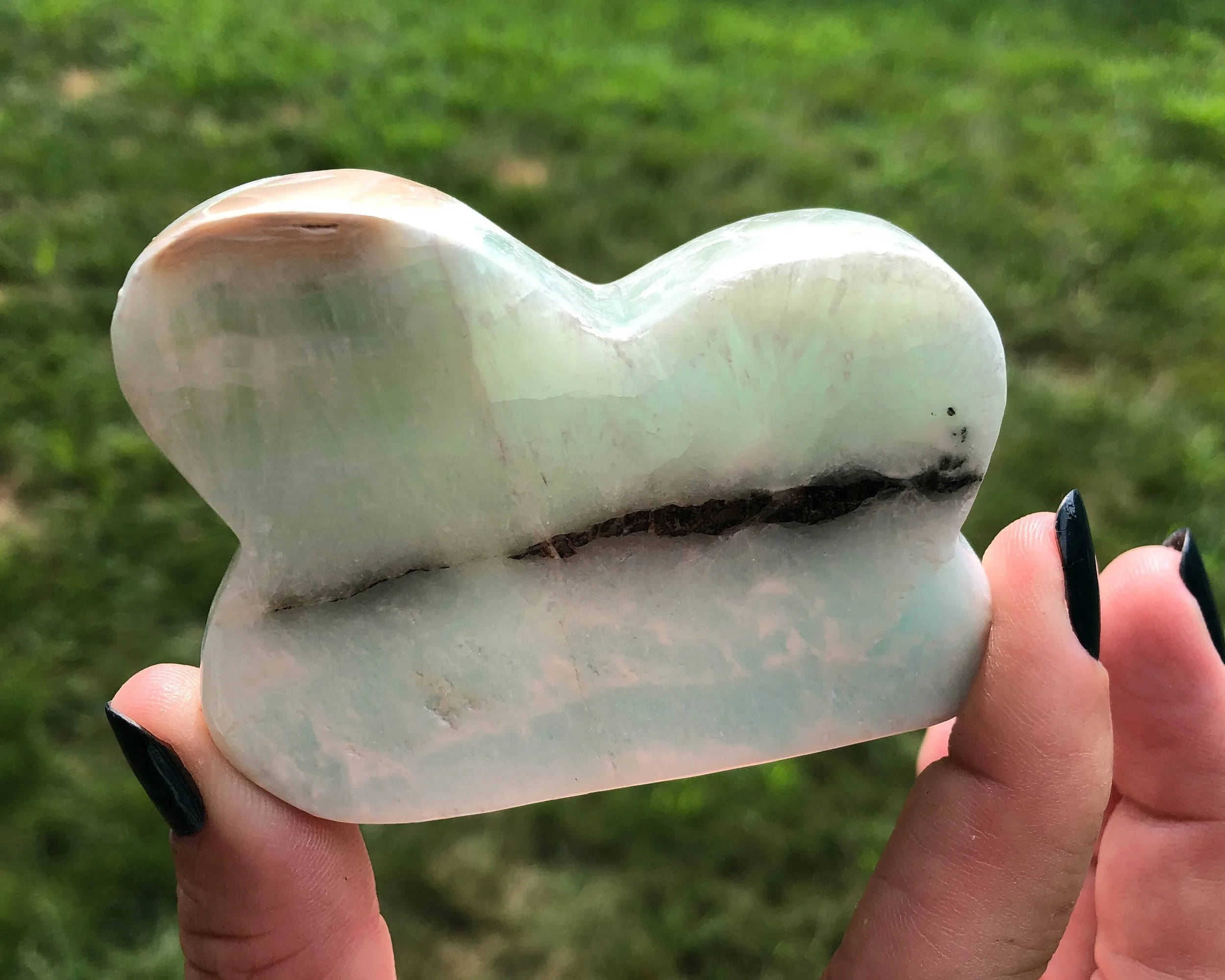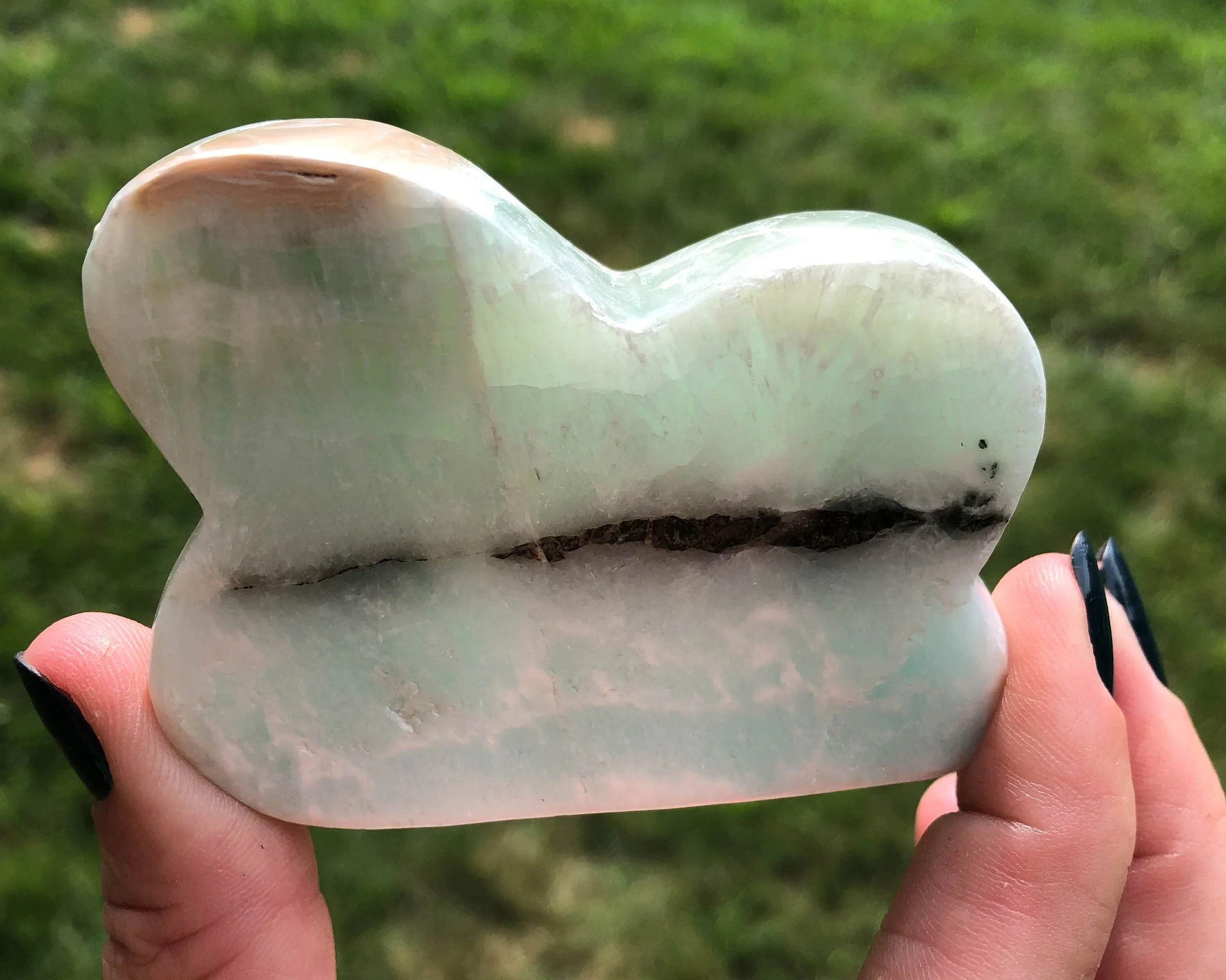This is a sweet cloud carved from beautiful blue Calcite and Aragonite. These have a gorgeous Caribbean blue coloring with swirls of white and sand colored browns.