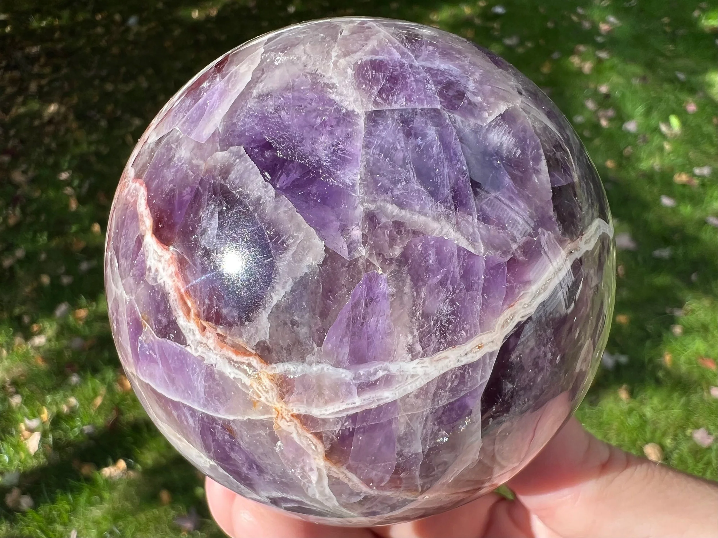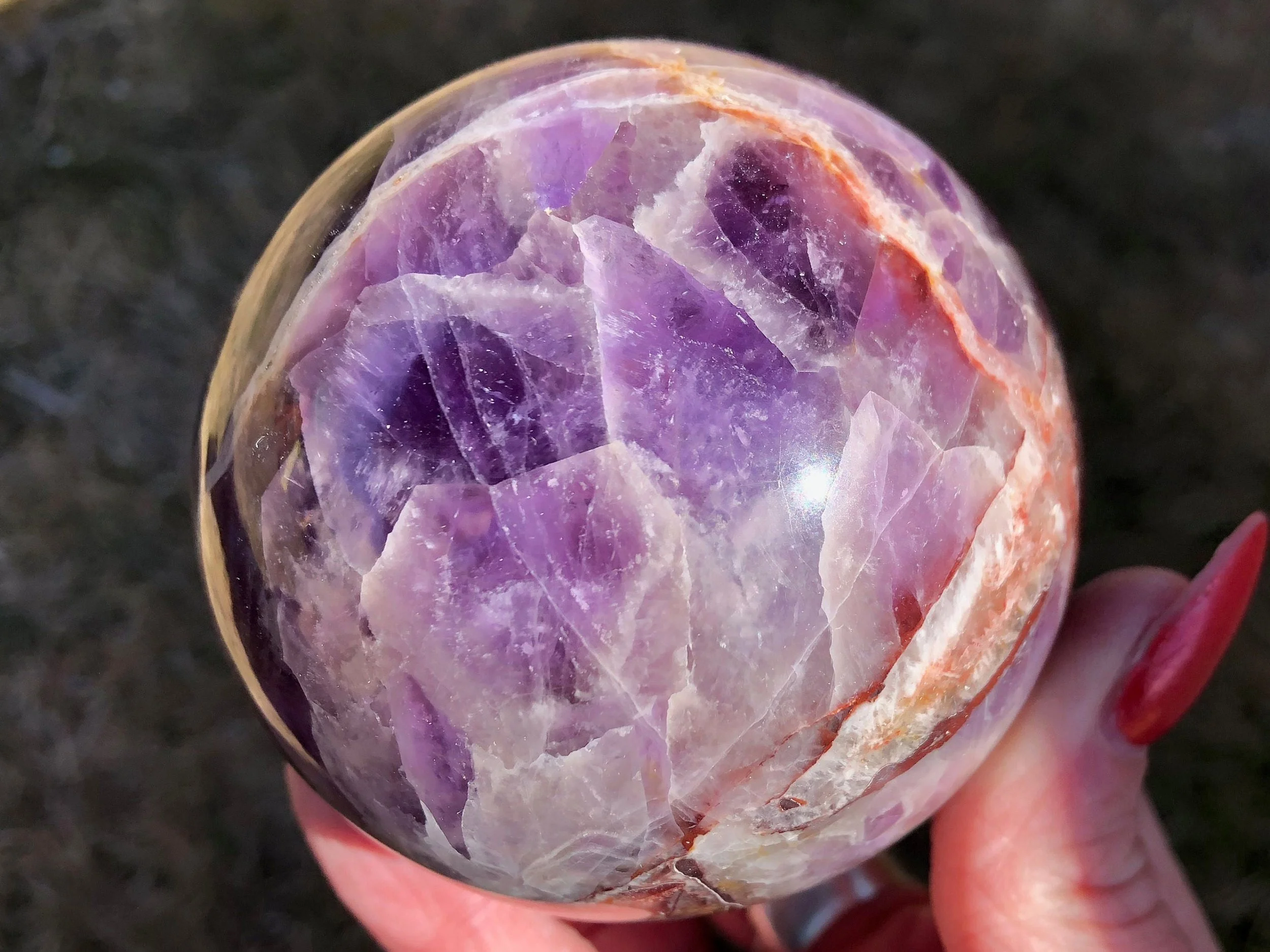 2.9" Chevron Amethyst Sphere with Red Hematite #2 Banded Amethyst Crystal Ball, Agate Quartz Layers, Gemstone Decor Gift for Aquarius Pisces