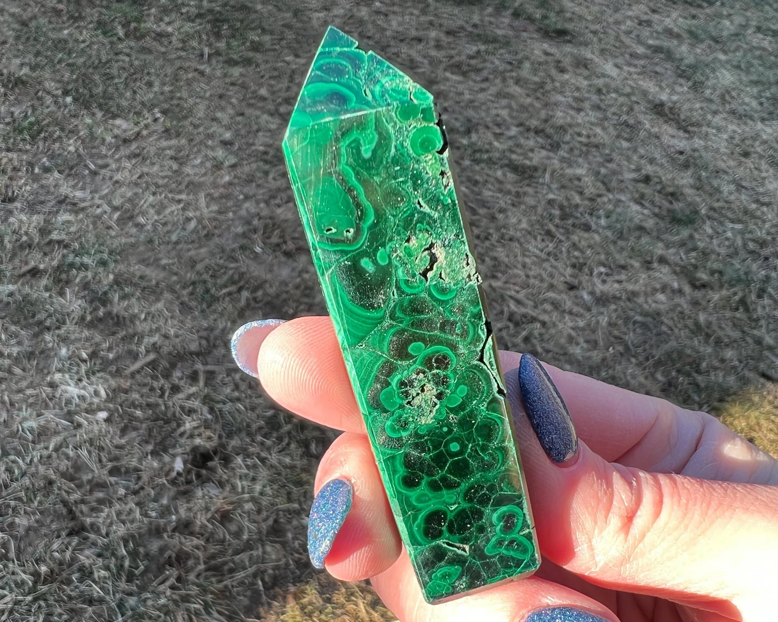 2.9" Malachite Tower, Chatoyant Banded Green Crystal Point, Sparkly Druzy, Witchy Gift for Her, Home Decor, Birthday Gift for Best Friend #1