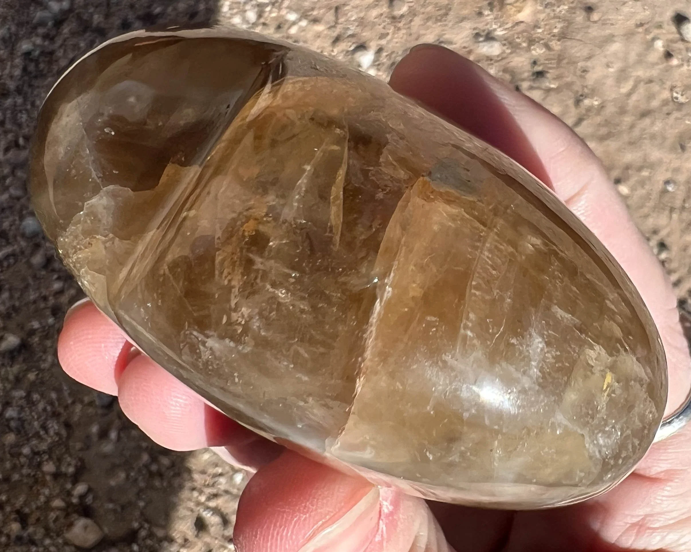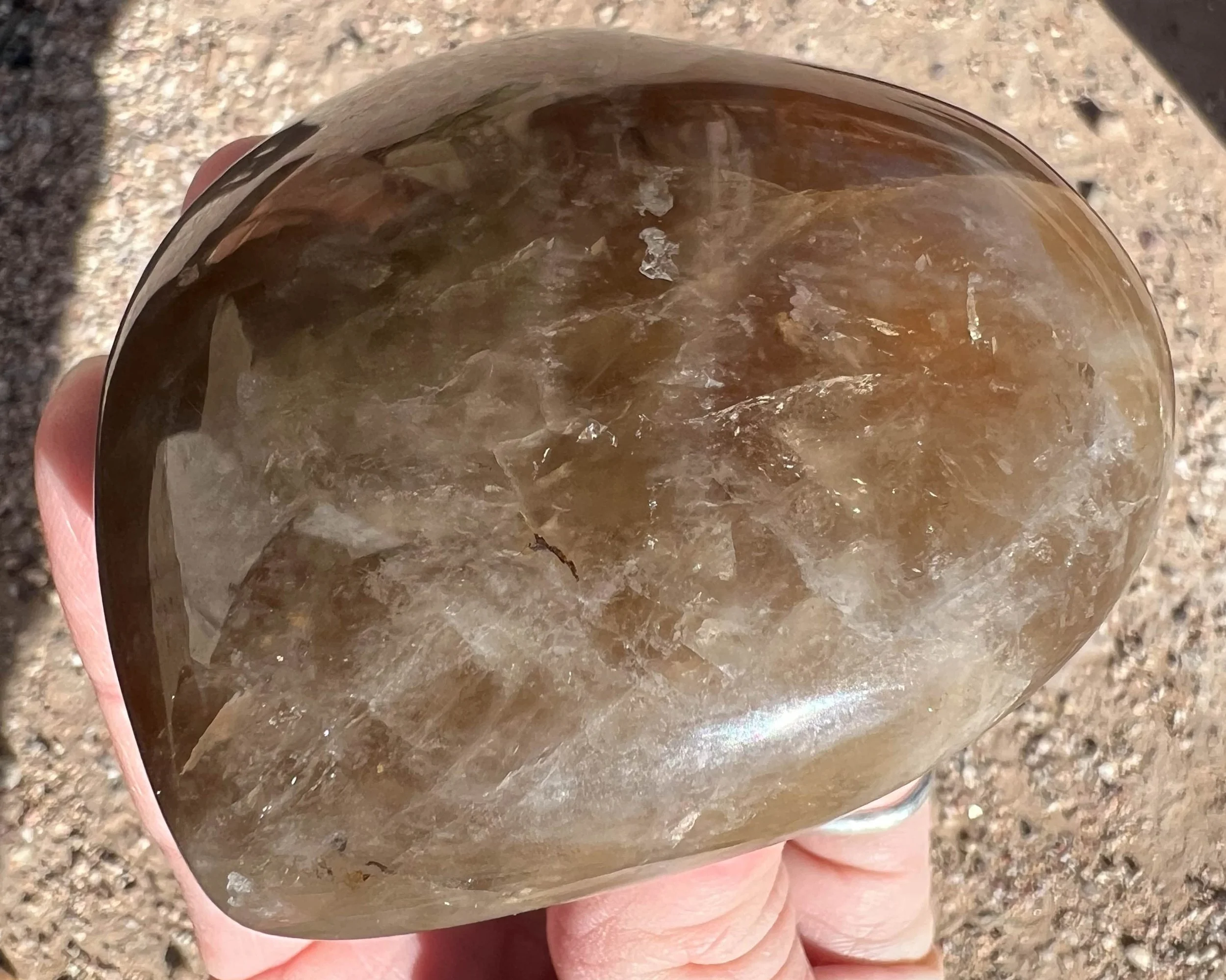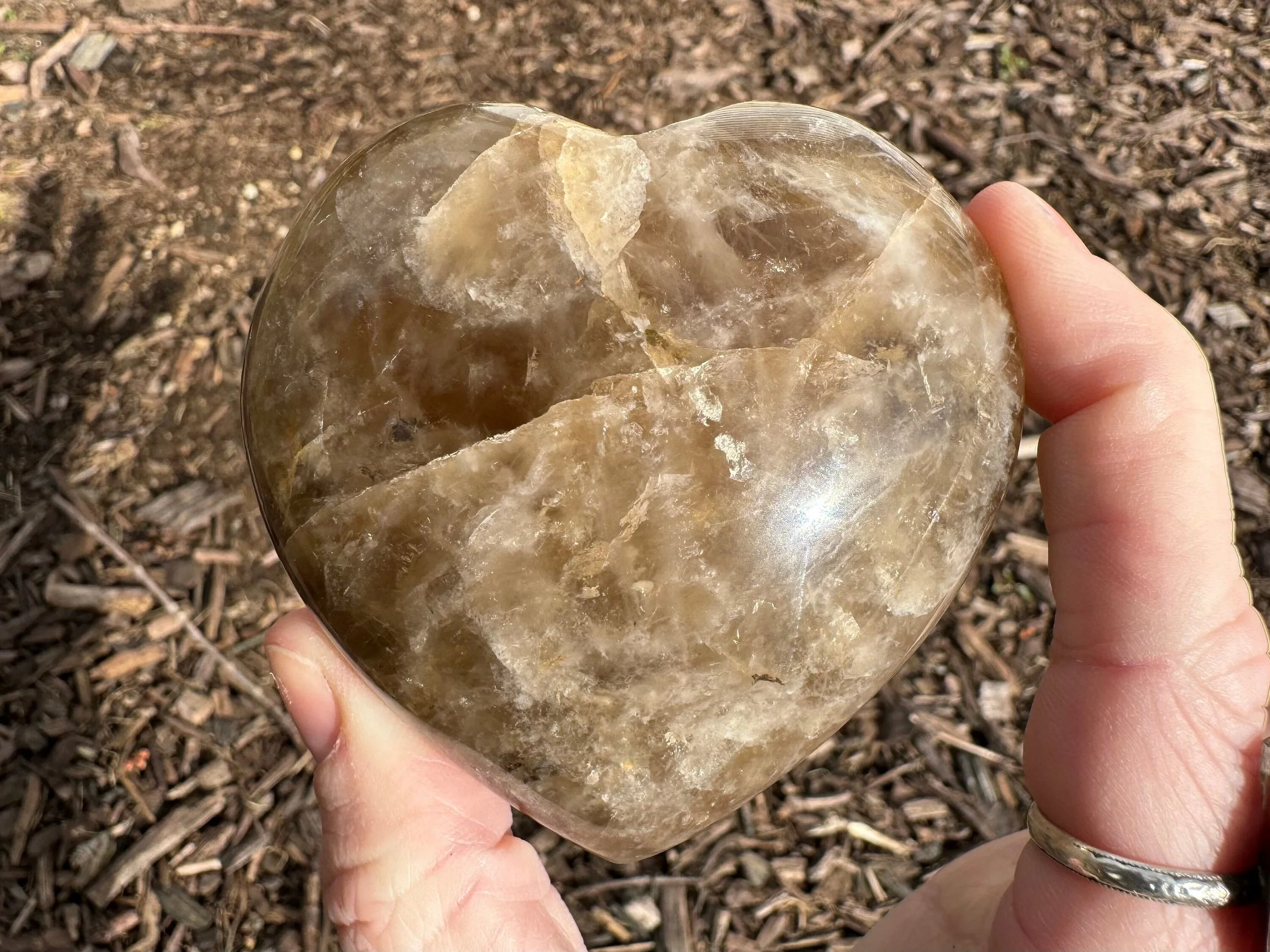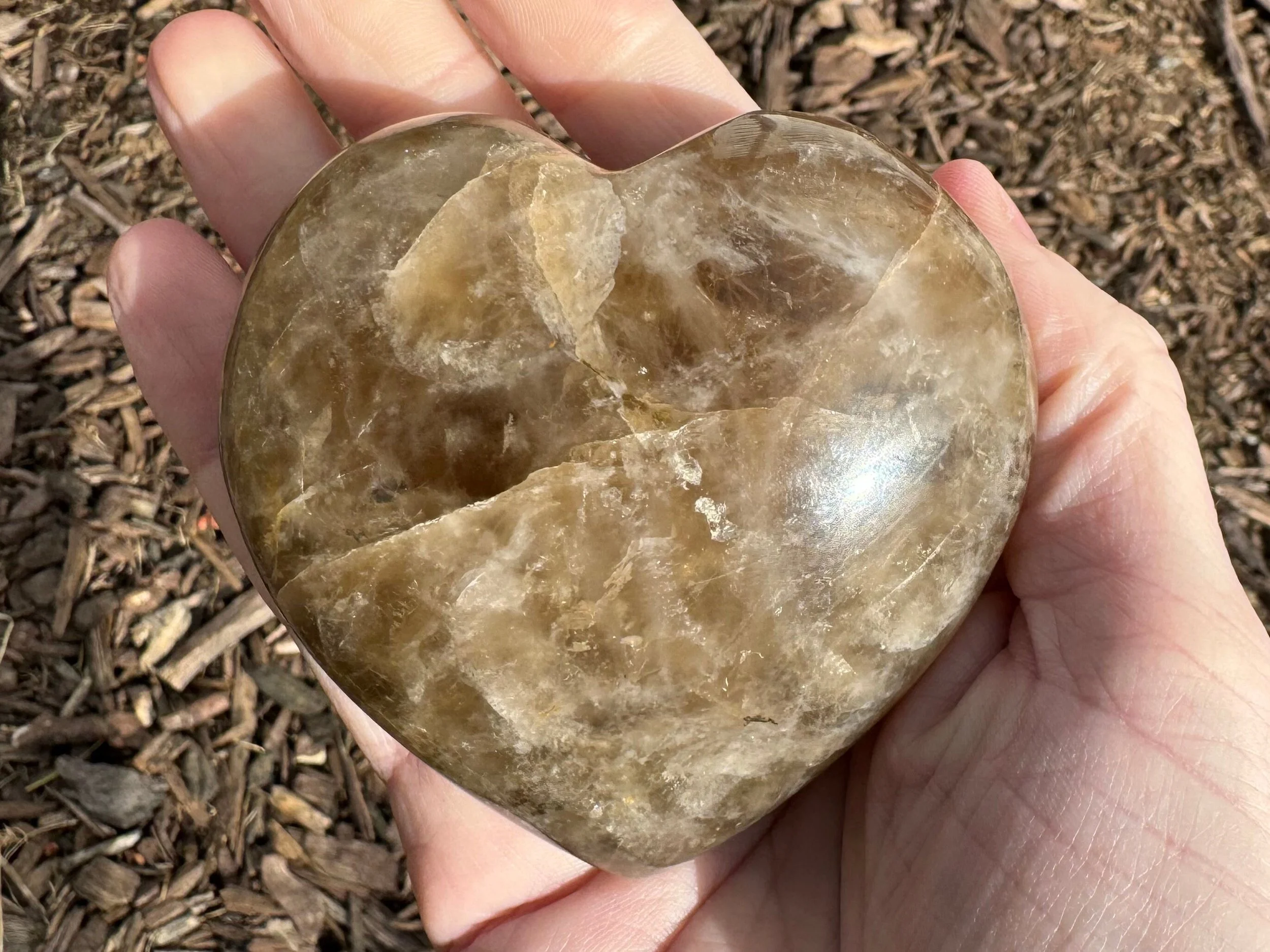 This is a gorgeous Smoky Citrine heart. It is natural Citrine, a dark yellow similar to a Smoky Quartz. It has some little rainbows in it too.