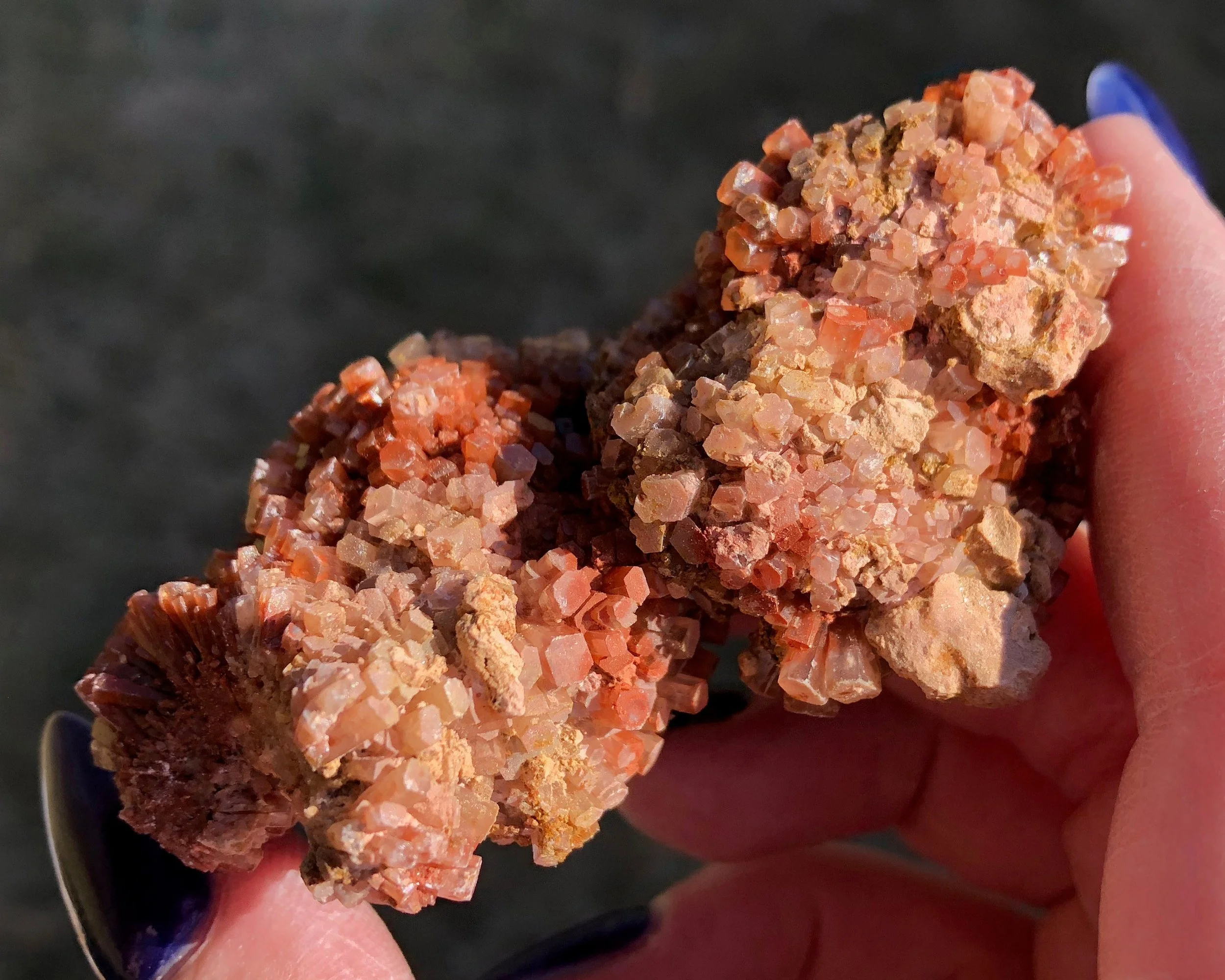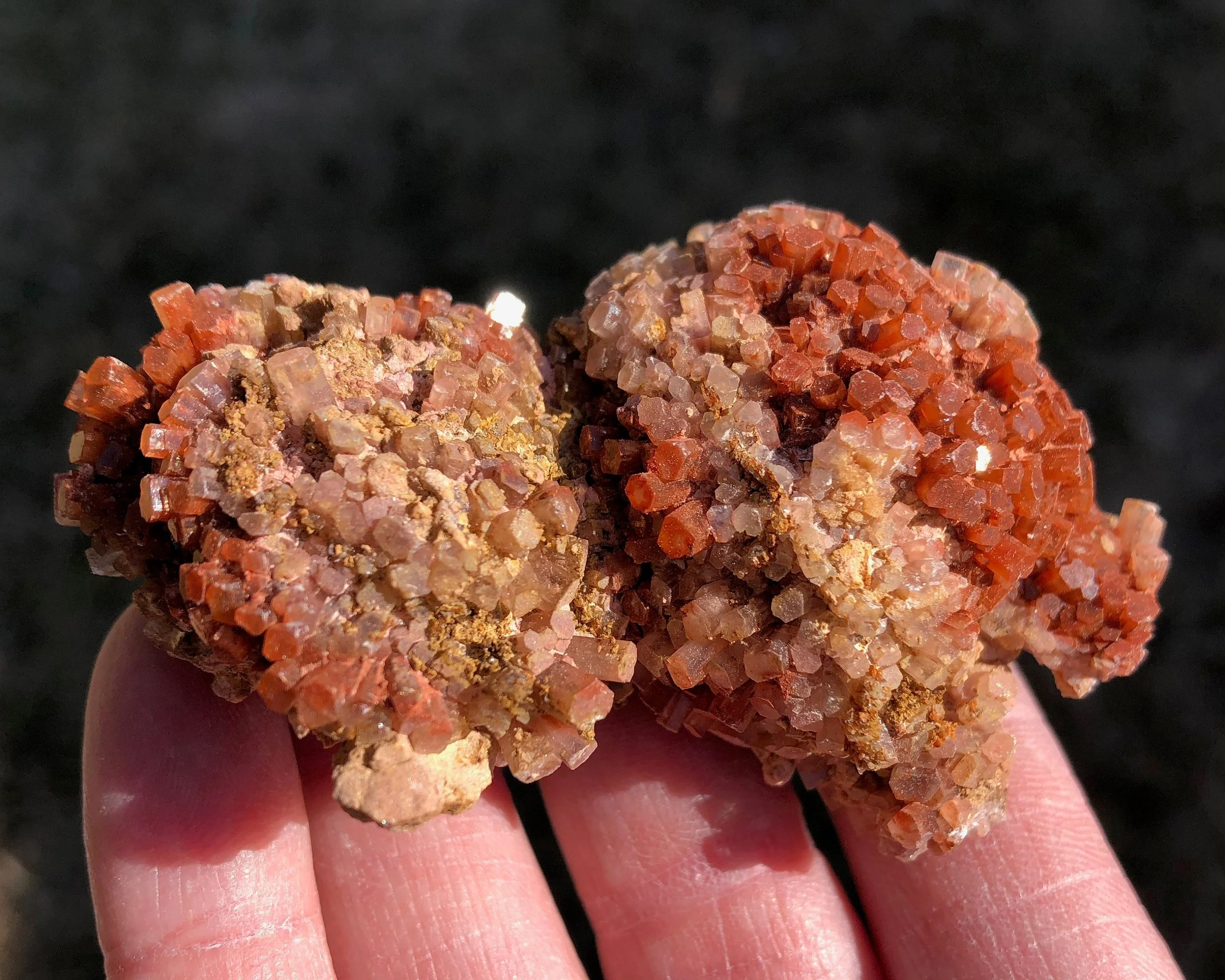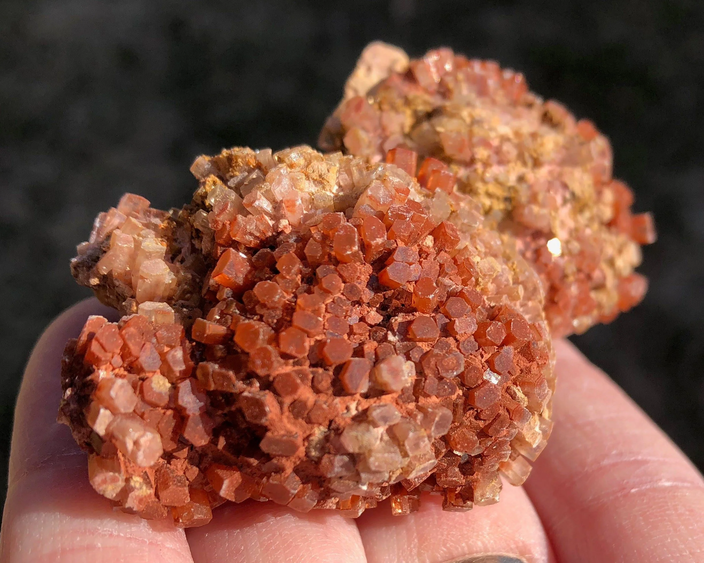 This is a beautiful, bicolor Aragonite druzy cluster from Morocco. It has nice luster, a warm reddish orange coloring mixed with clear/white crystals and the smaller crystals make it look extra sparkly! This one is in really great shape and makes for an excellent piece for your collection or display!