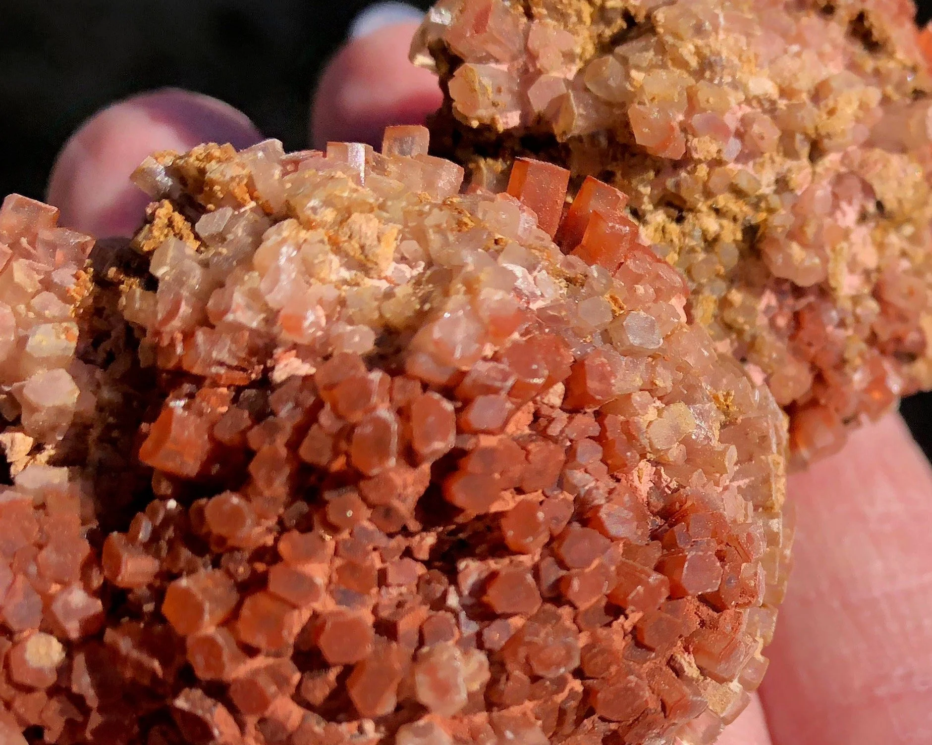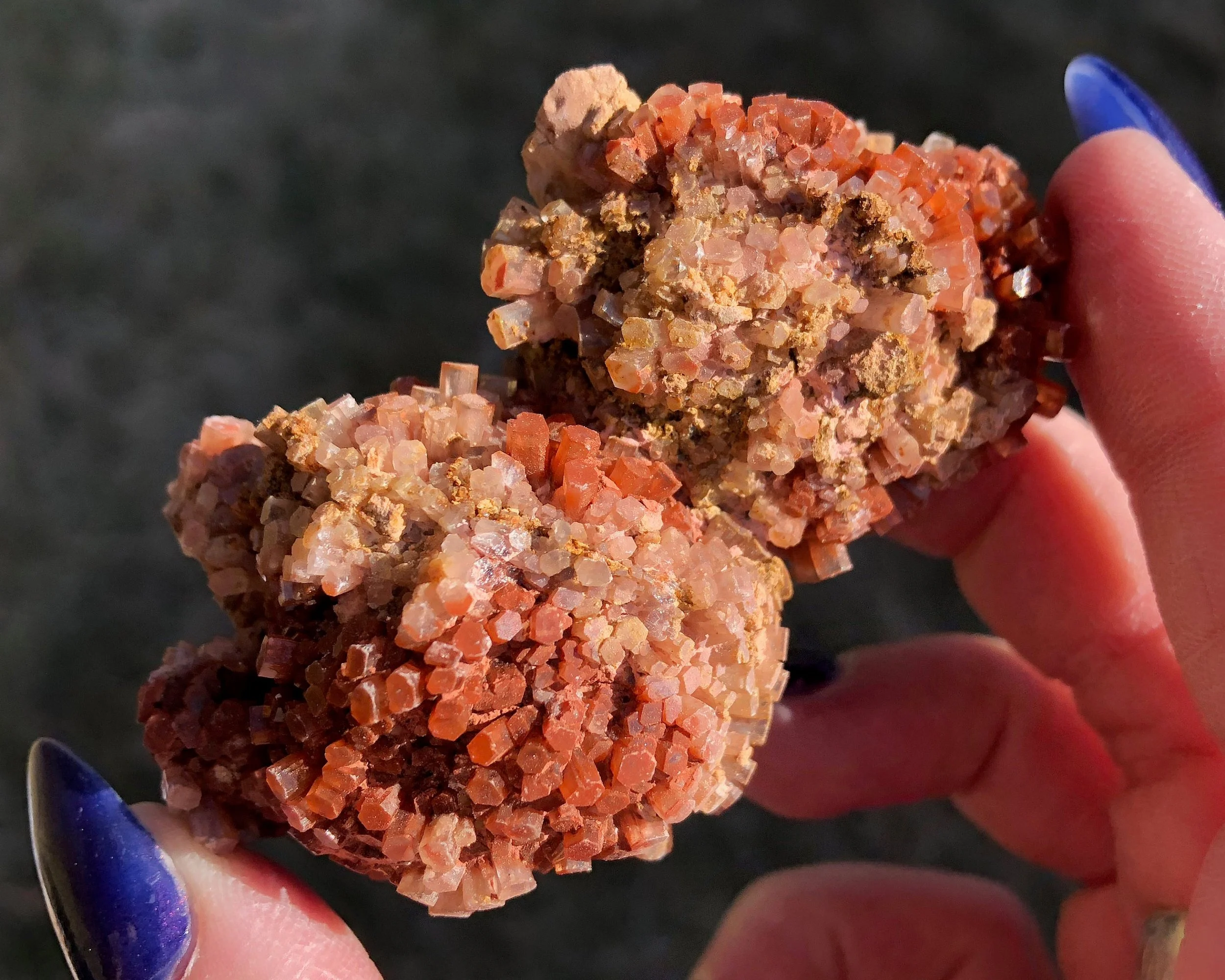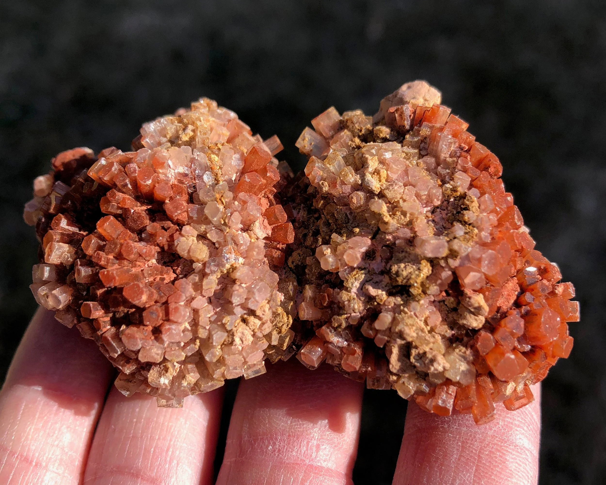 This is a beautiful, bicolor Aragonite druzy cluster from Morocco. It has nice luster, a warm reddish orange coloring mixed with clear/white crystals and the smaller crystals make it look extra sparkly! This one is in really great shape and makes for an excellent piece for your collection or display!