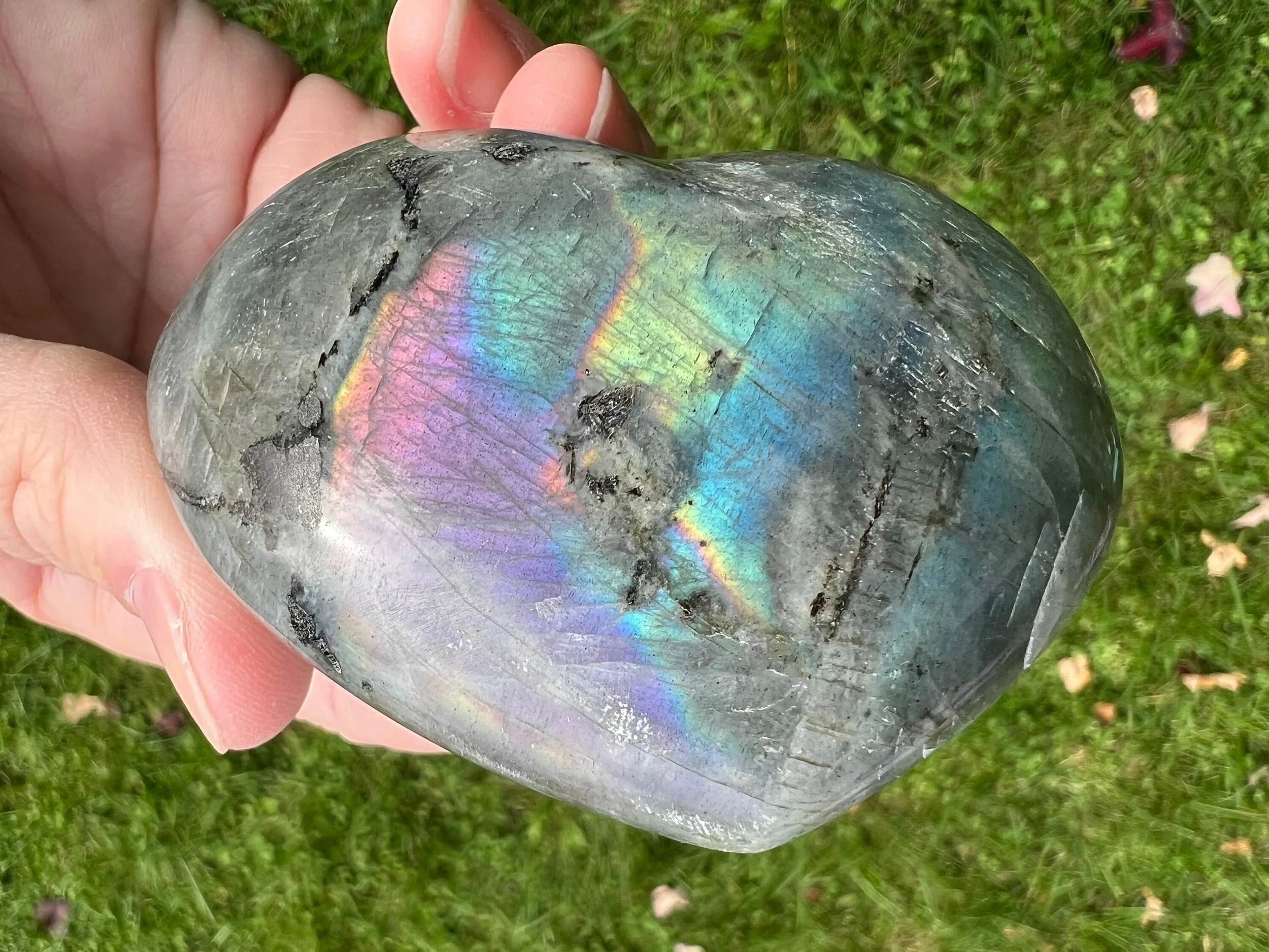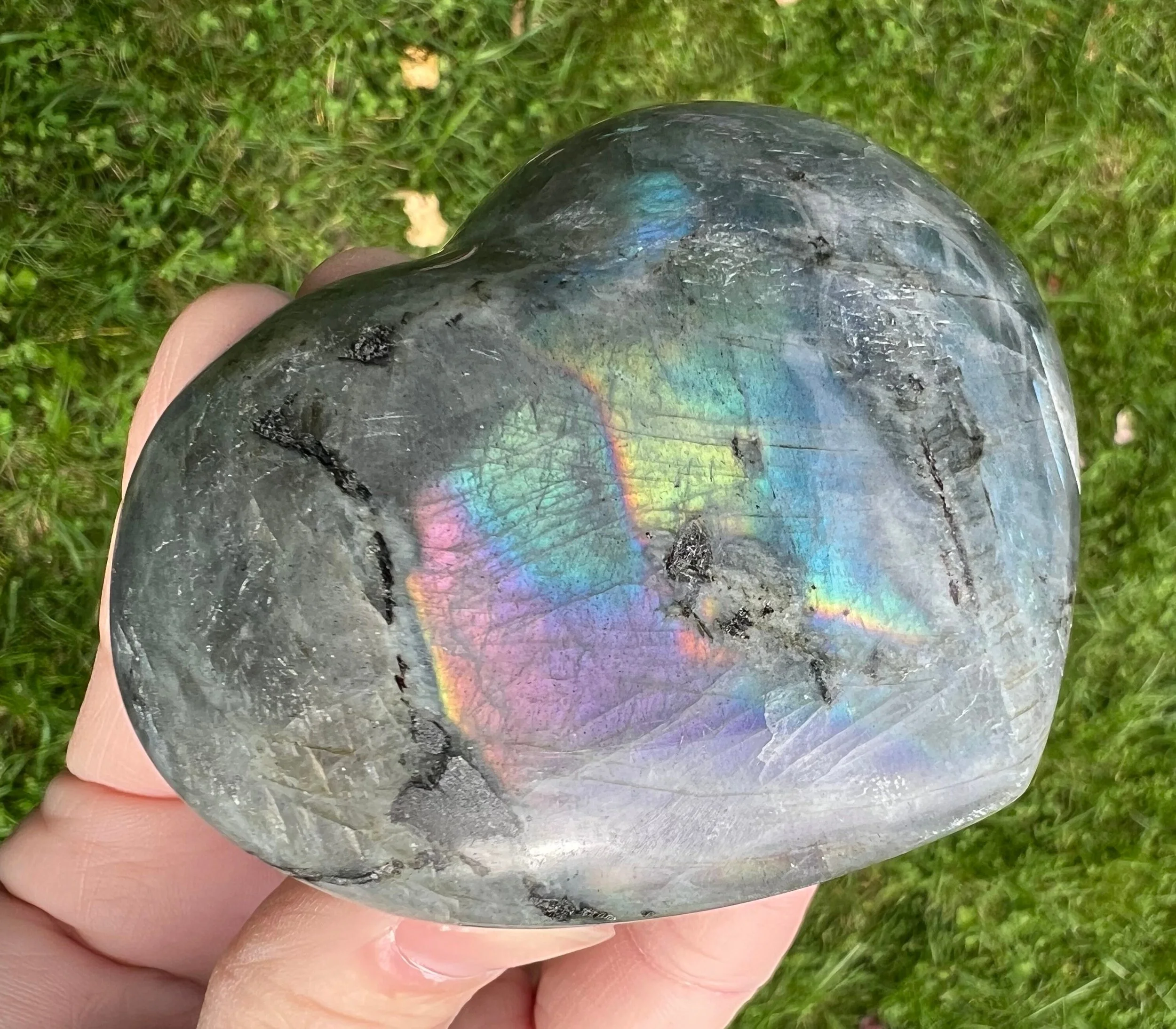 3.1" Labradorite Heart #3 Flashy Rainbow Labradorite, Pink Blue Purple Labradorite Crystal, Gemstone Home Decor, Witchy Gift for Her, Him