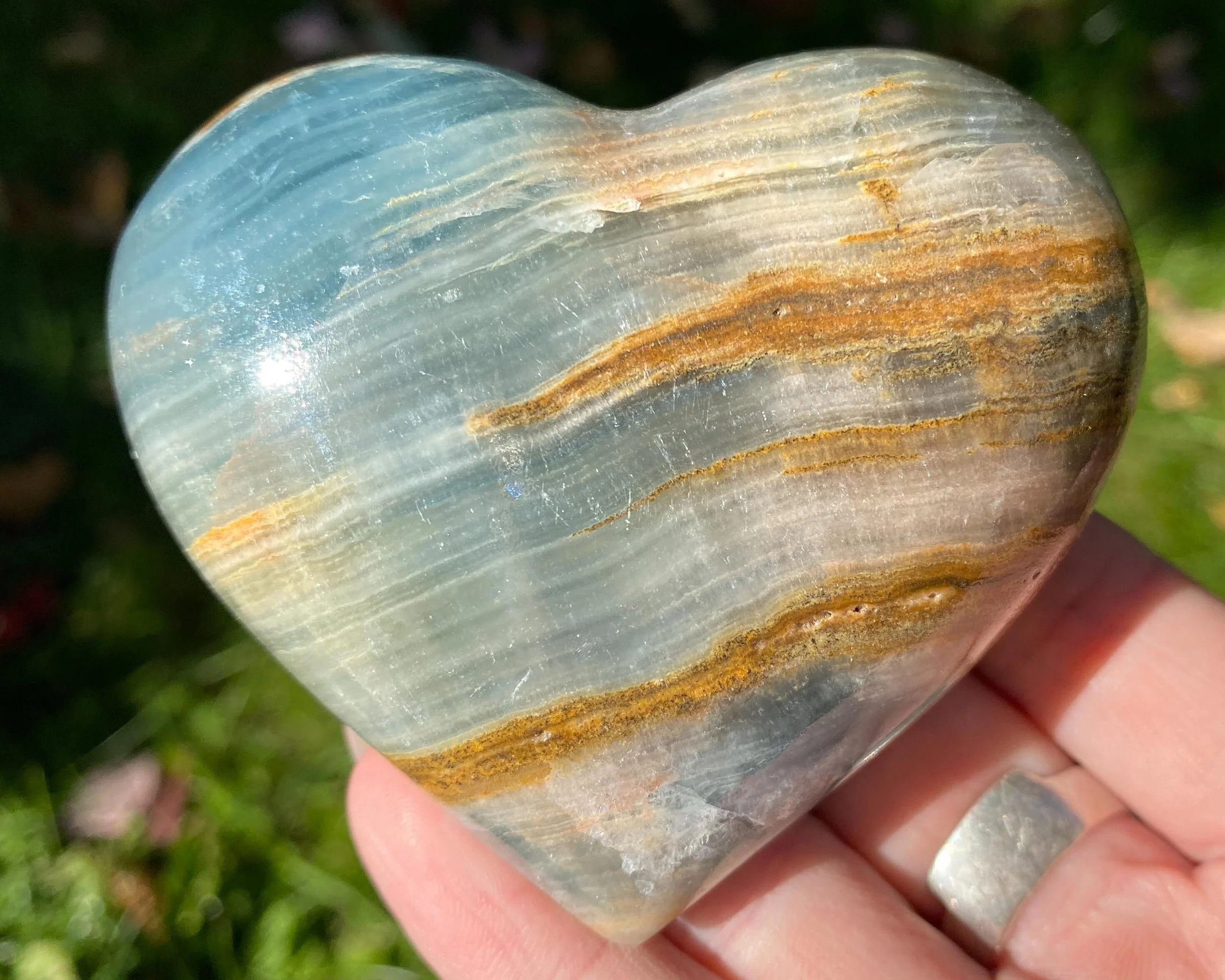 3.1" Lemurian Blue Calcite Heart, Aquatine Lemurian Calcite, Blue Onyx from Argentina, Large Blue Crystal Heart, Gemstone Heart #5
