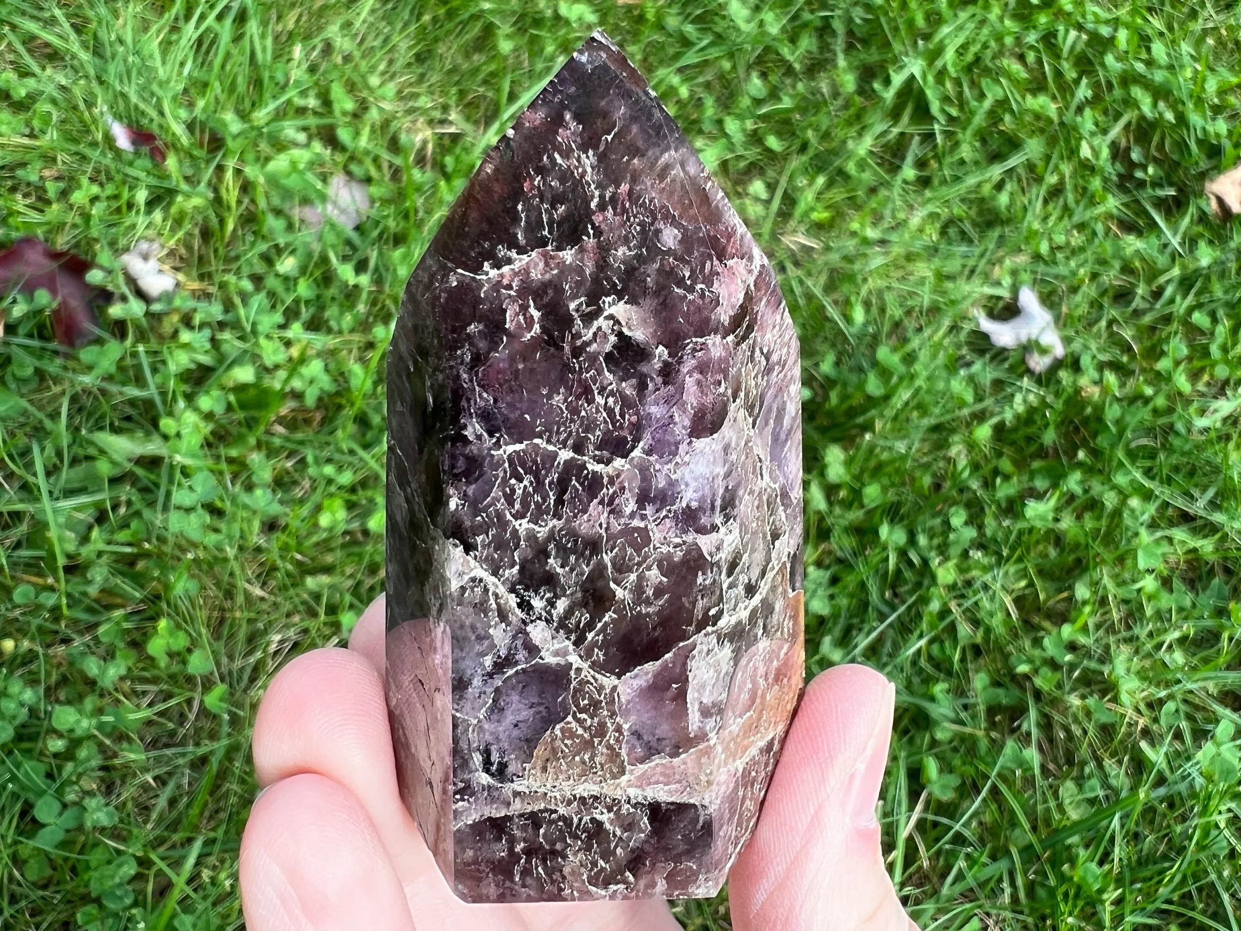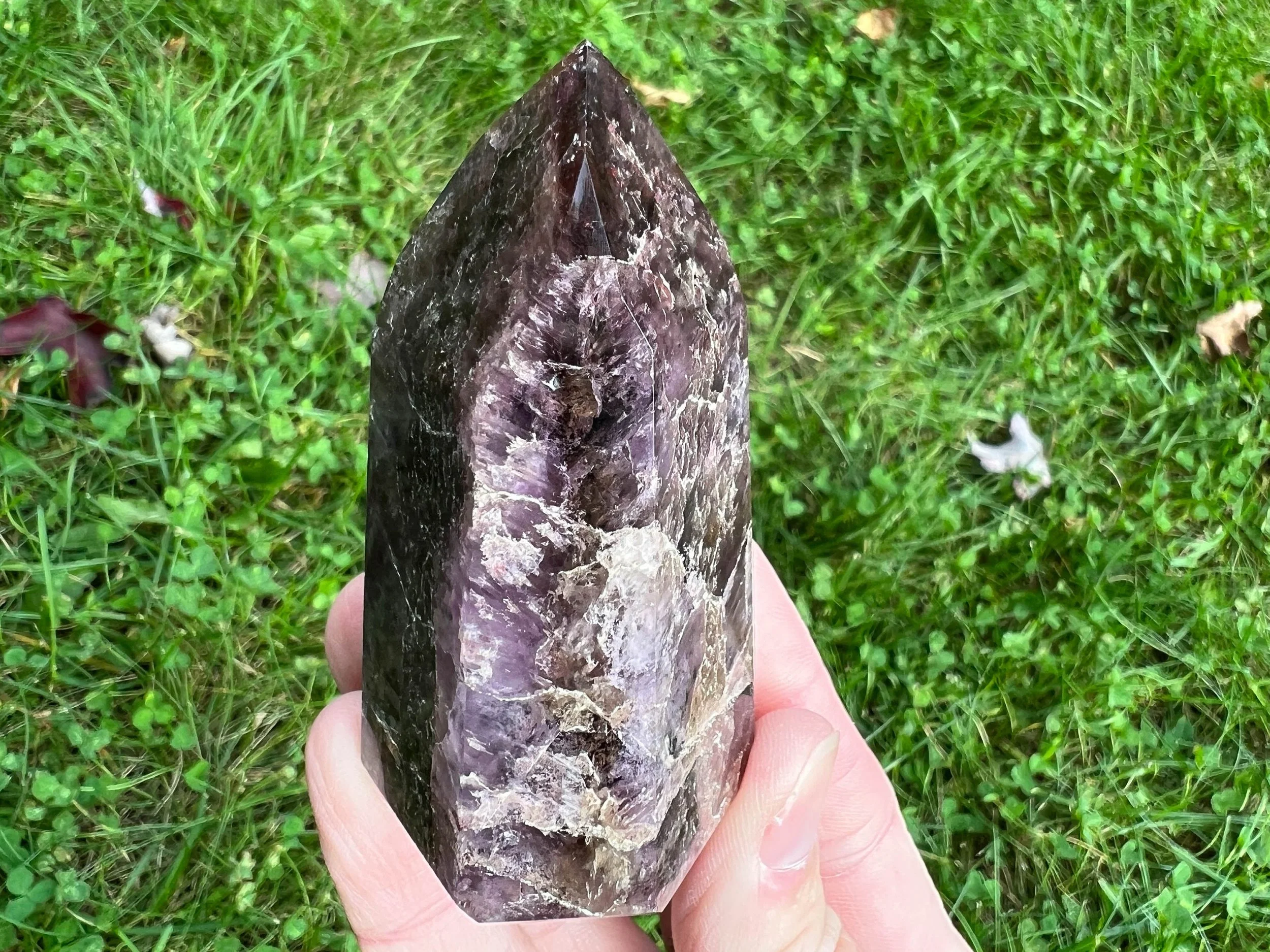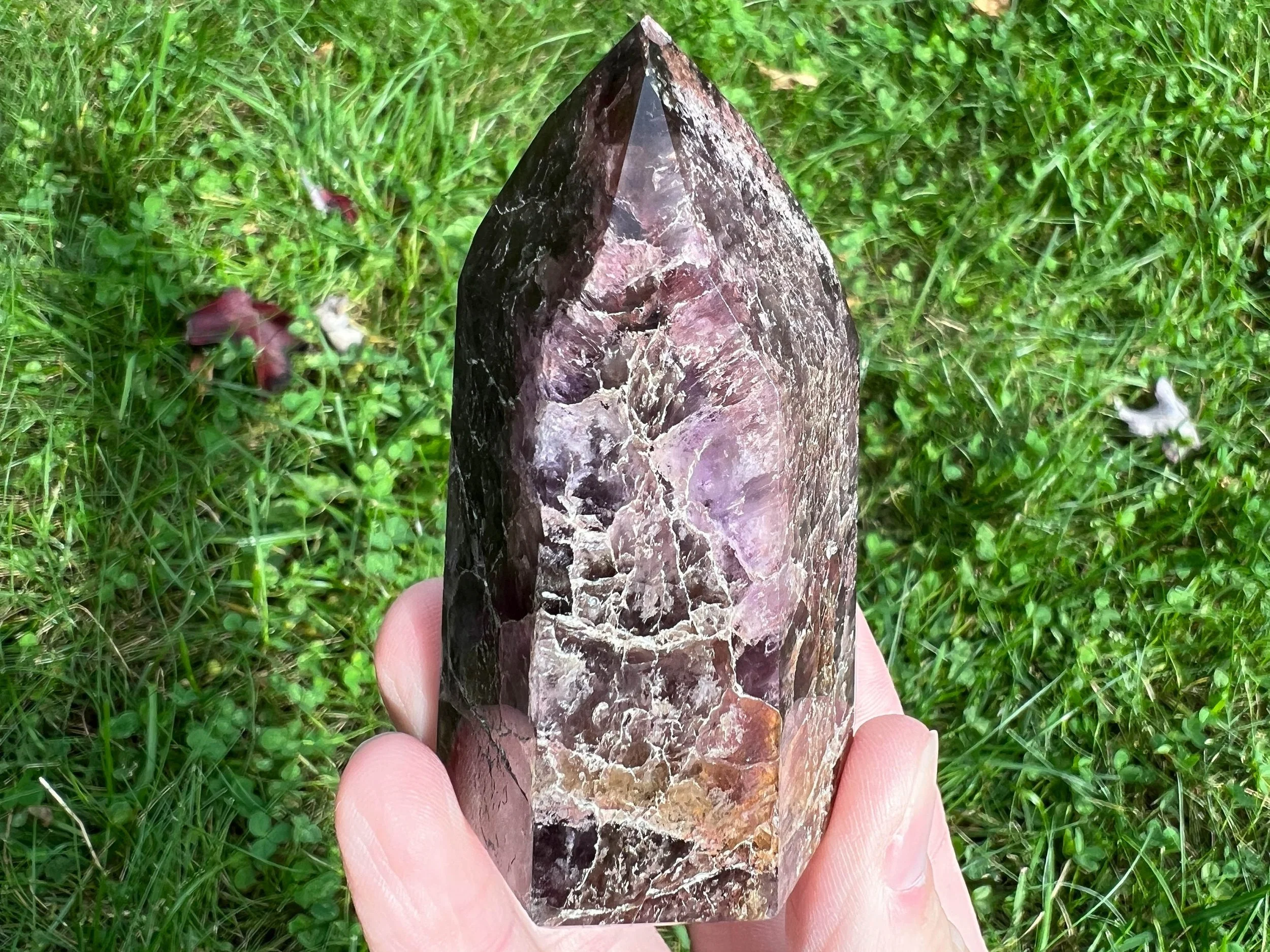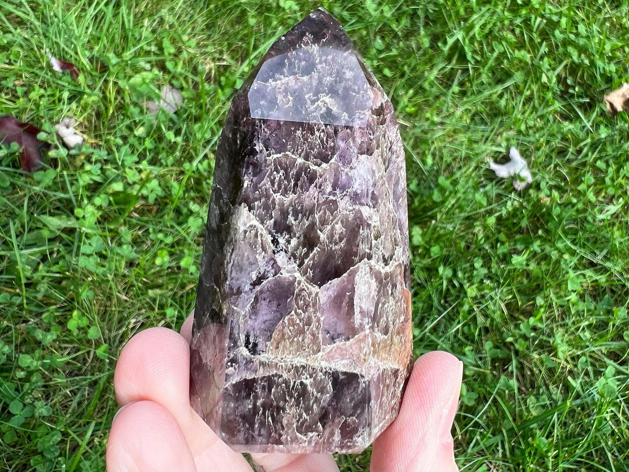 3.1" Super 7 Amethyst Tower #6 Polished Point, Auralite, Super Seven Smoky Amethyst Crystal Brazil, Home Decor, February Birthstone Gift