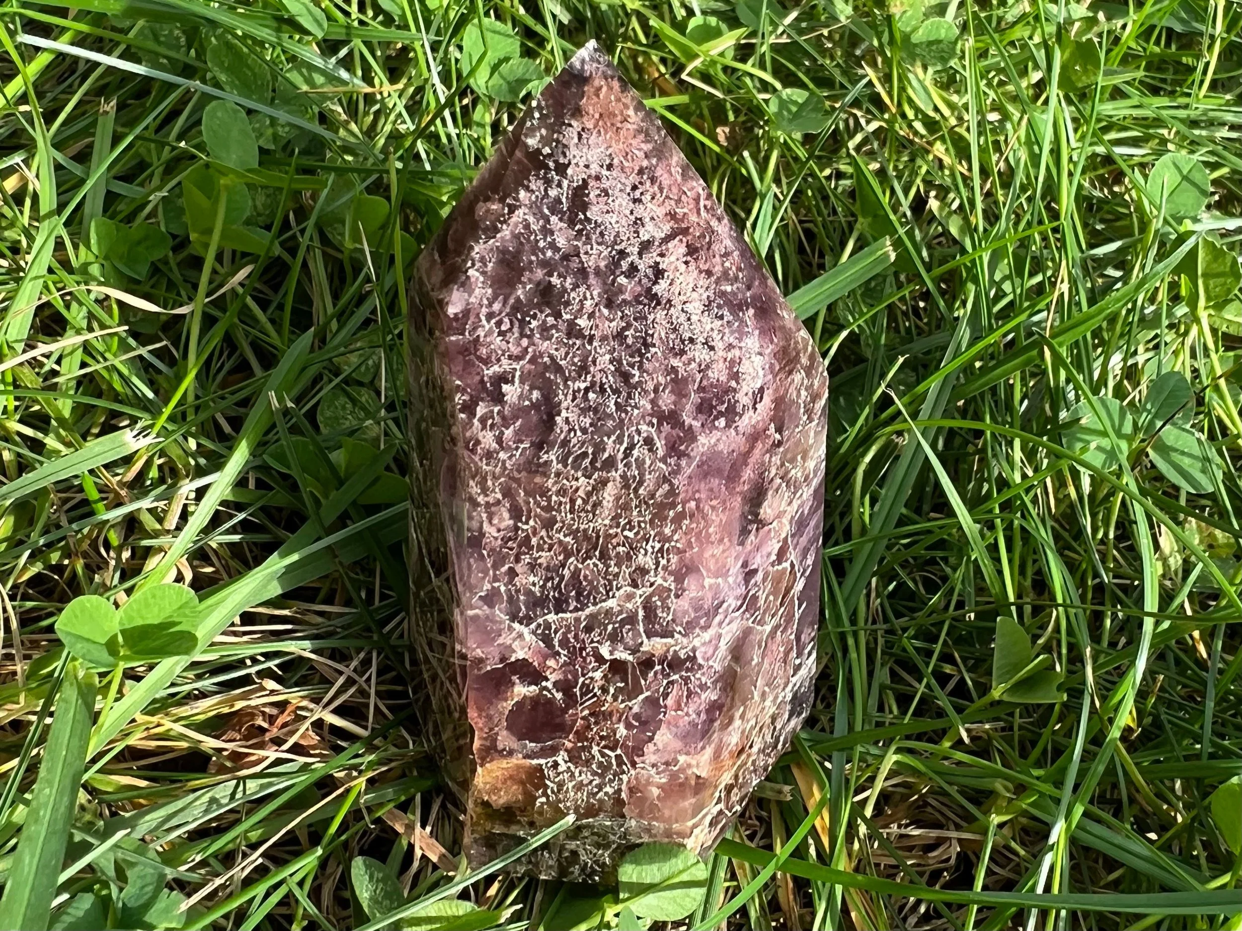 This is a beautiful inclusion Amethyst, with both Smoky and bright Purple Amethyst with other inclusions like Hematite and Rutile, cut and polished into a self standing crystal tower. Some call it Super Seven, though it has been disproven to have Lepidocrocite and a couple others. Very beautiful. From Minas Gerais, Brazil.