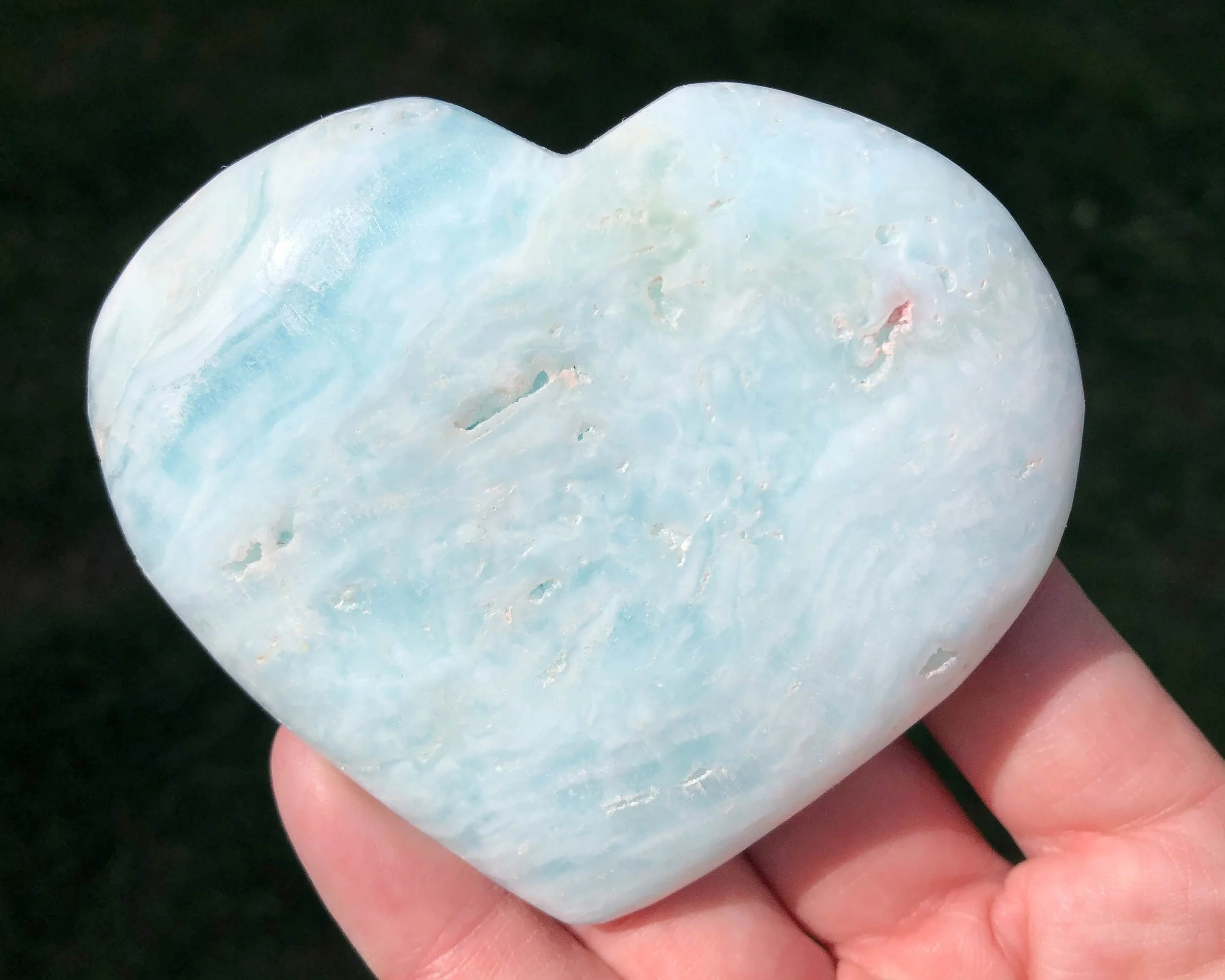 3.2" Blue Aragonite Heart #1 Large Caribbean Calcite Crystal Heart Aqua Blue Gemstone Heart, Gift for Ocean Lover, Beach House Decor Gift