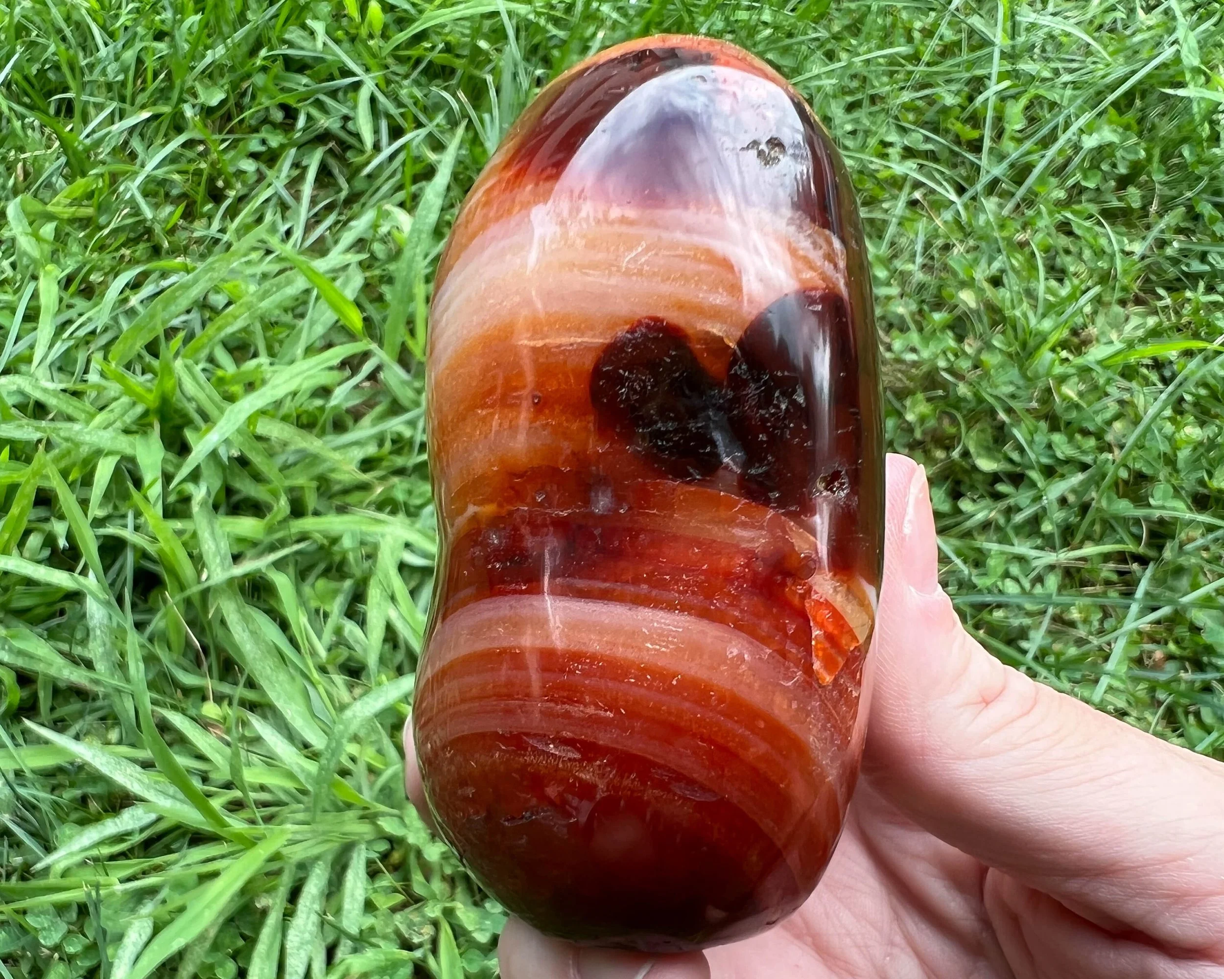 Carnelian Agate has been used throughout ancient history. For the Romans it was a stone of courage and strength. For the Egyptians, they were used to help the dead reach the afterlife. It was one of the stones in the breastplate of Aaron, brother of Moses. It was also considered a birthstone in ancient times. Today it is called the artist’s stone, believed to give self confidence, bolster creativity and passion in any endeavors, artistic and otherwise. It is used to invoke bold decision making and creative energy. Carnelian is associated with the lower chakras, especially the Sacral Chakra. It is the birthstone for the zodiac sign Virgo and is associated with Leo and Aries as well.