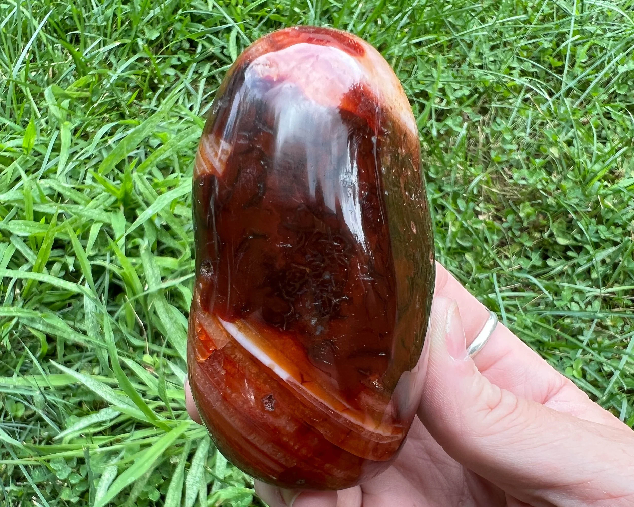 Carnelian Agate has been used throughout ancient history. For the Romans it was a stone of courage and strength. For the Egyptians, they were used to help the dead reach the afterlife. It was one of the stones in the breastplate of Aaron, brother of Moses. It was also considered a birthstone in ancient times.