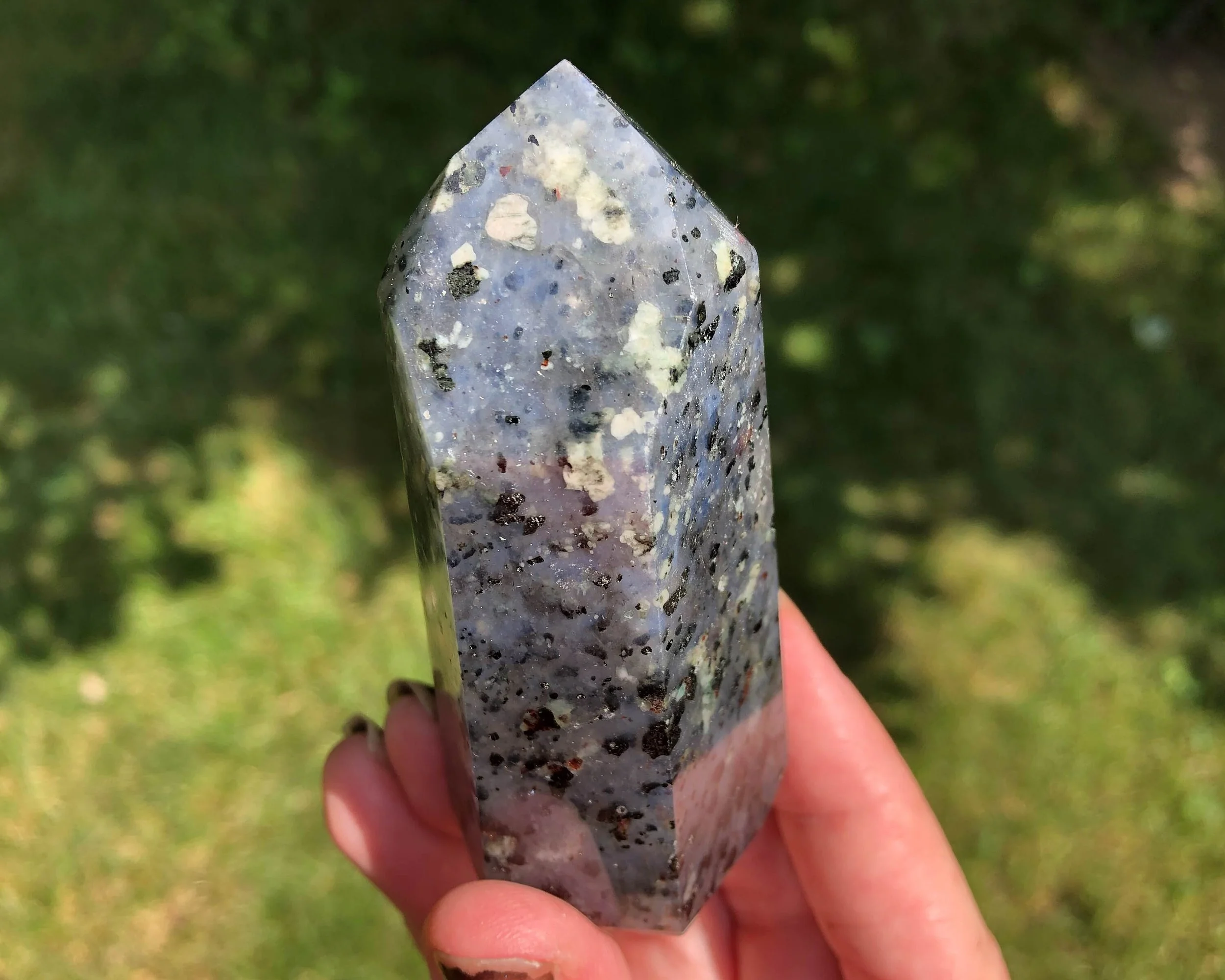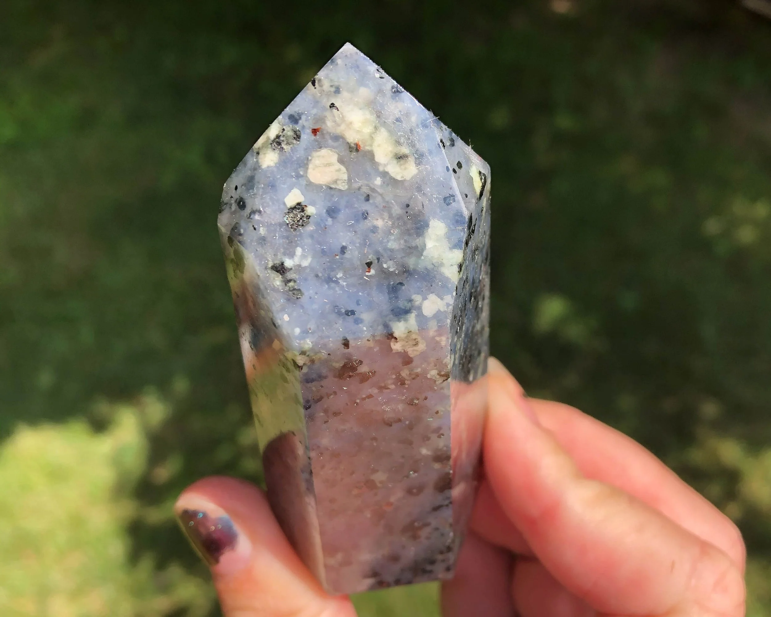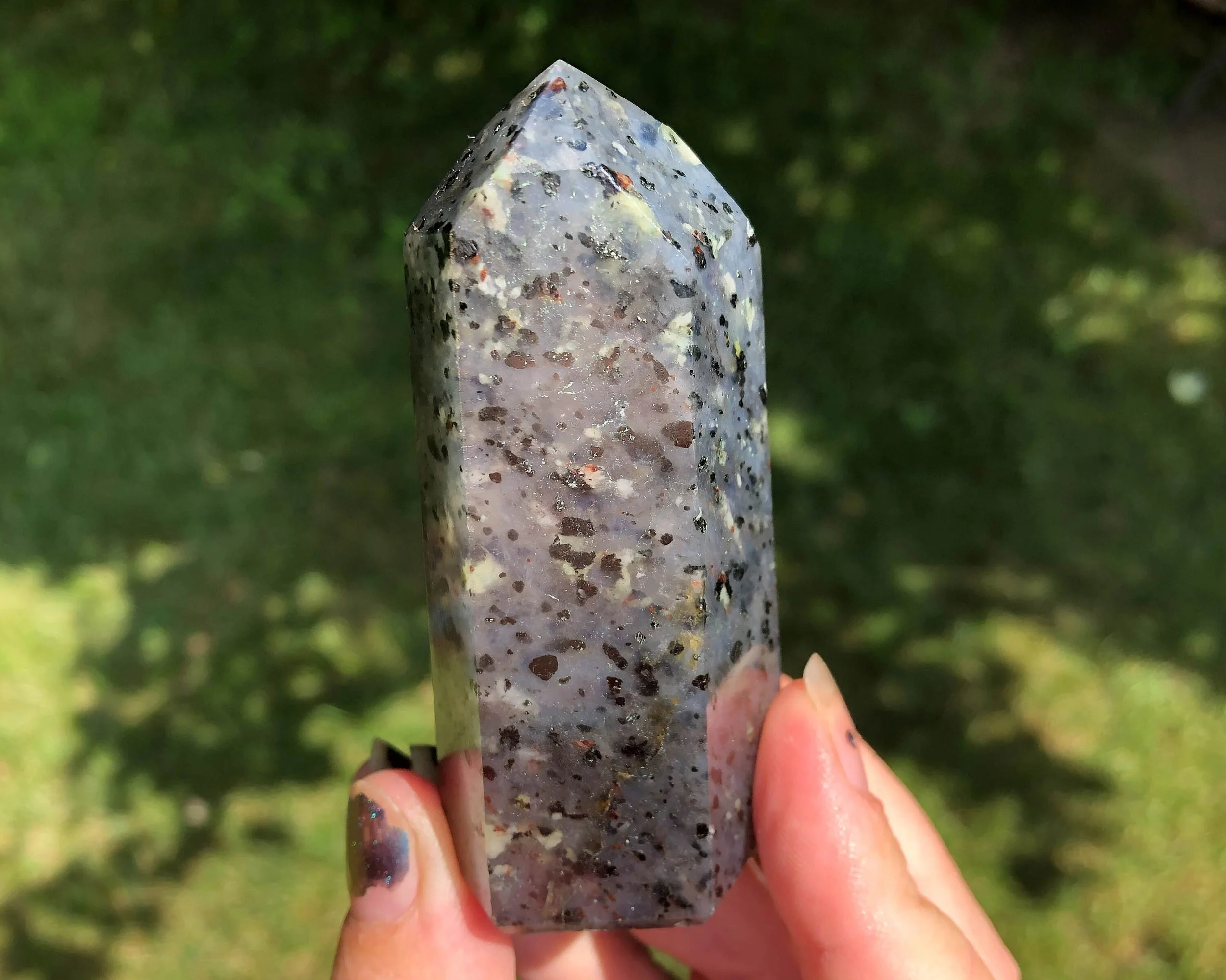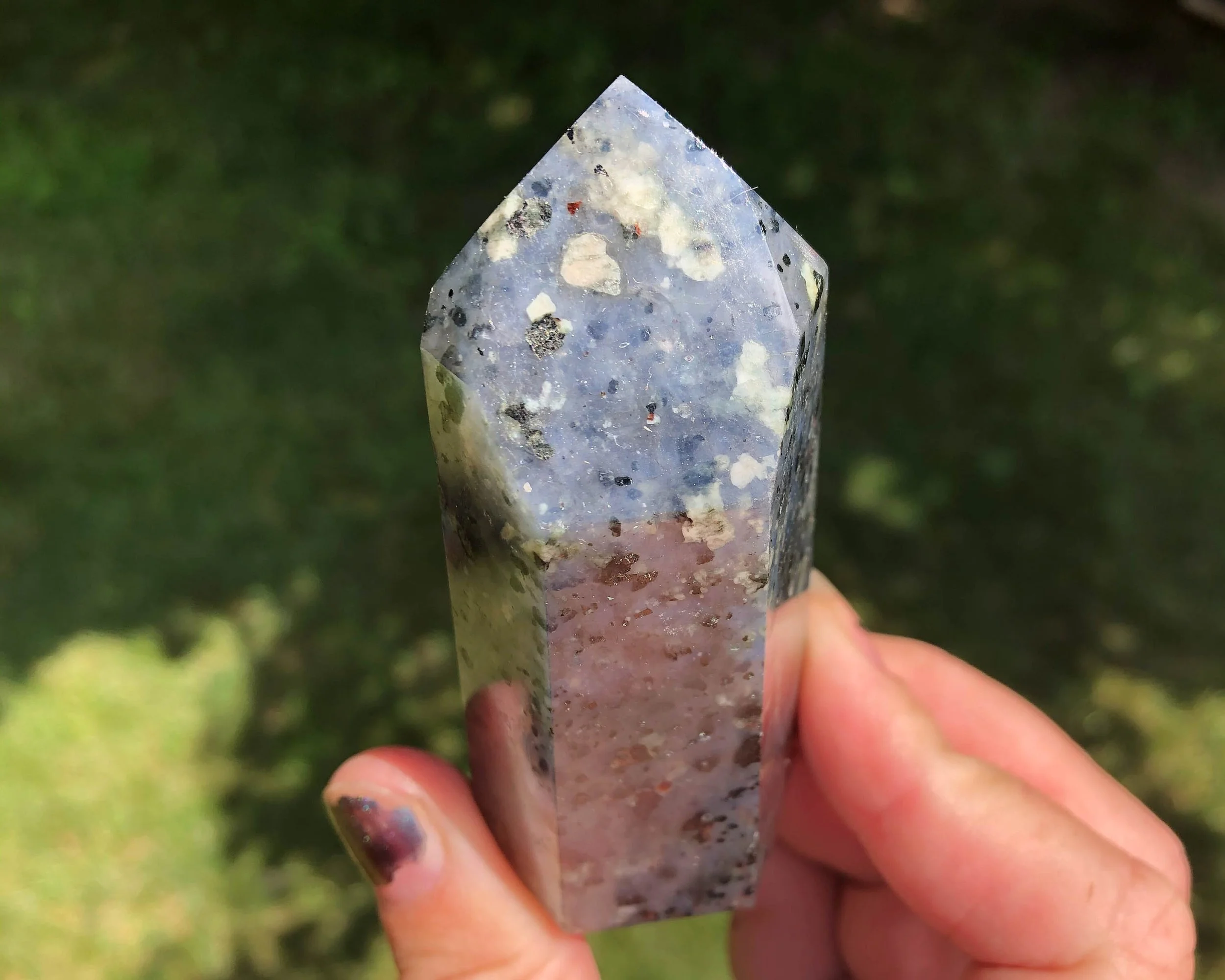3.2" Larvikite Point Glowing Blue Feldspar Crystal Gemstone Tower #5