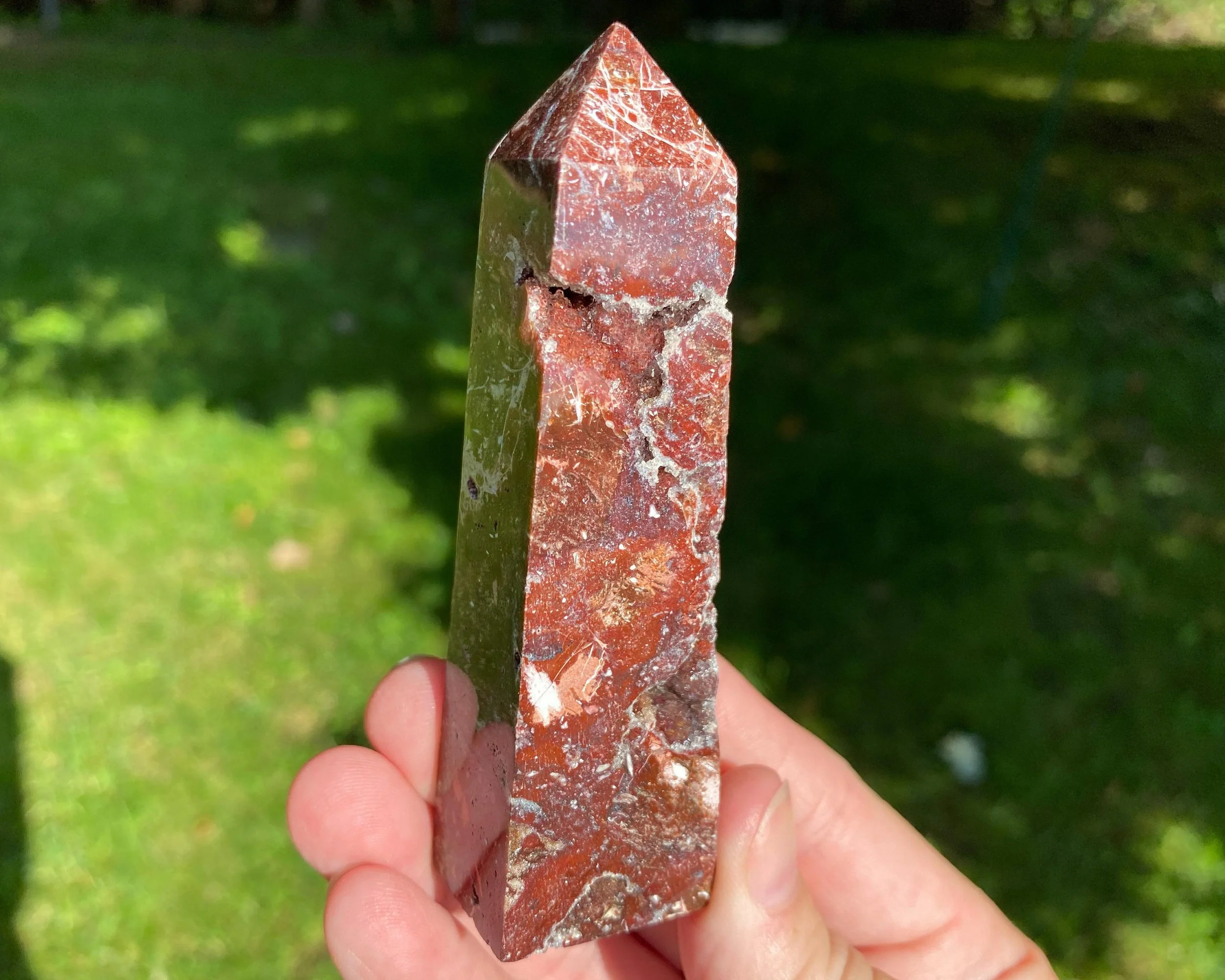 3.7" Red Jasper Tower with Druzy Quartz Pockets, Polished Point, Self Standing Polished, Gift for Her, Gift for Friend #5