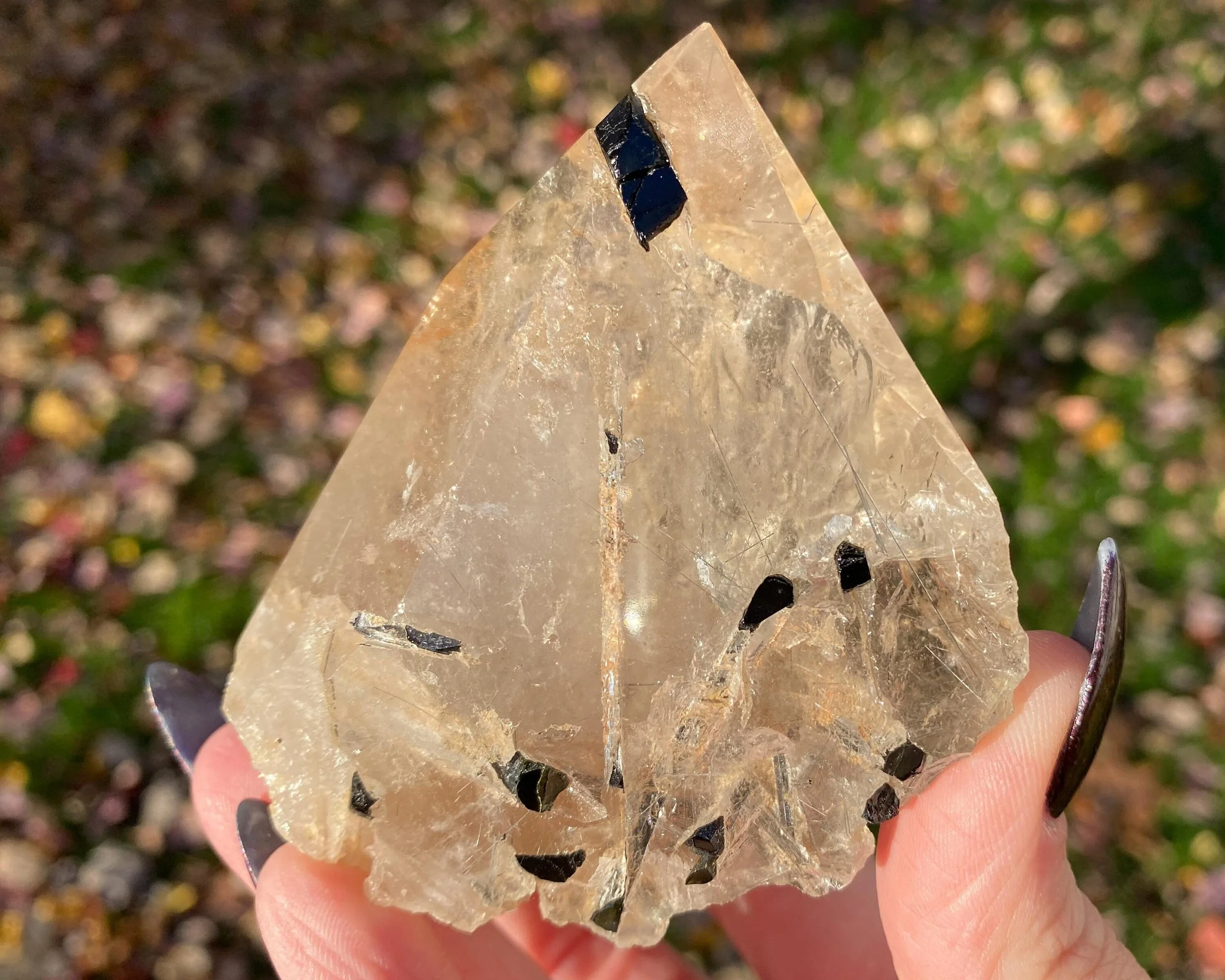 3.7" Rutilated Quartz with Green Tourmaline, Light Smoky Quartz, Polished Crystal Point, From Brazil, SIlver Rutile, Collectors Piece, Gift