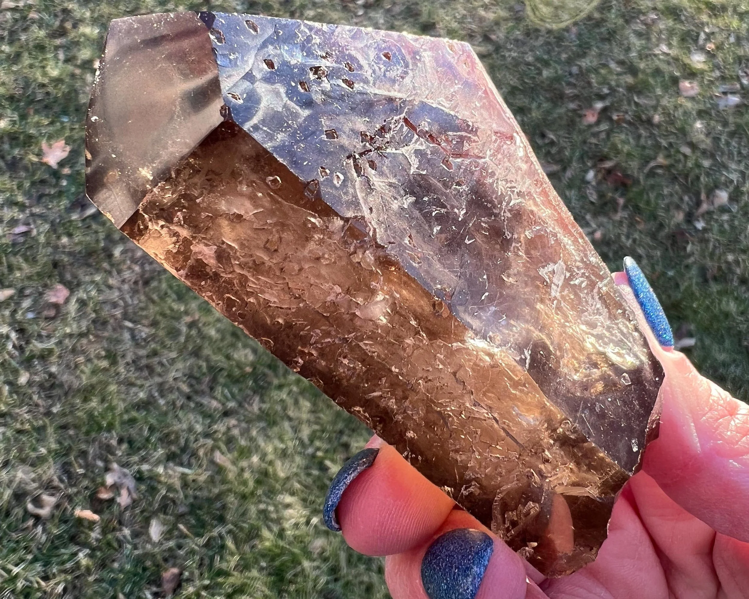 3.9" Smoky Quartz Crystal with Etching, Rainbow and Red Hematite, Natural Point, Gift for Him, Witchy Gift for Her, for Mom #2