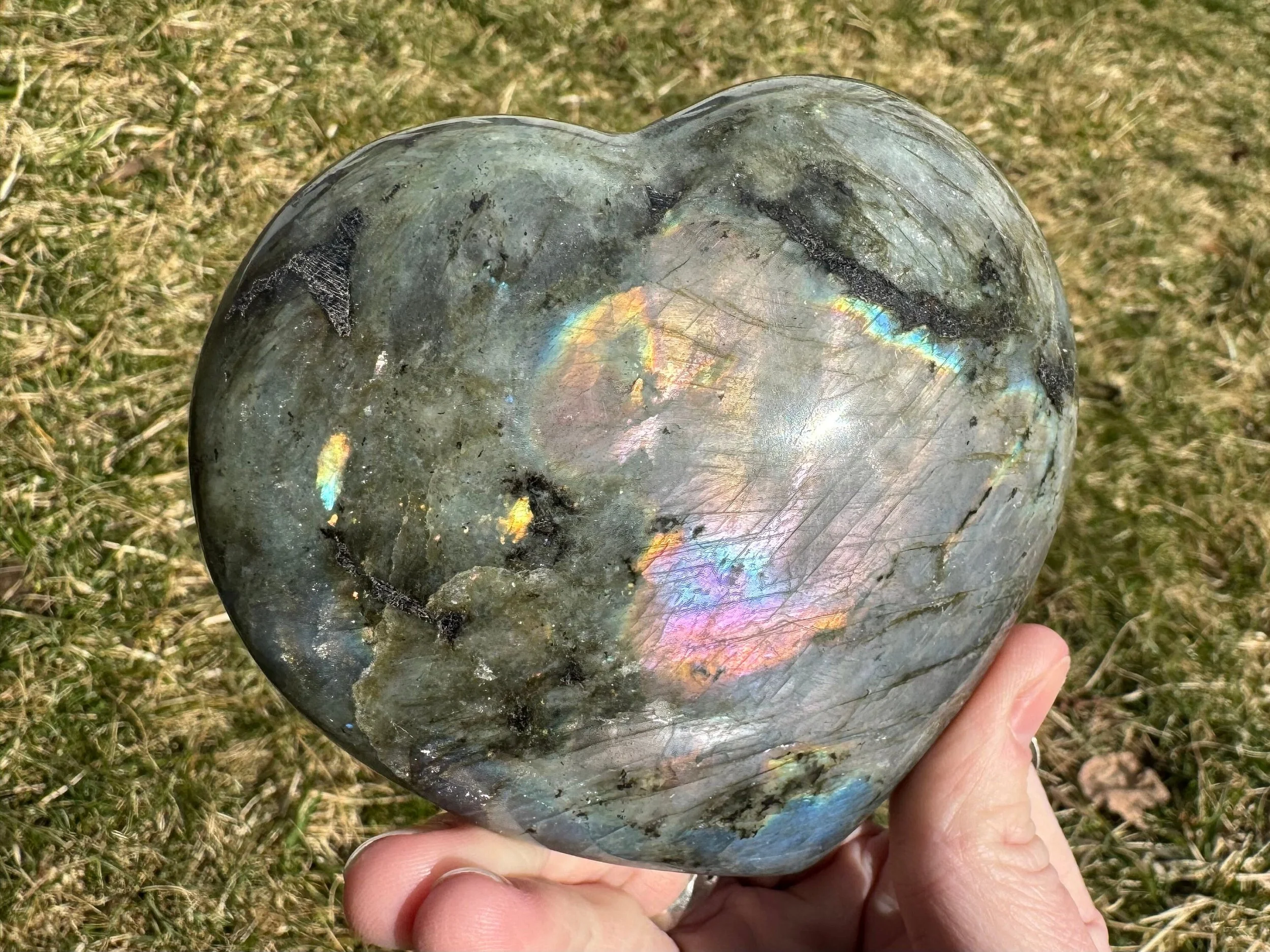 4" Large Labradorite Heart, Flashy Rainbow Gemstone Heart, Purple Labradorite Crystal Heart, Gift for Her, Crystal for Leo, Sagittarius #4